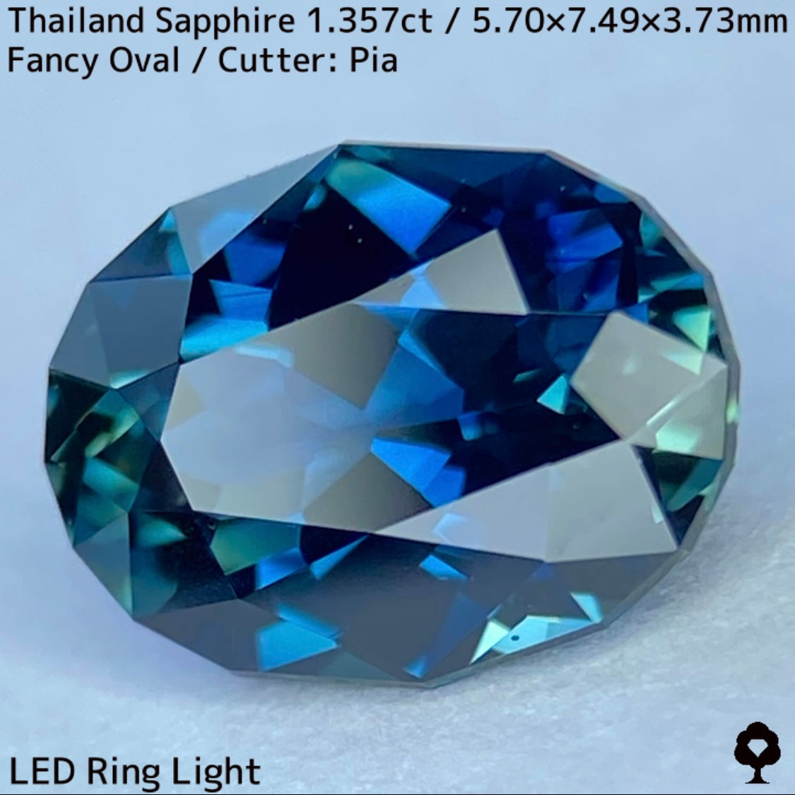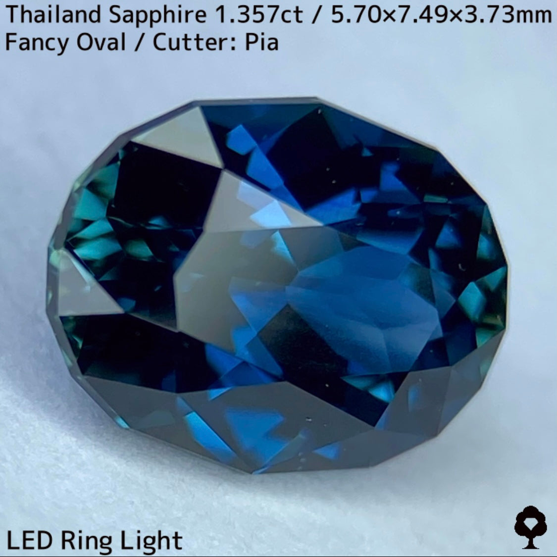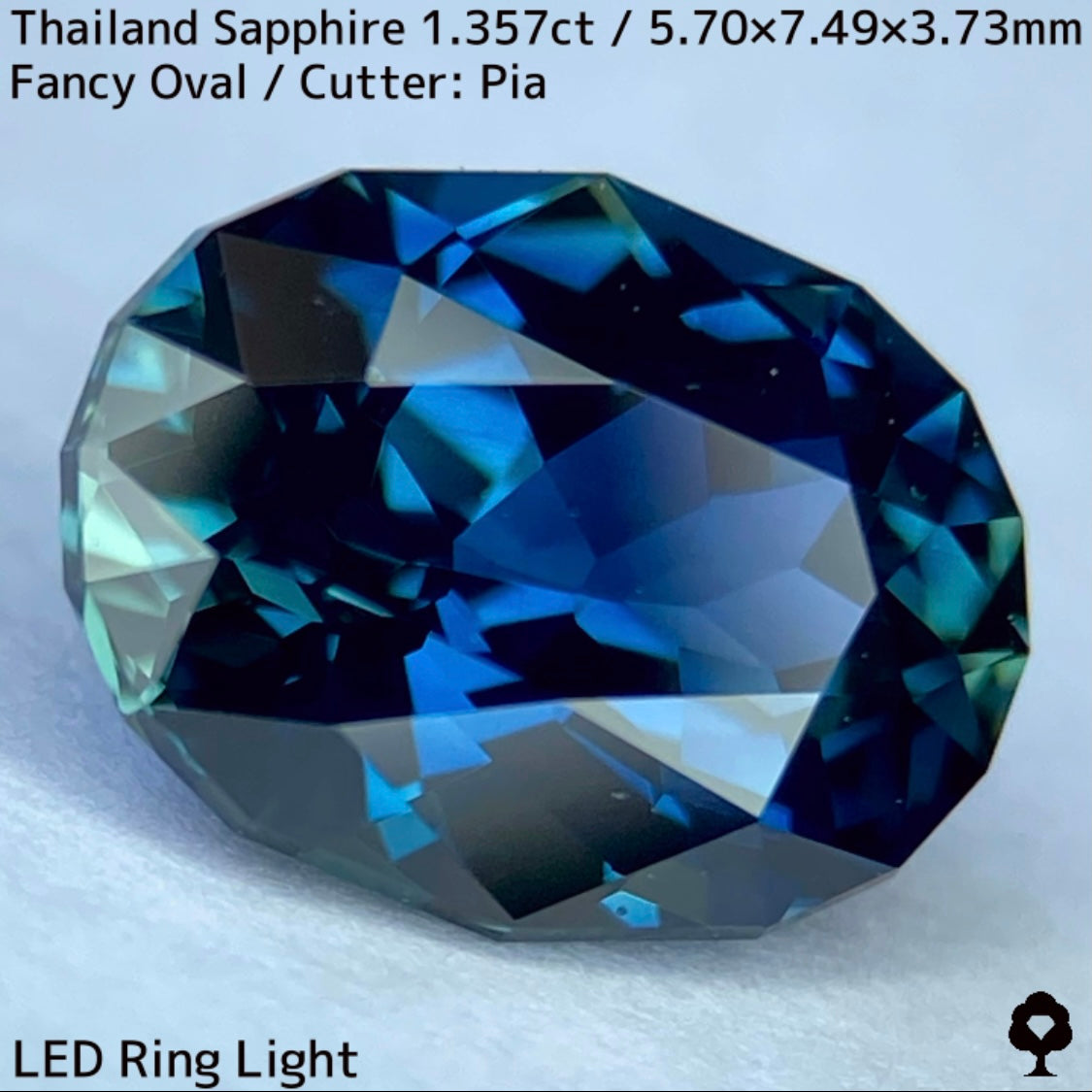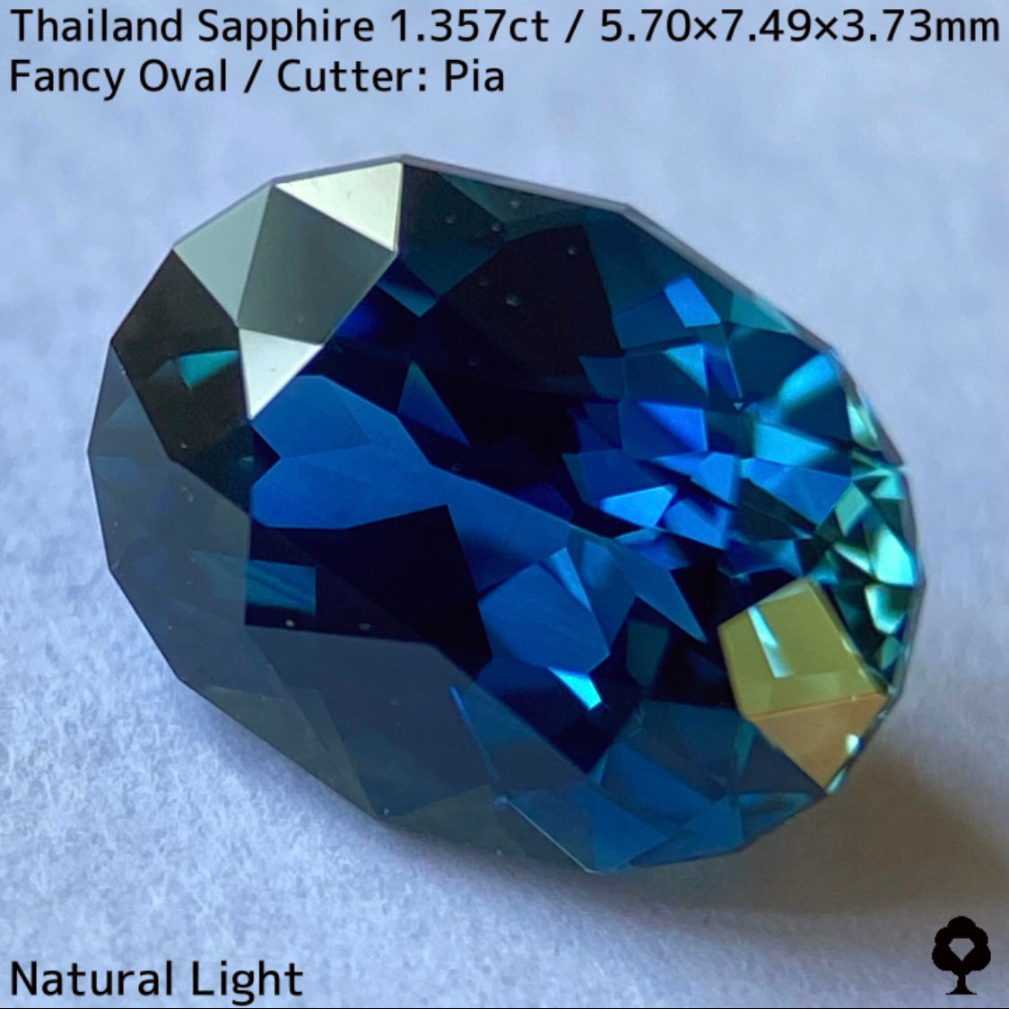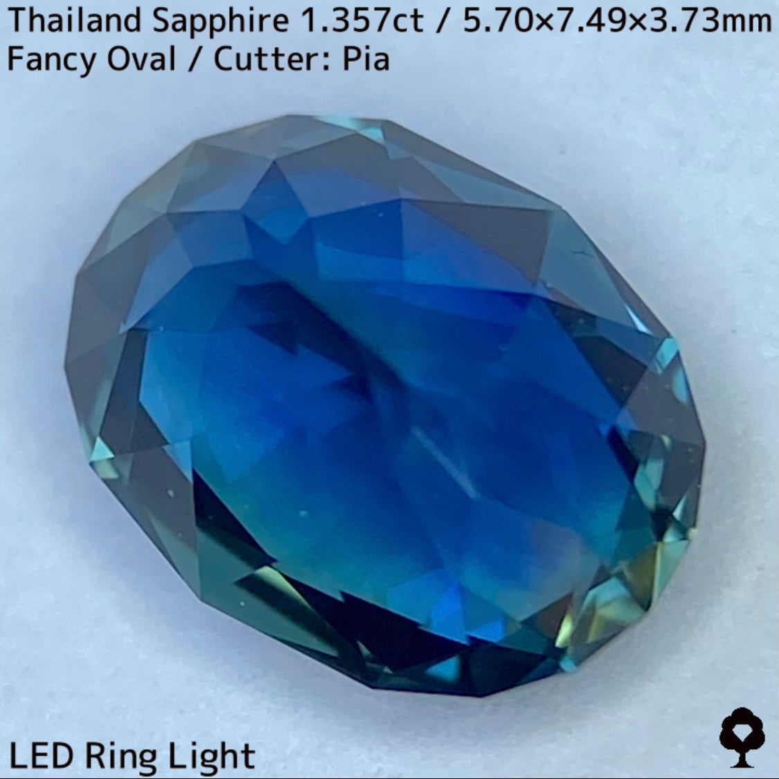 タイ産サファイア1.357ct★チャンタブリー仕入れのティールブルーとグリーンの混ざり合う美色結晶