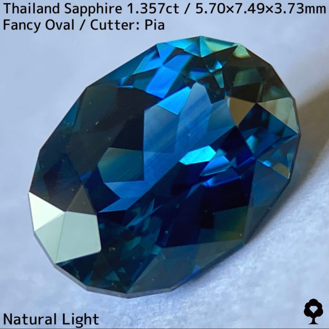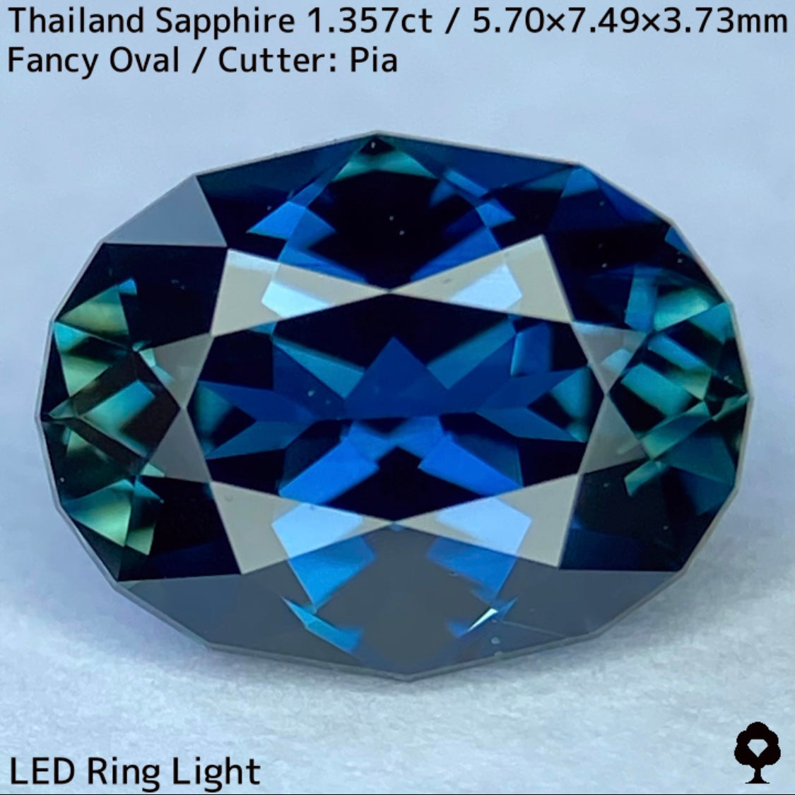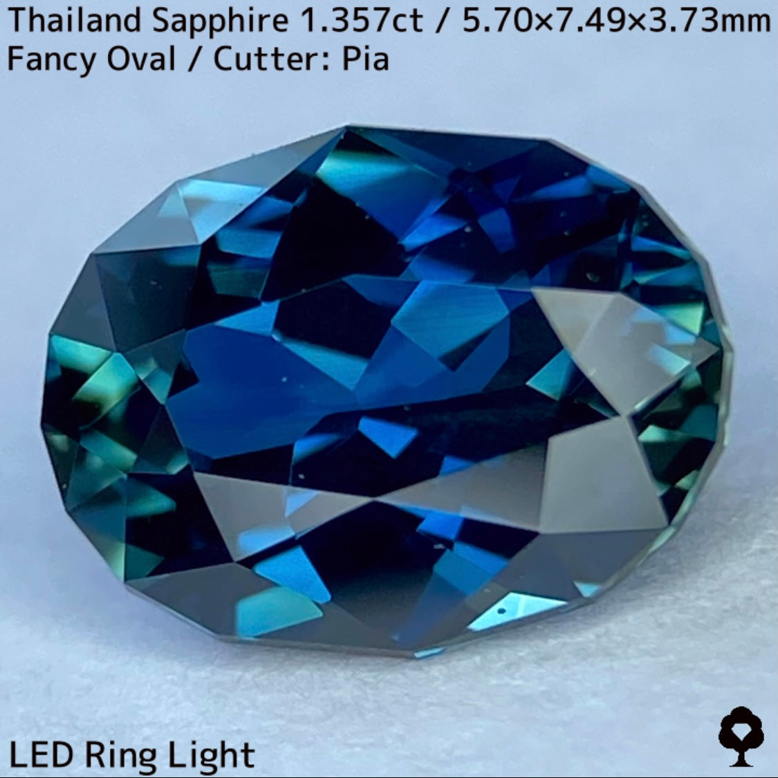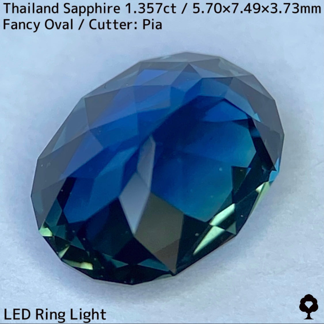 タイ産サファイア1.357ct★チャンタブリー仕入れのティールブルーとグリーンの混ざり合う美色結晶