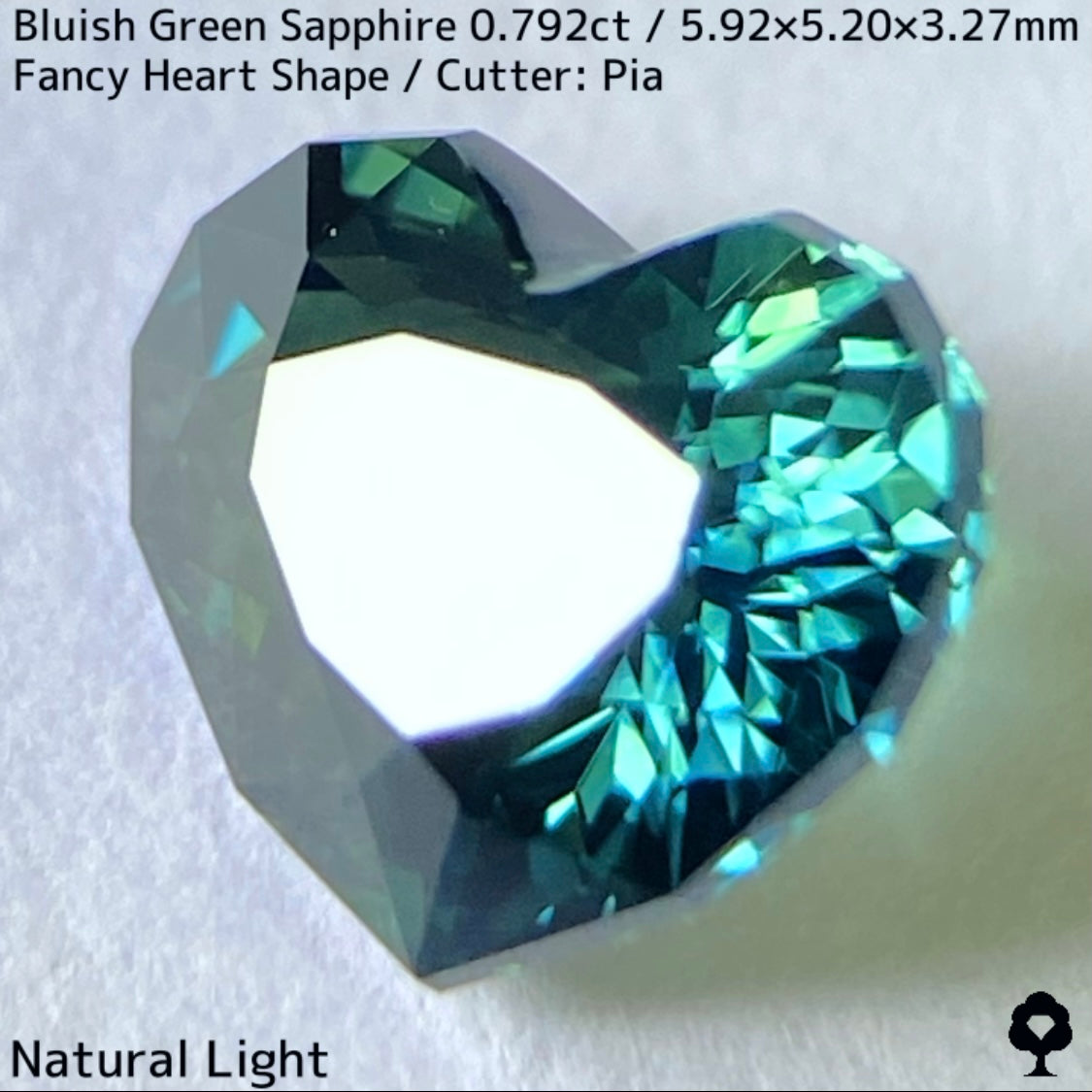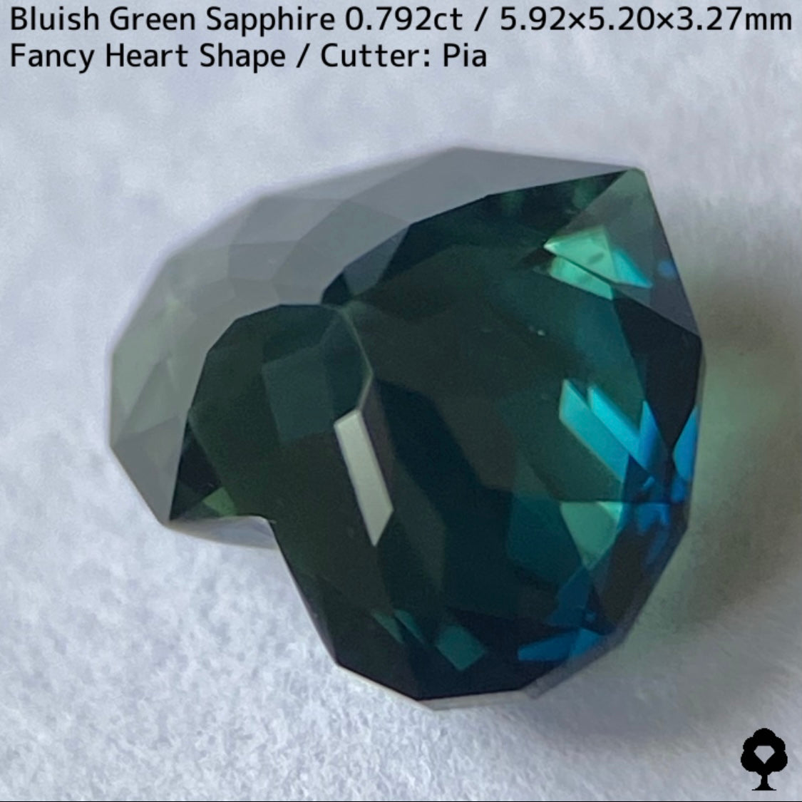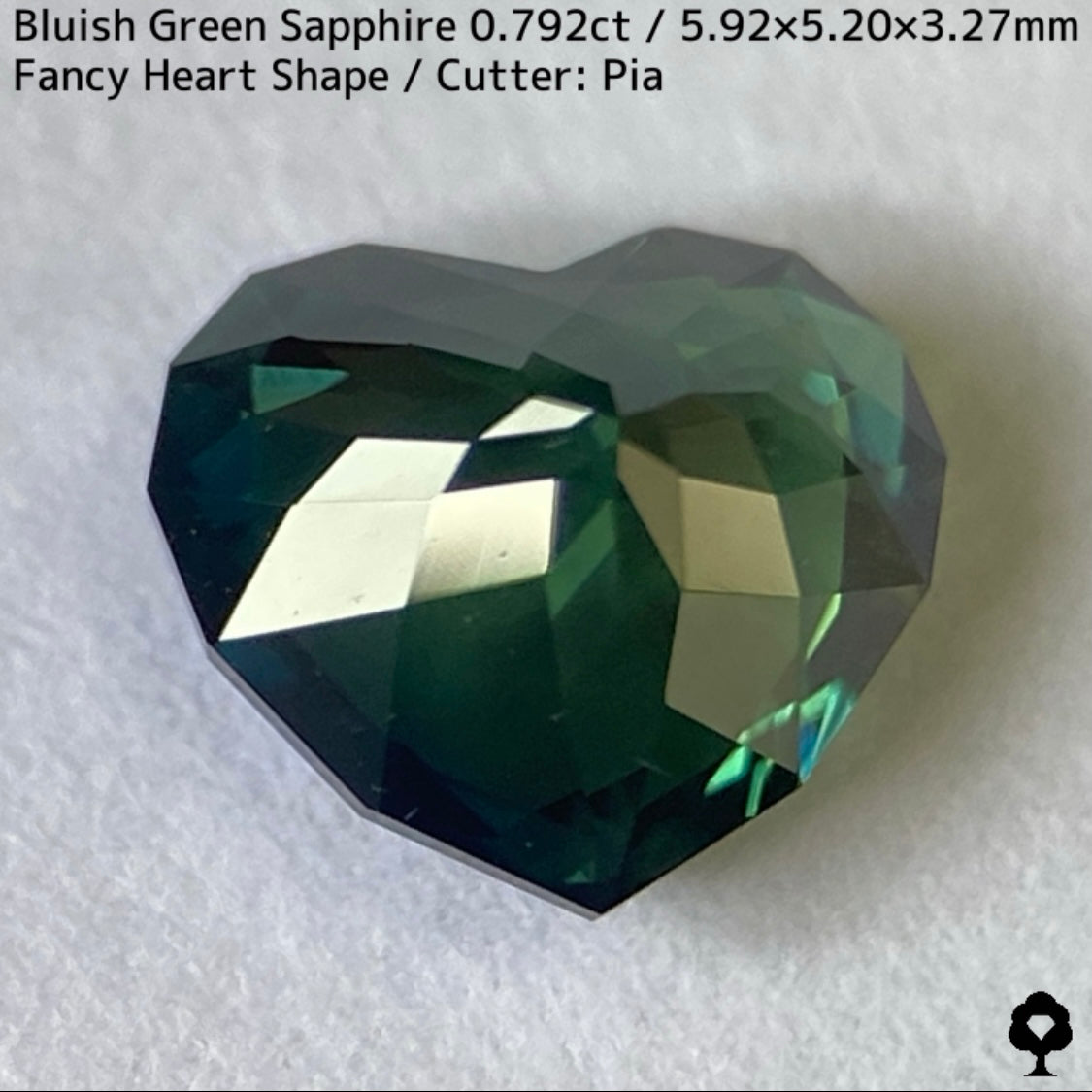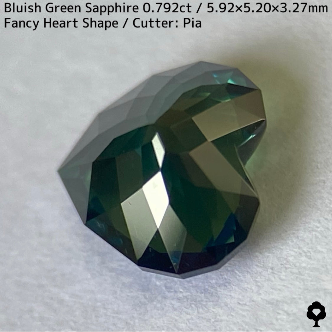 ブルーイッシュグリーンサファイア0.792ct★深いブルーみあるグリーンと可愛いファンシーハートシェイプが絶妙なバランス