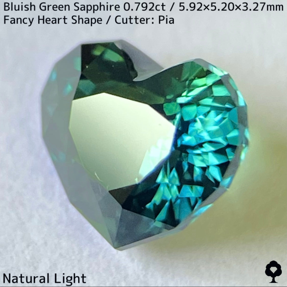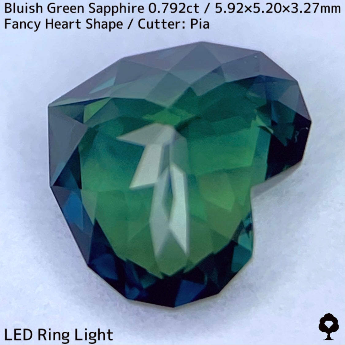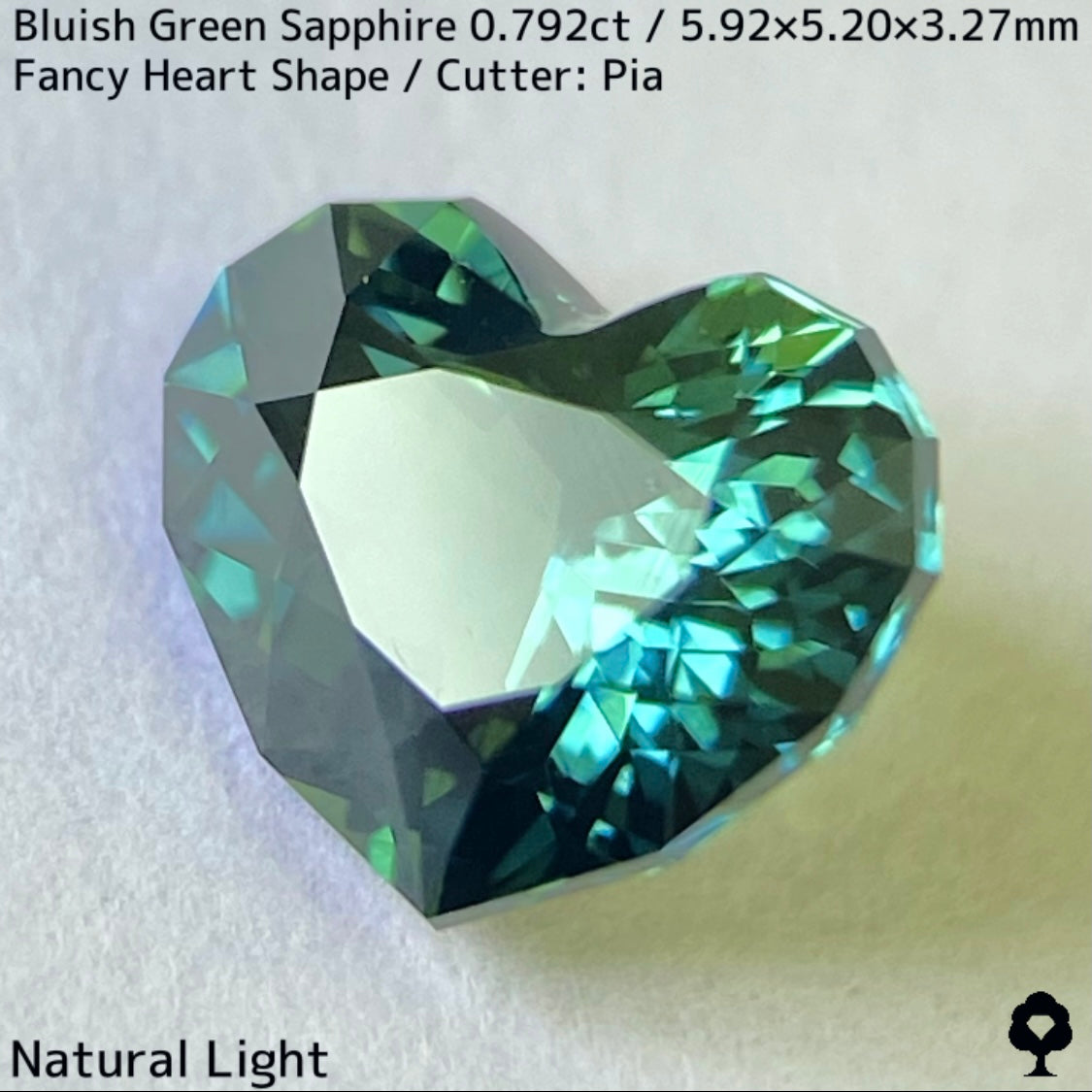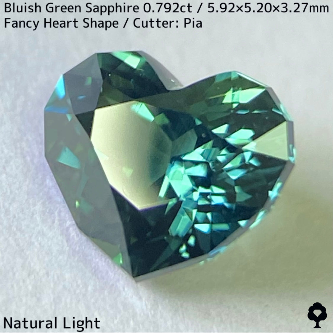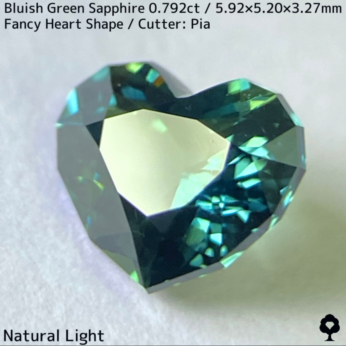 ブルーイッシュグリーンサファイア0.792ct★深いブルーみあるグリーンと可愛いファンシーハートシェイプが絶妙なバランス