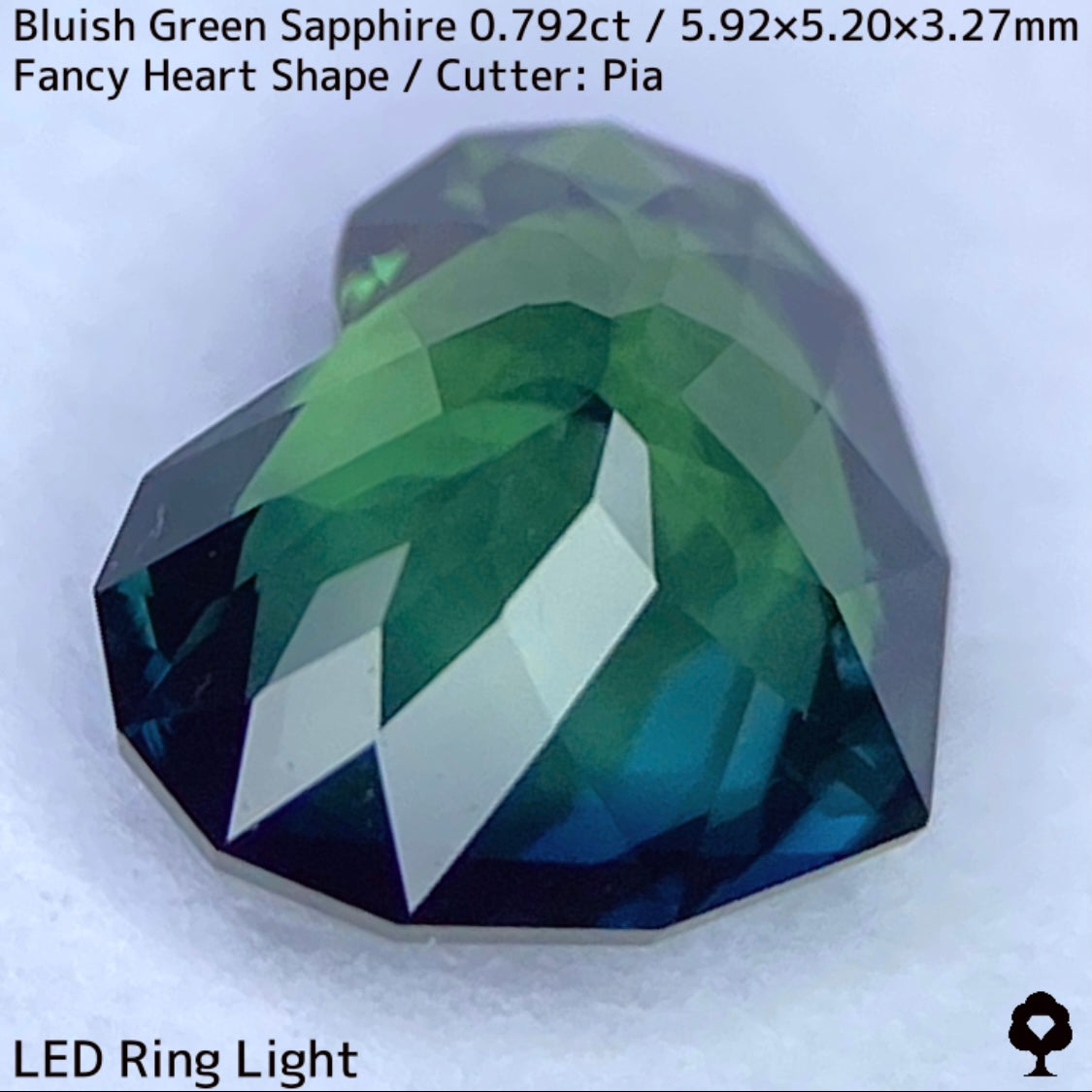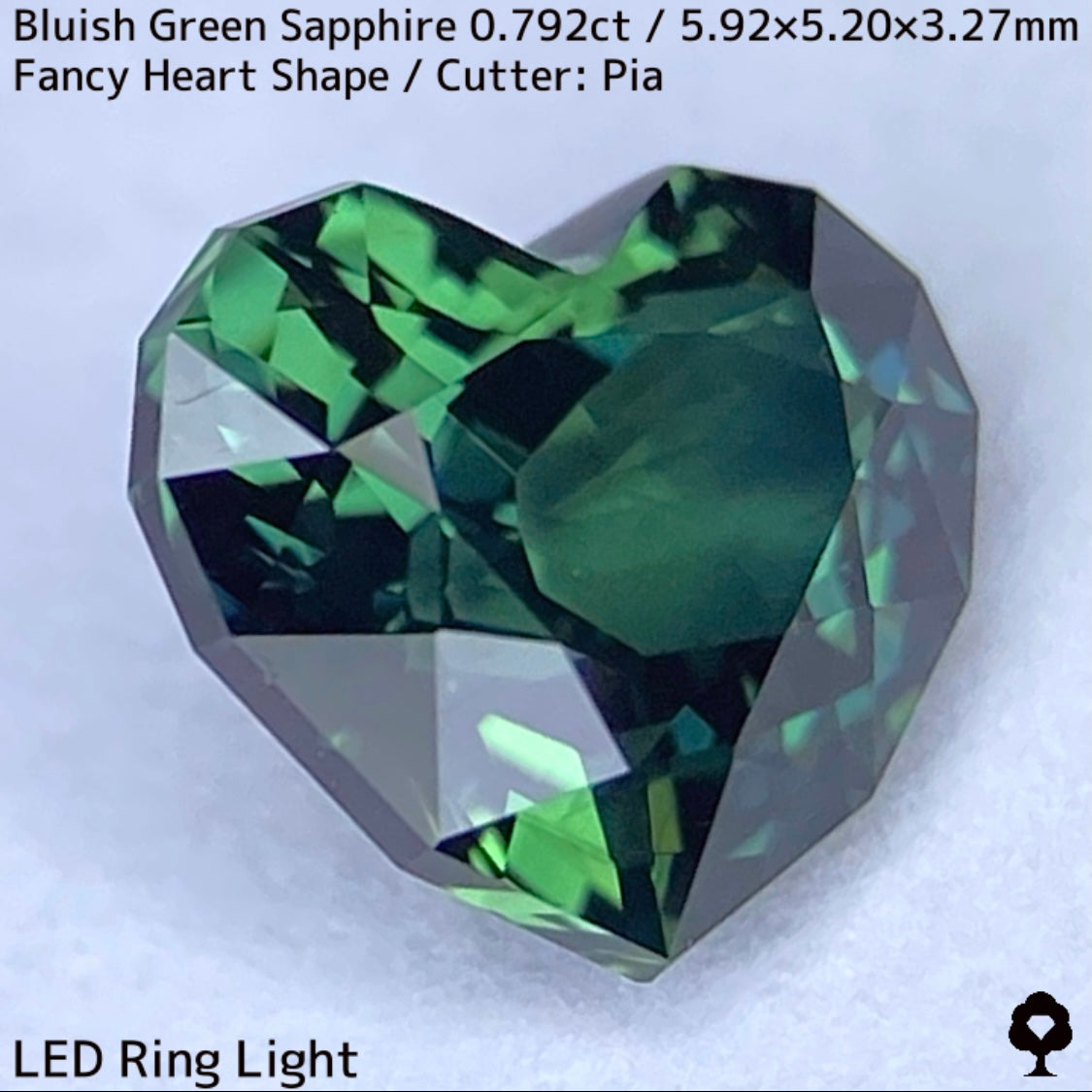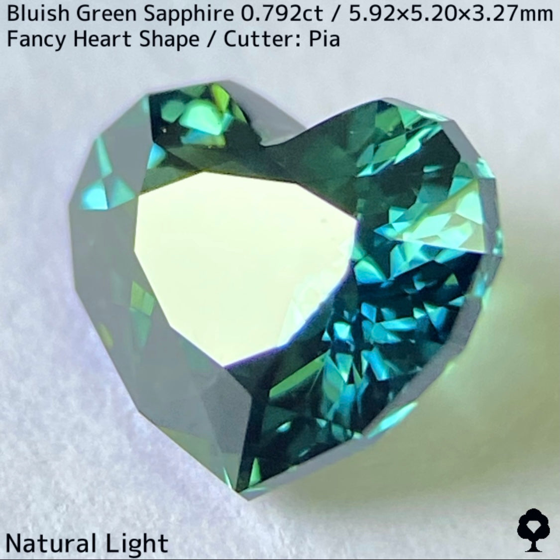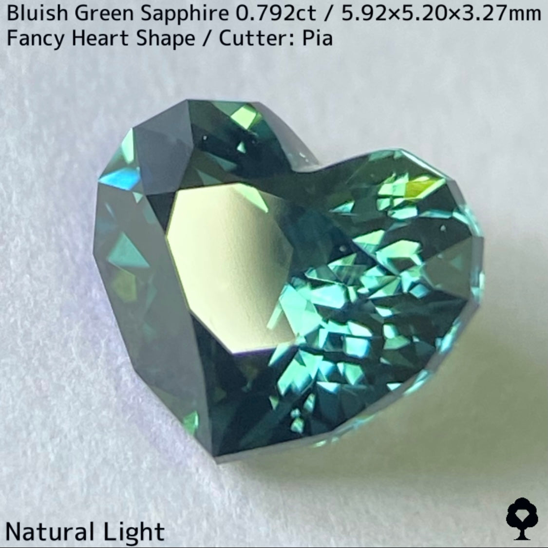 ブルーイッシュグリーンサファイア0.792ct★深いブルーみあるグリーンと可愛いファンシーハートシェイプが絶妙なバランス