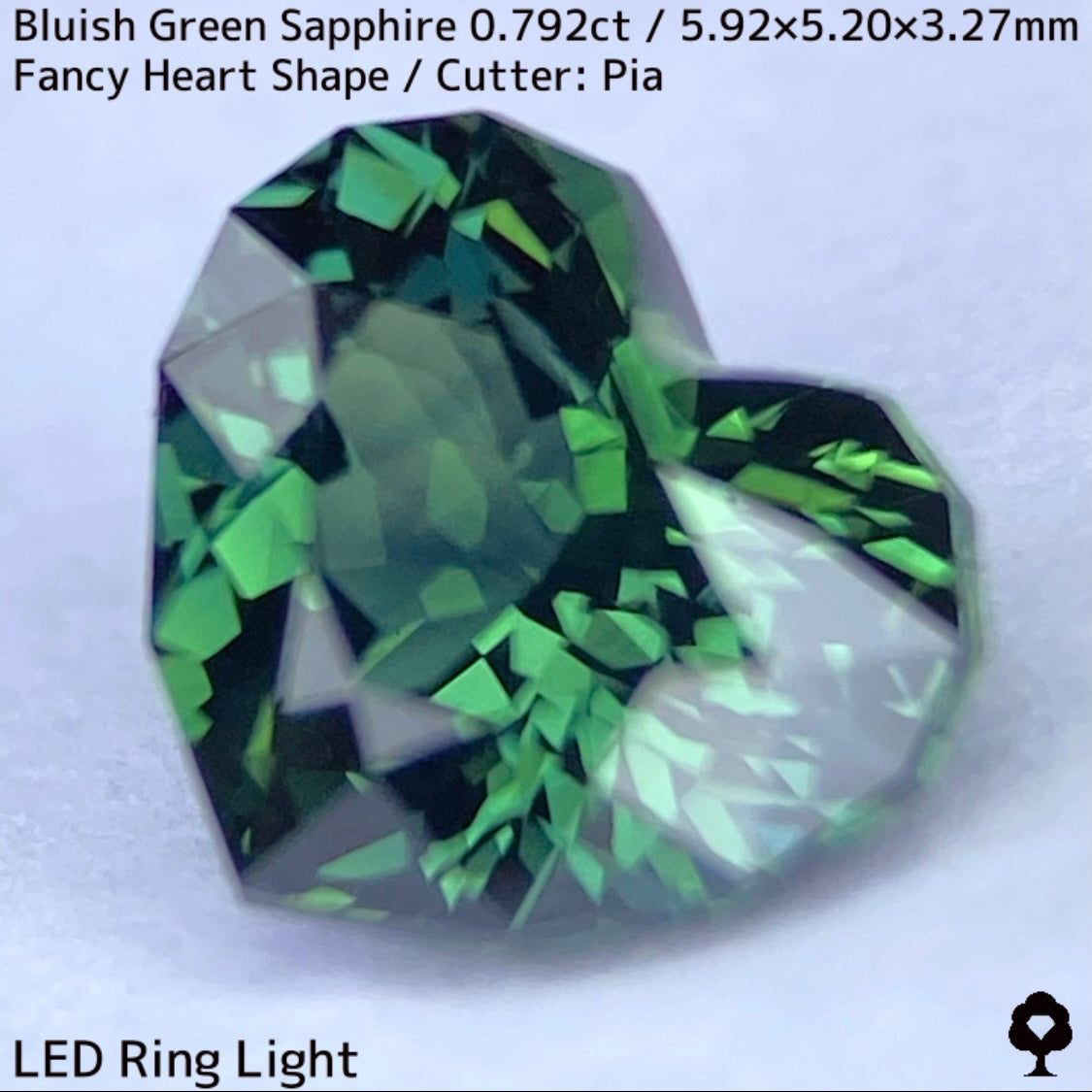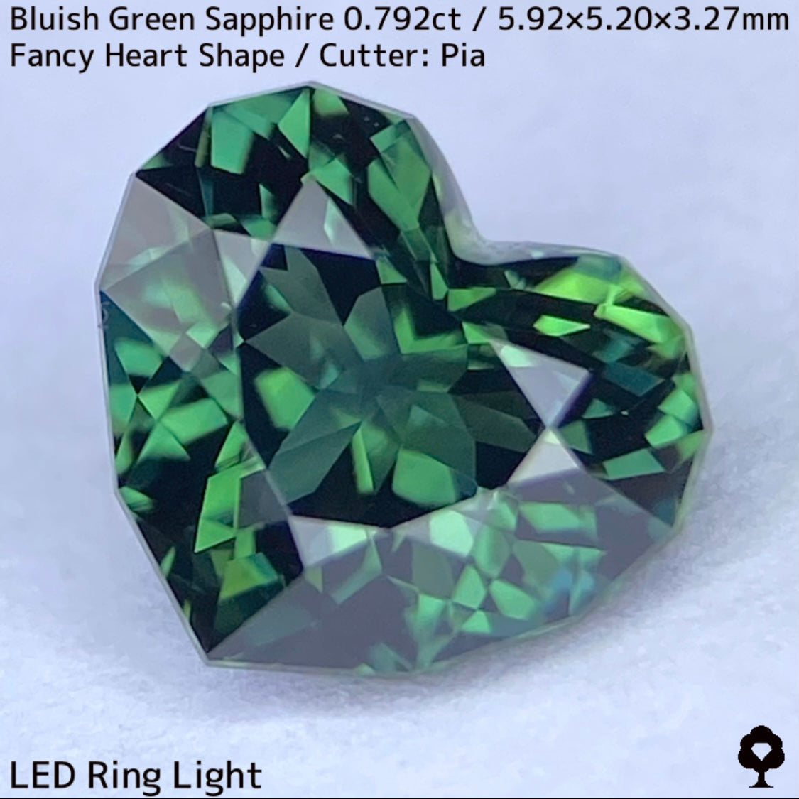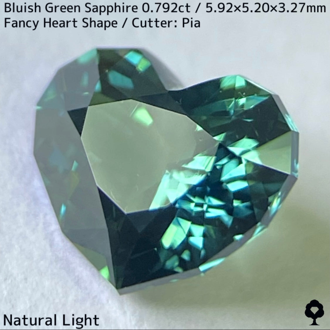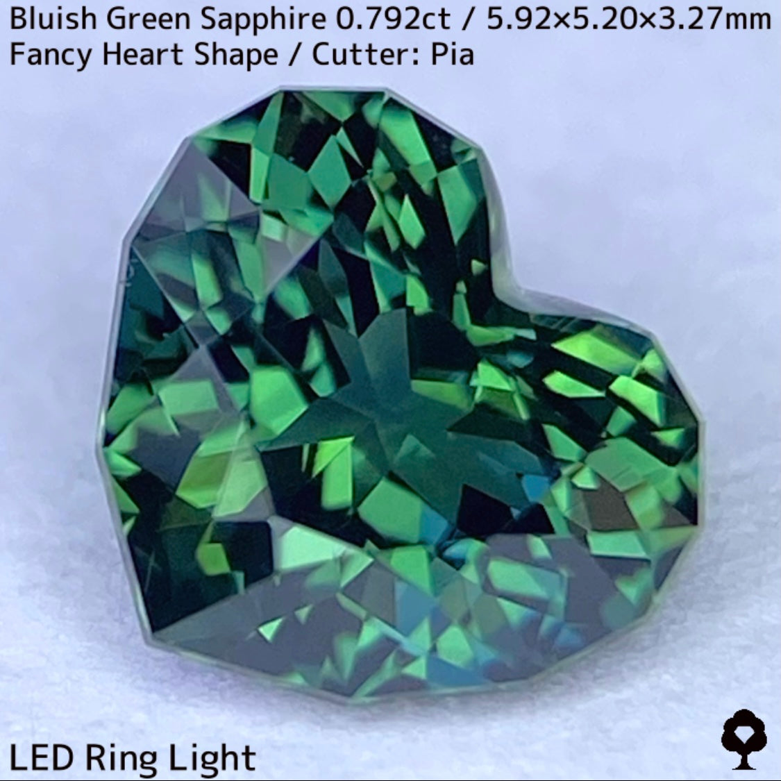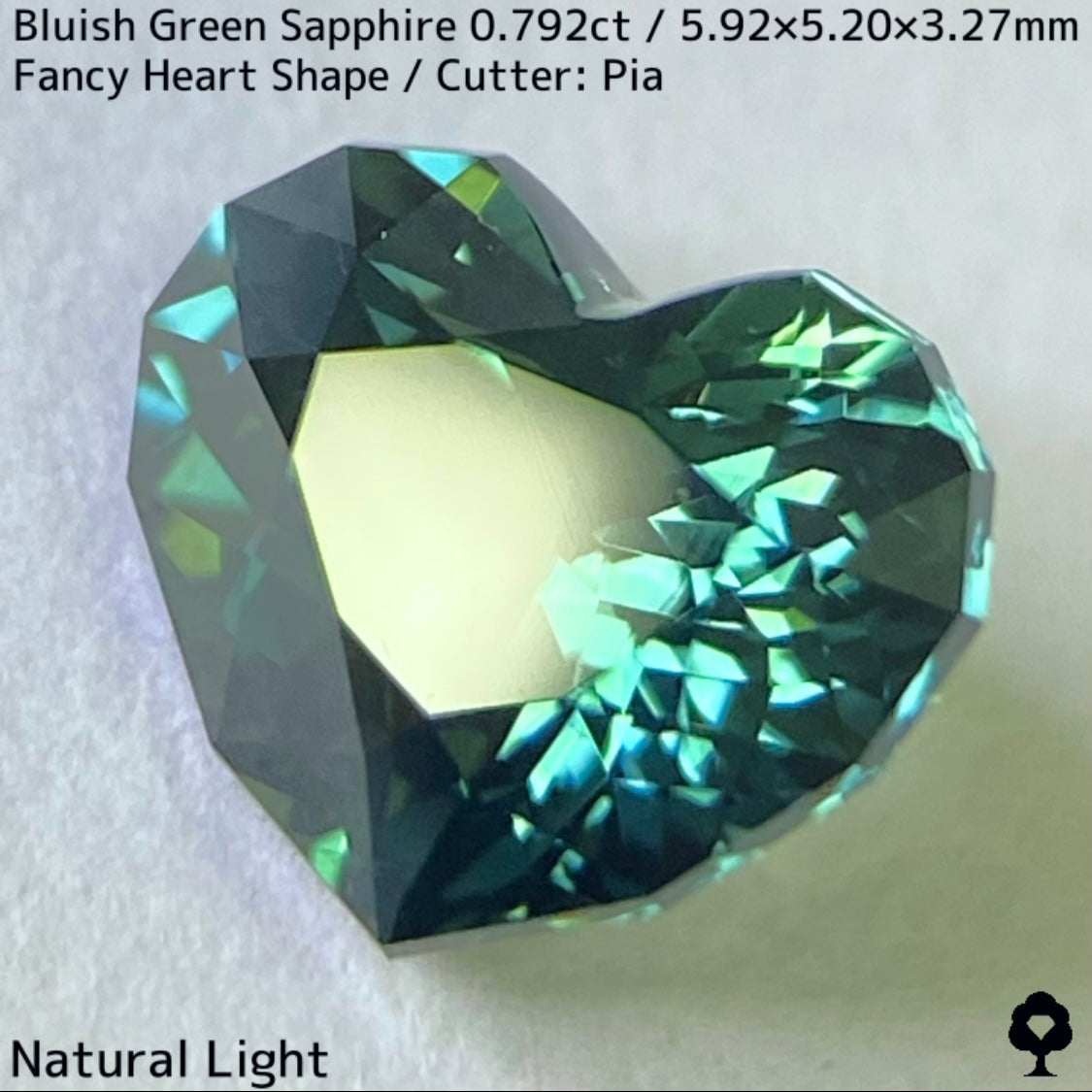 ブルーイッシュグリーンサファイア0.792ct★深いブルーみあるグリーンと可愛いファンシーハートシェイプが絶妙なバランス