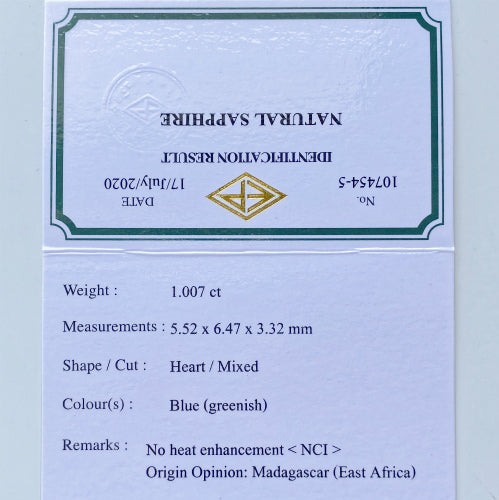 可愛いハート&綺麗なインディゴブルー✨非加熱サファイア1.007ct✨ピアっちゃん作品💎マダガスカル代表🇲🇬GTQ Olympic 2020大会6日目🎊第11種目🌲魅力的な“即決価格”付き✌️8月3日「12時34分終了」となります⏰