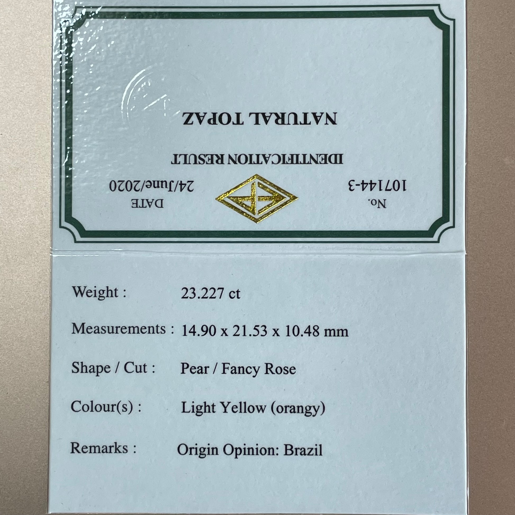『師匠作品』煌くシャンパンカラー✨大粒ファンシーペアシェイプ💎トパーズ23.227ct