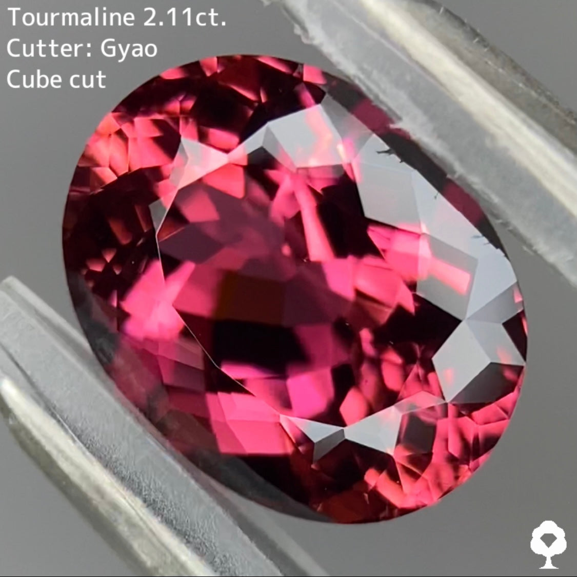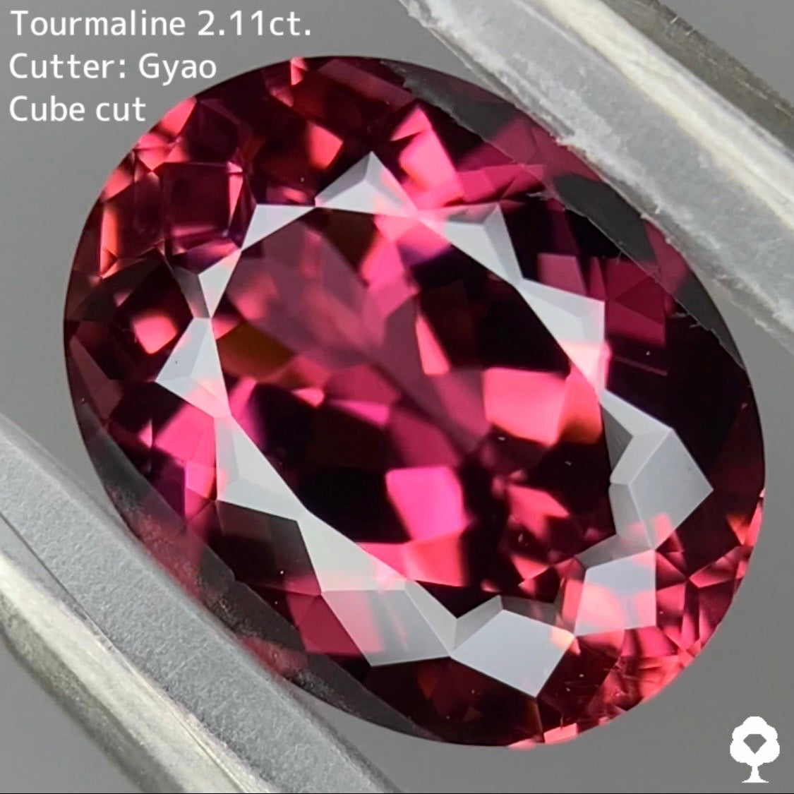 【お客さま専用★】オレンジからパープルまでを豊かに含む鮮やかで心奪われるピンクの縁取りキューブカット★トルマリン 2.11ct【Cube cut】