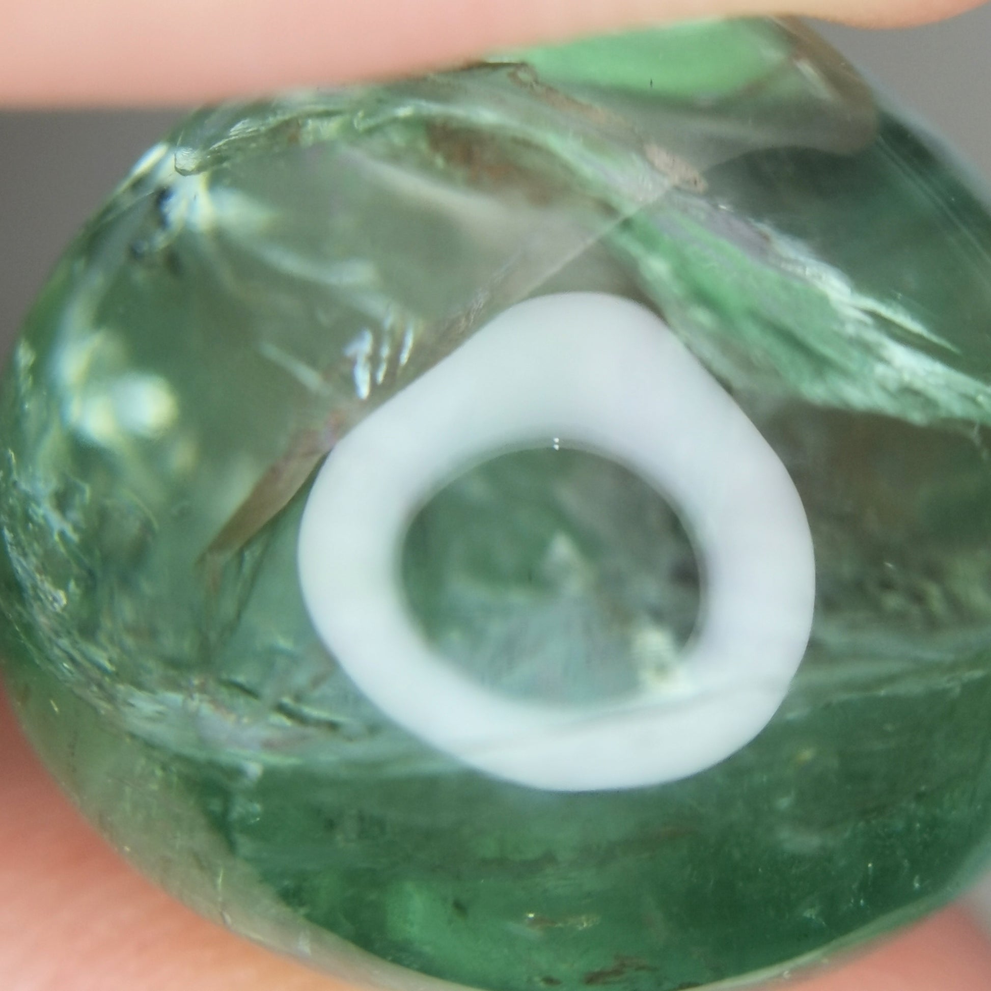 可愛らしい緑と透明な部分が複雑に絡む、内包物も含めての作品だと思います。