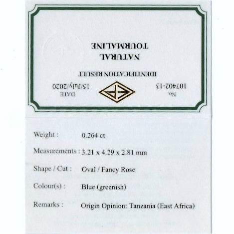 鑑別書ではグリーニッシュブルーとなっていますが、ご覧の通りかなりグリーンの強い、とても美しい色のトルマリンです。