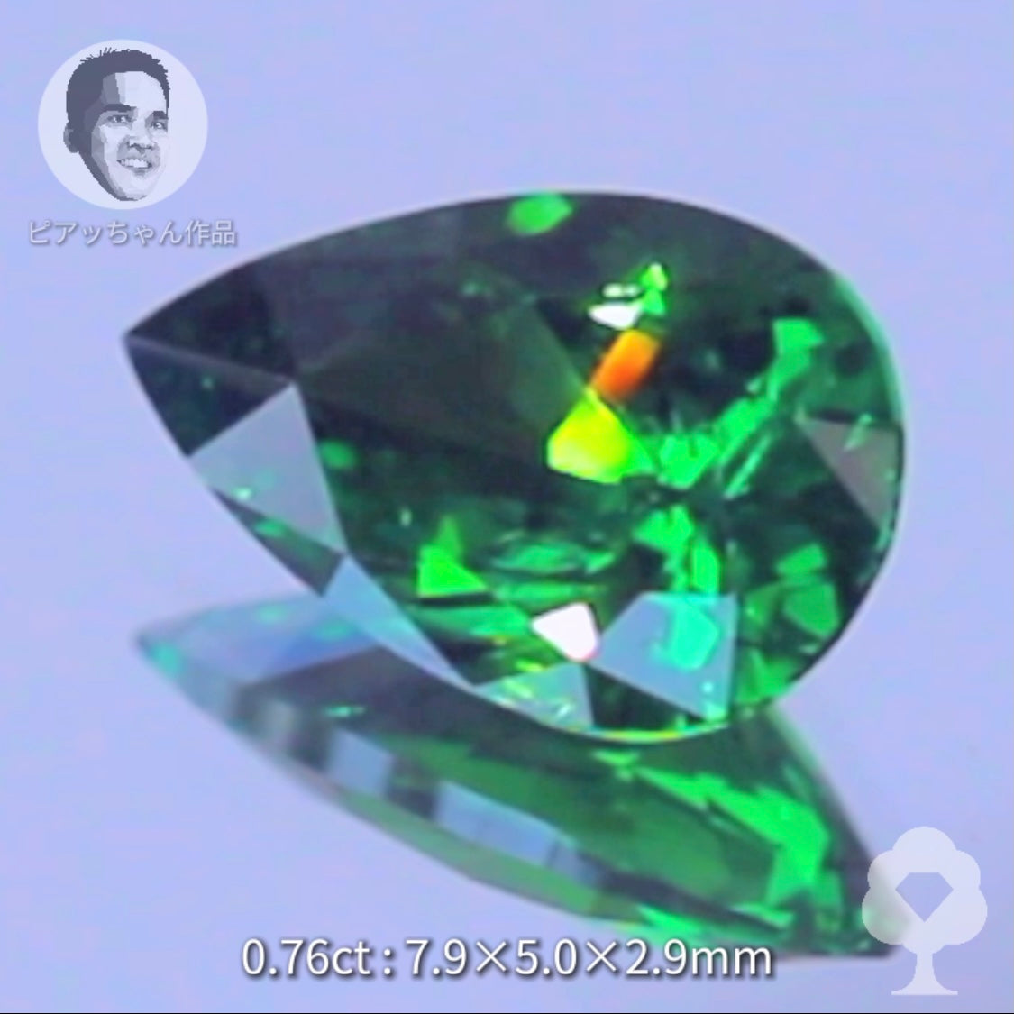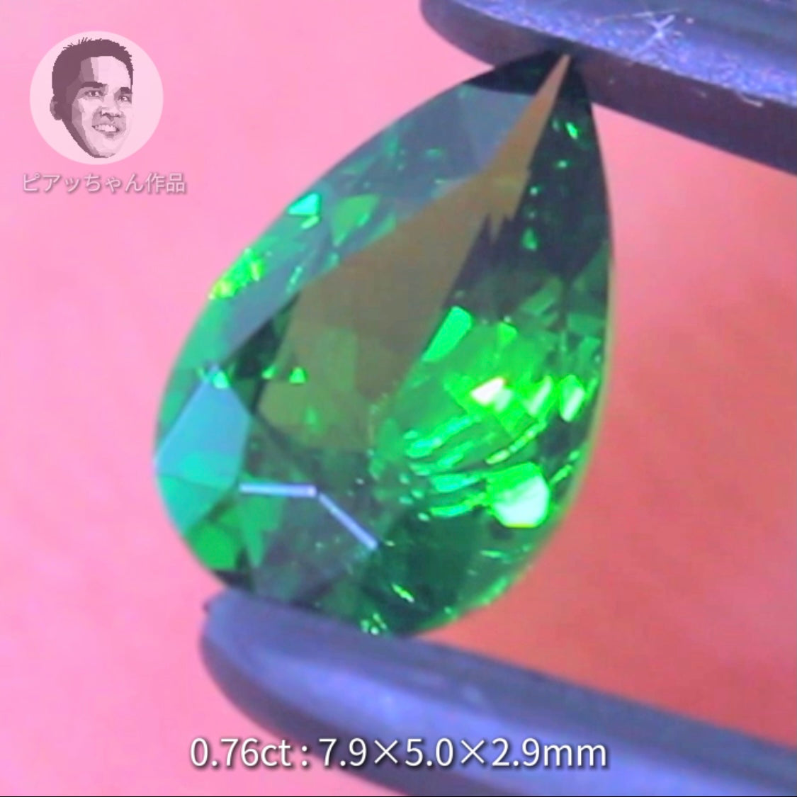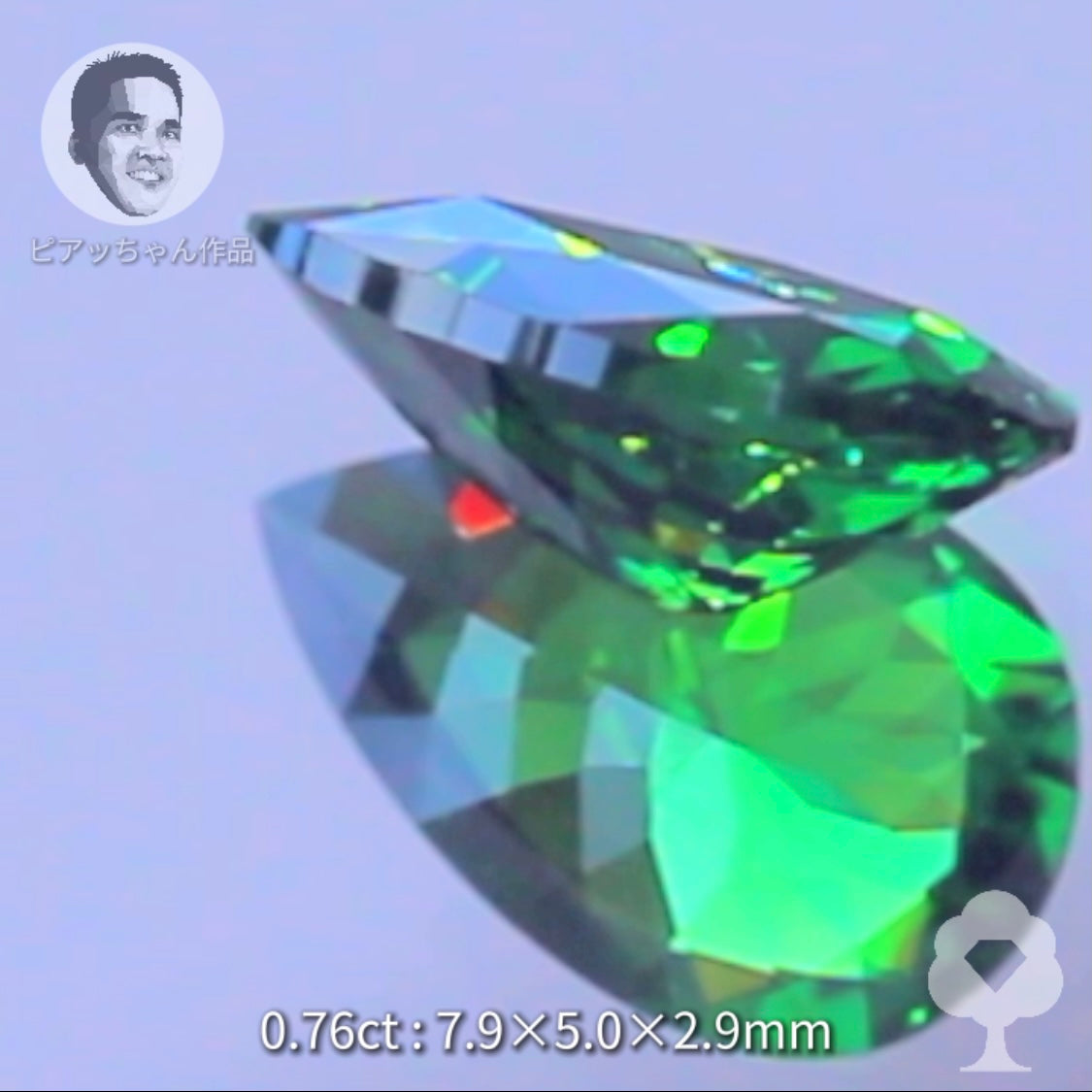 こちらの作品は、GTJメインカッターの一人”ピアッちゃん”の作品で、ツァボライト 0.76ctです。
