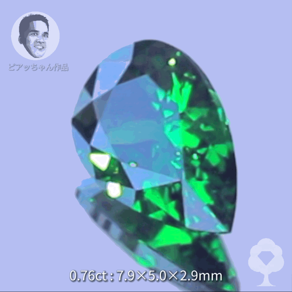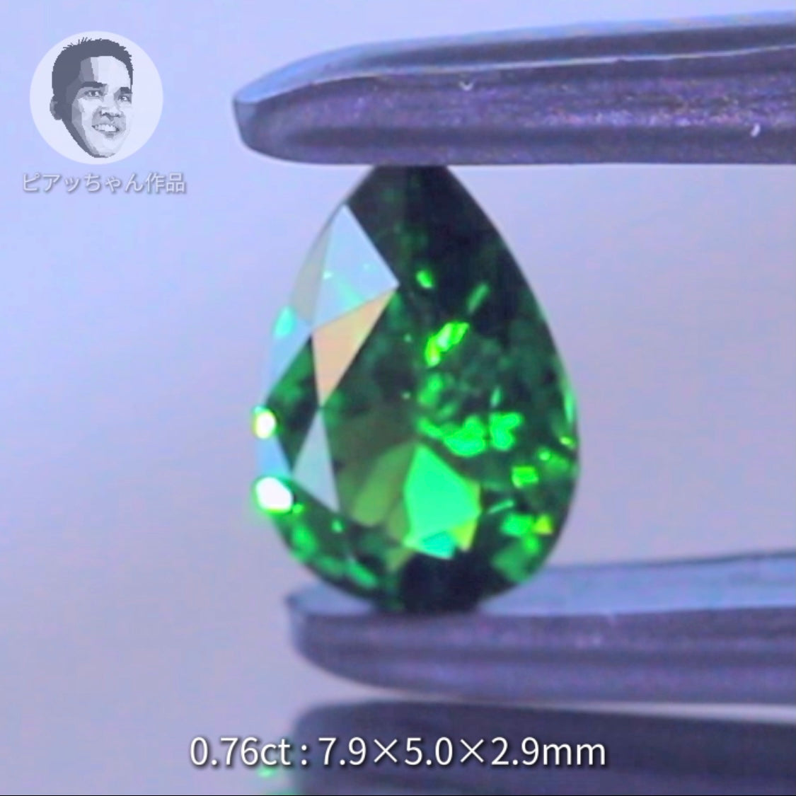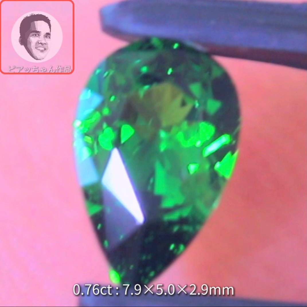 こちらの作品は、GTJメインカッターの一人”ピアッちゃん”の作品で、ツァボライト 0.76ctです。