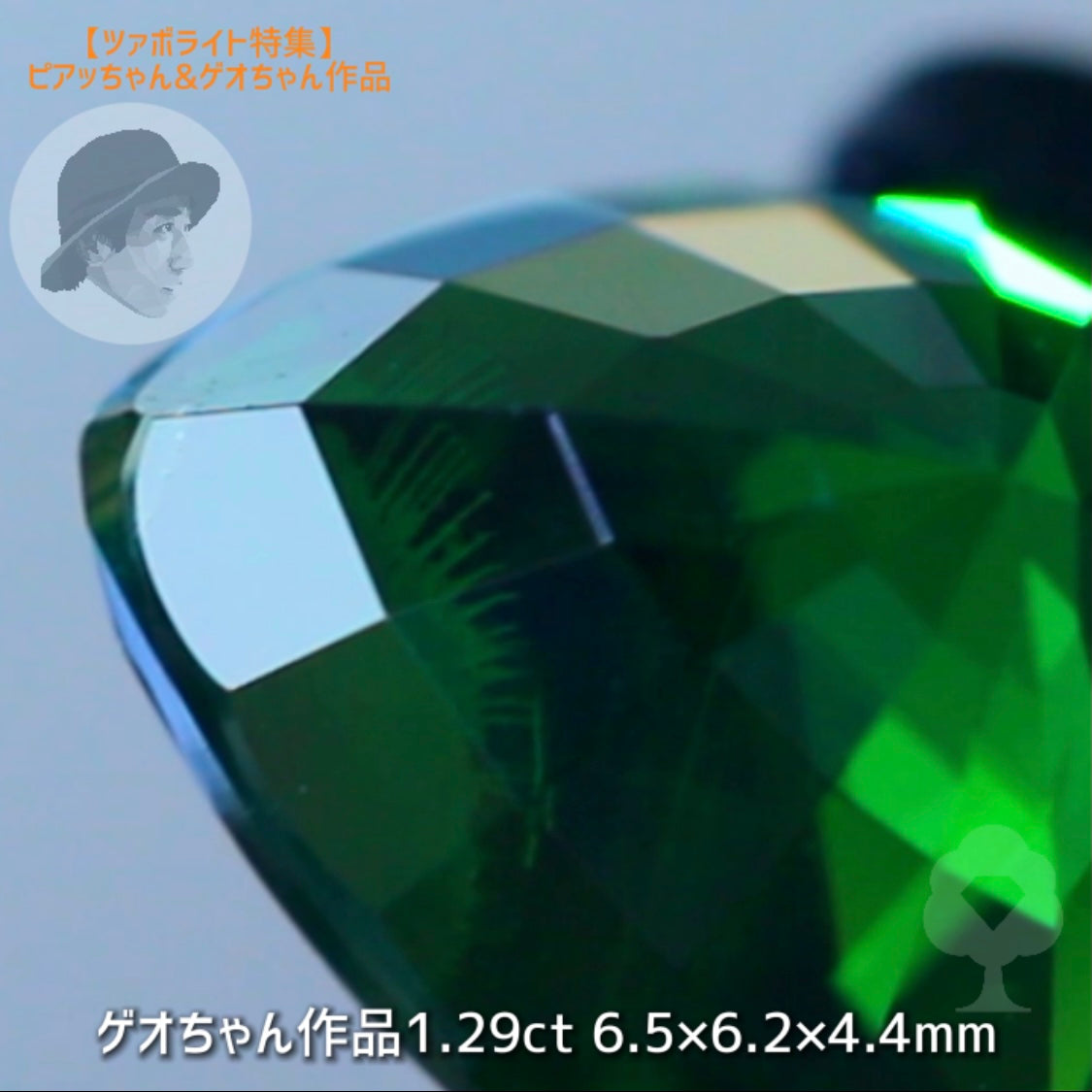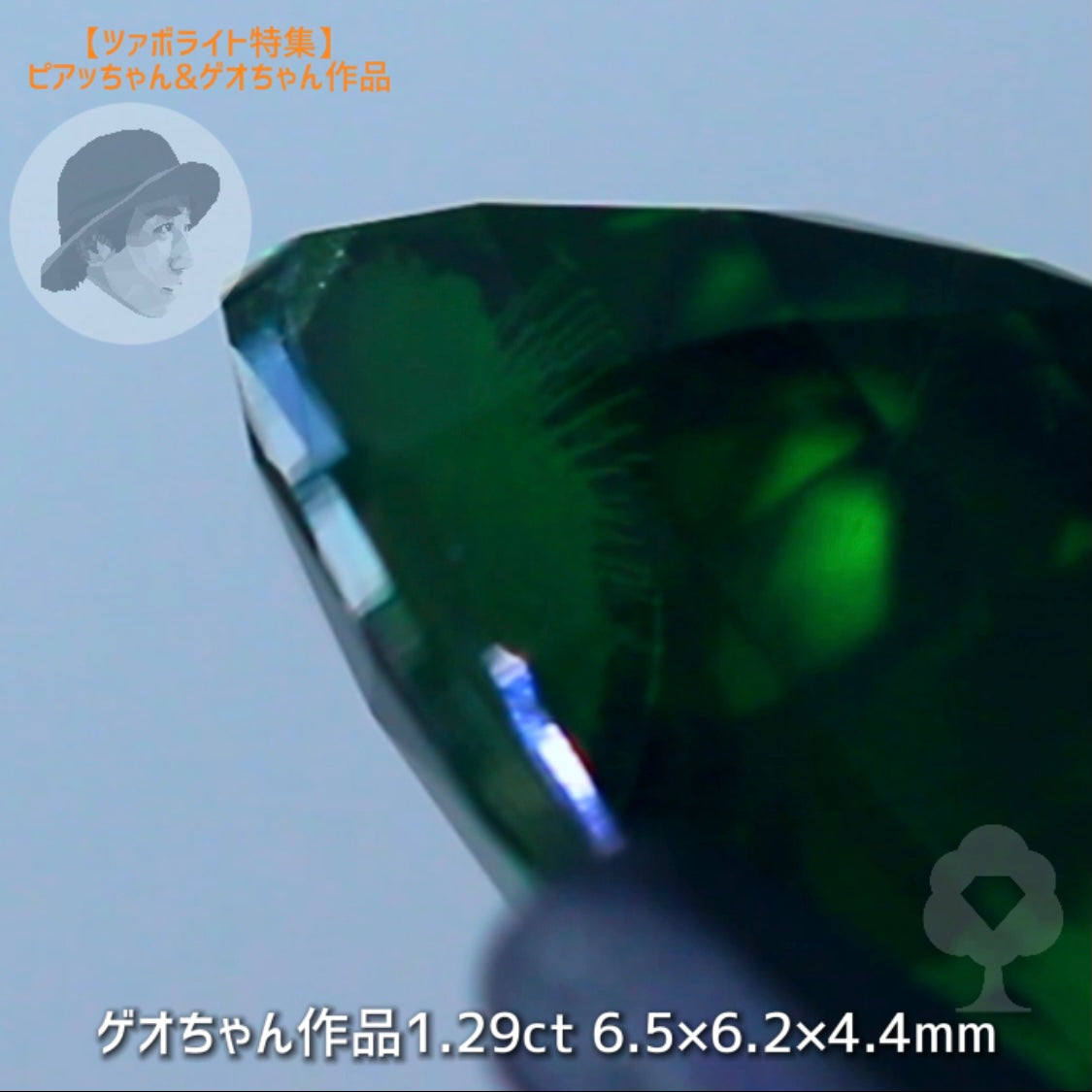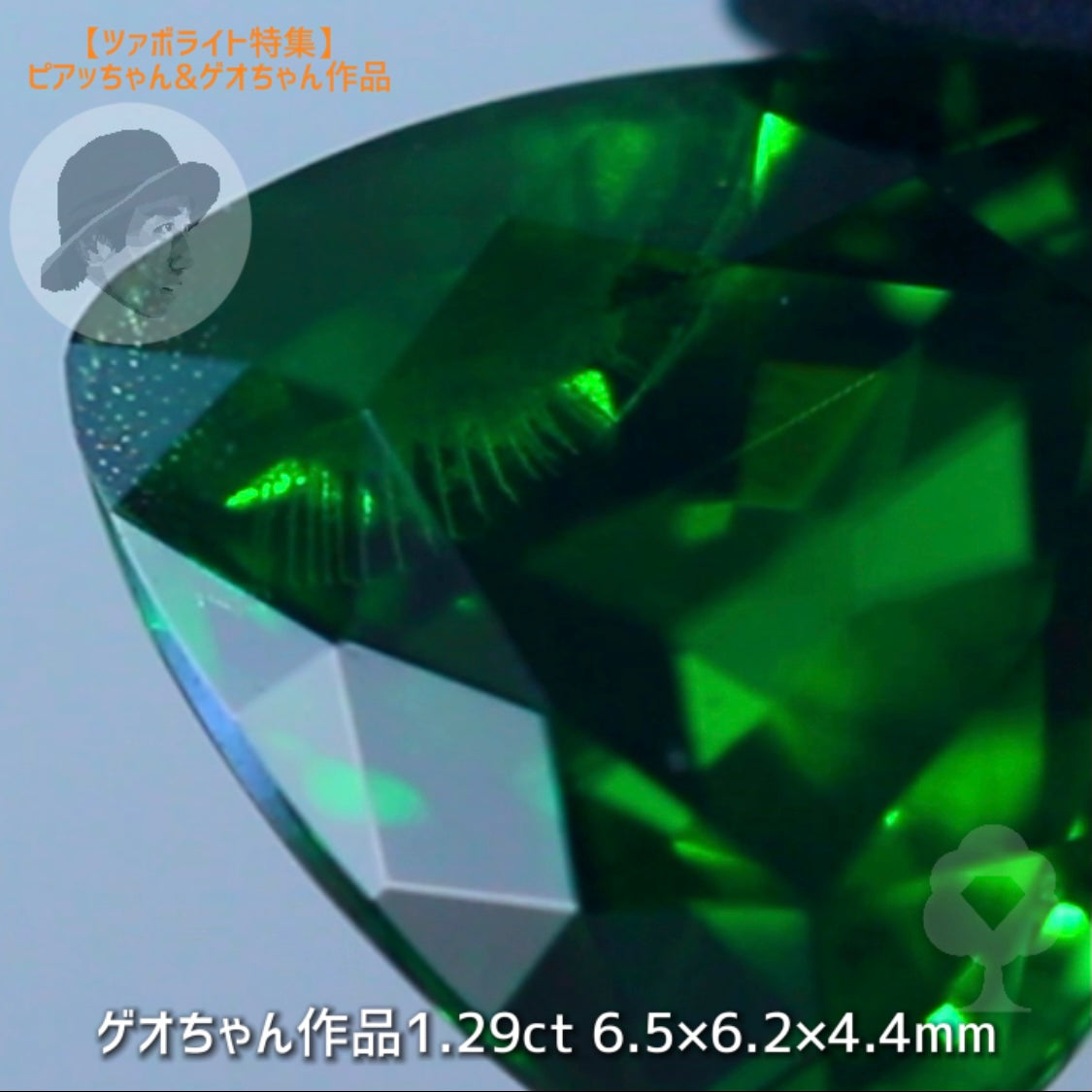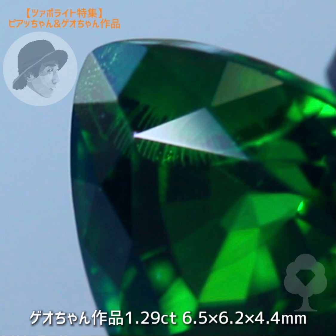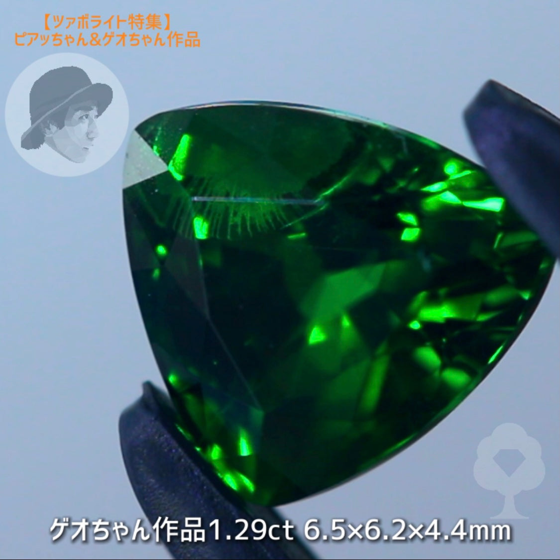 こちらのツァボライト1.29ctは、ゲオちゃん作品のトリリアントカットです。