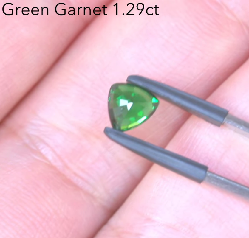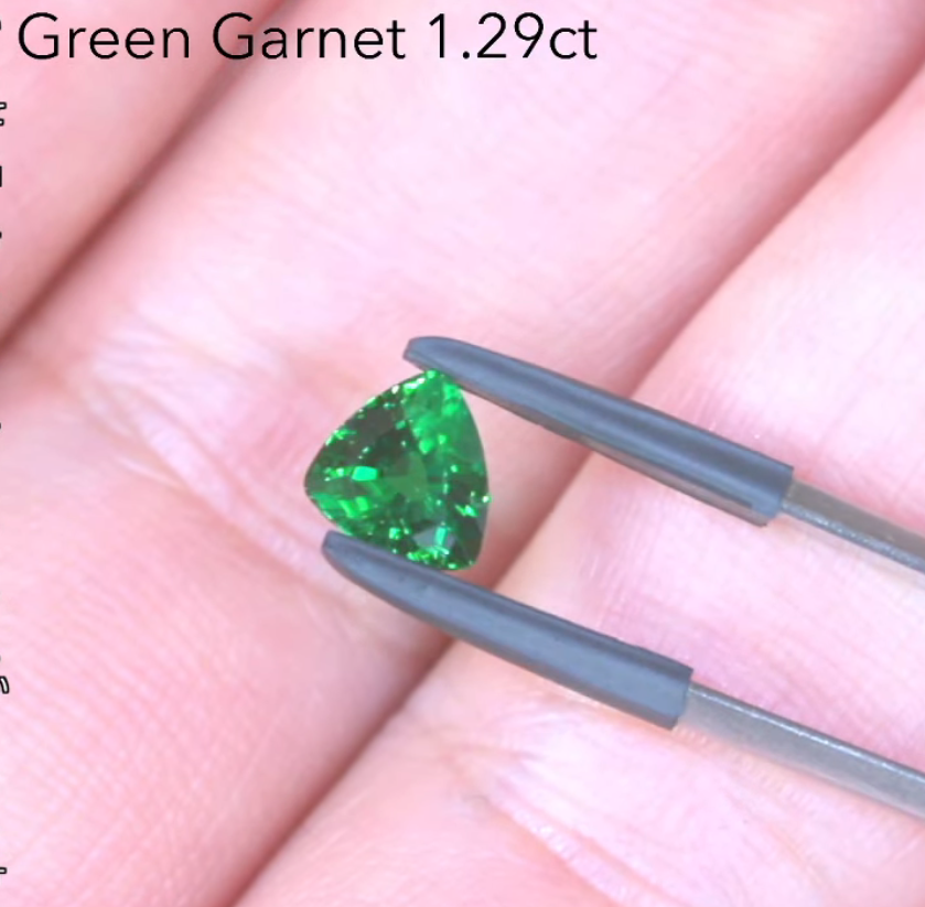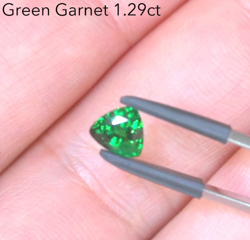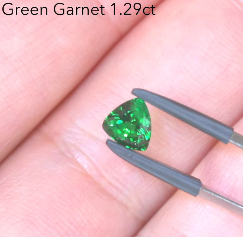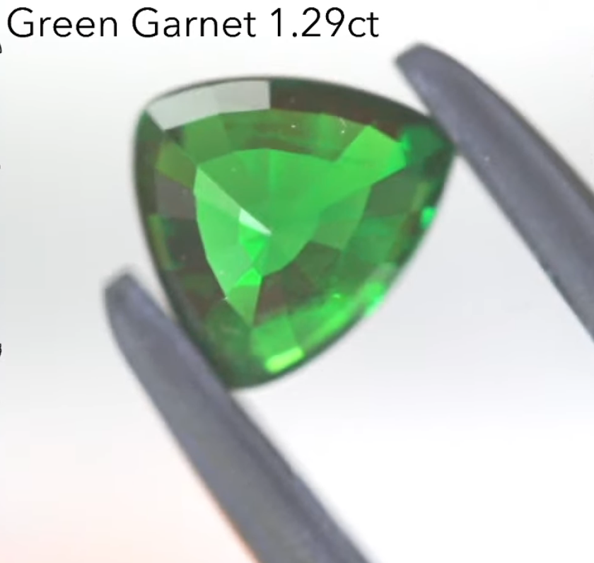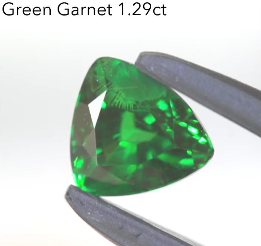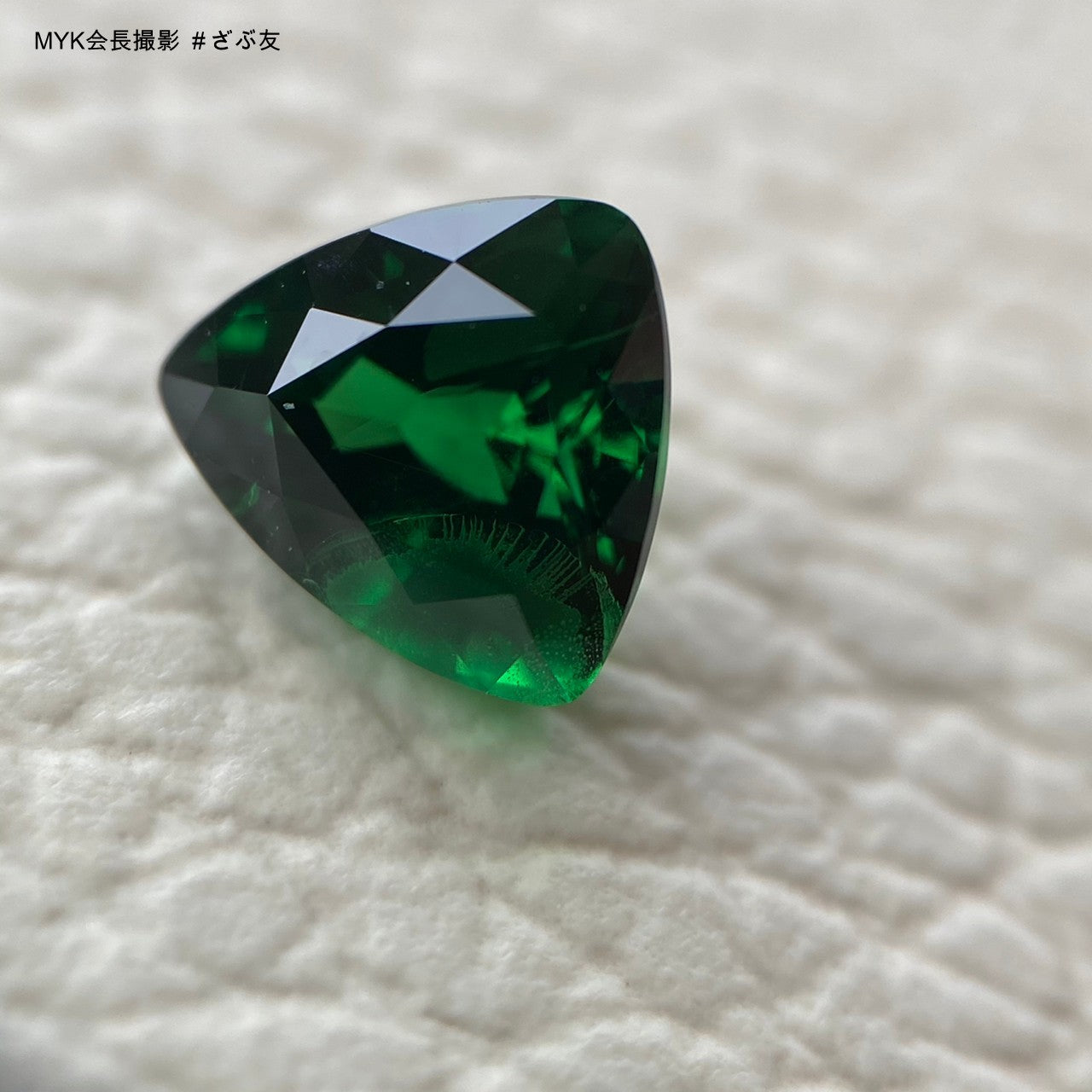 こちらのツァボライト1.29ctは、ゲオちゃん作品のトリリアントカットです。