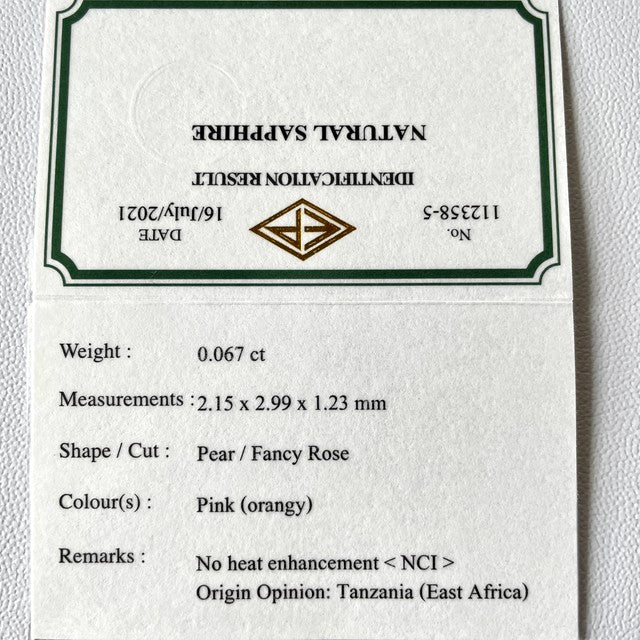 非加熱パパラチァサファイア0.067ct / ピアッちゃん作品