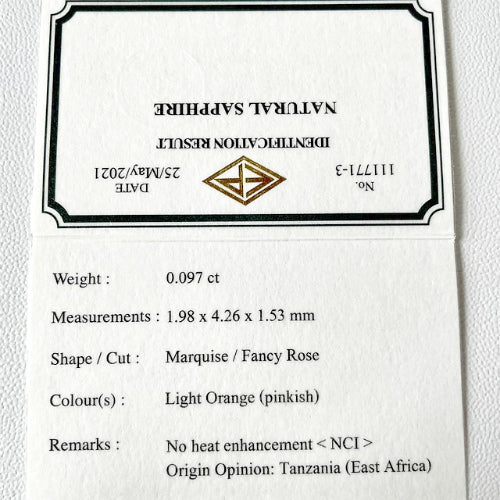 非加熱パパラチァサファイア0.097ct / ピアッちゃん作品