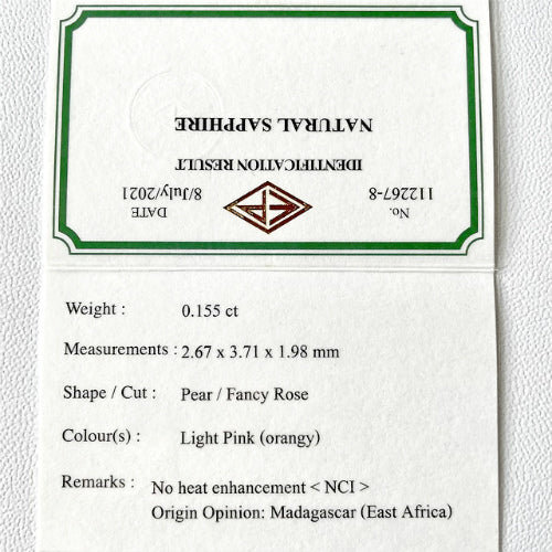 非加熱パパラチァサファイア0.155ct / ピアッちゃん作品