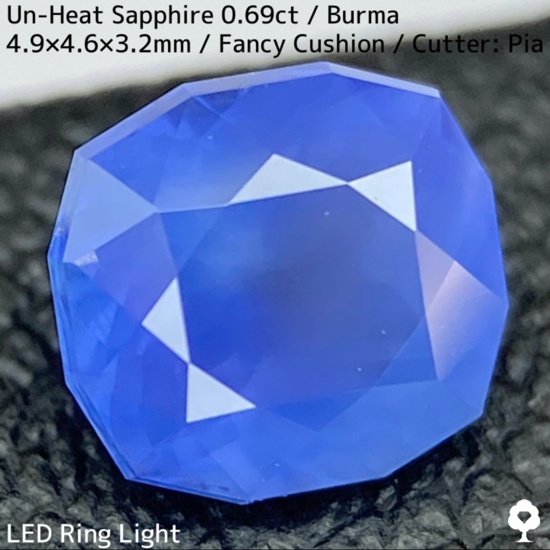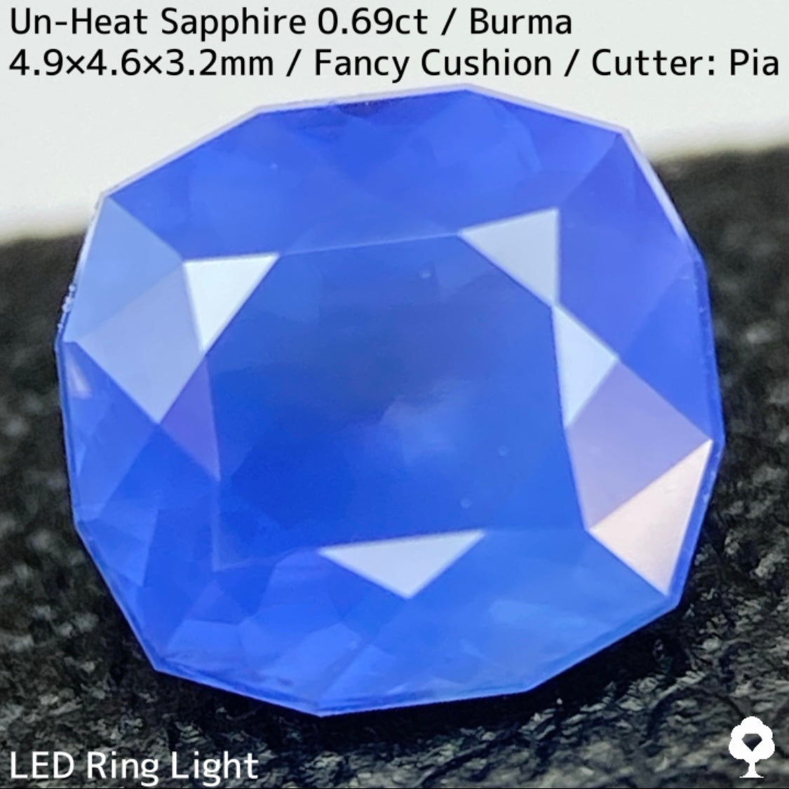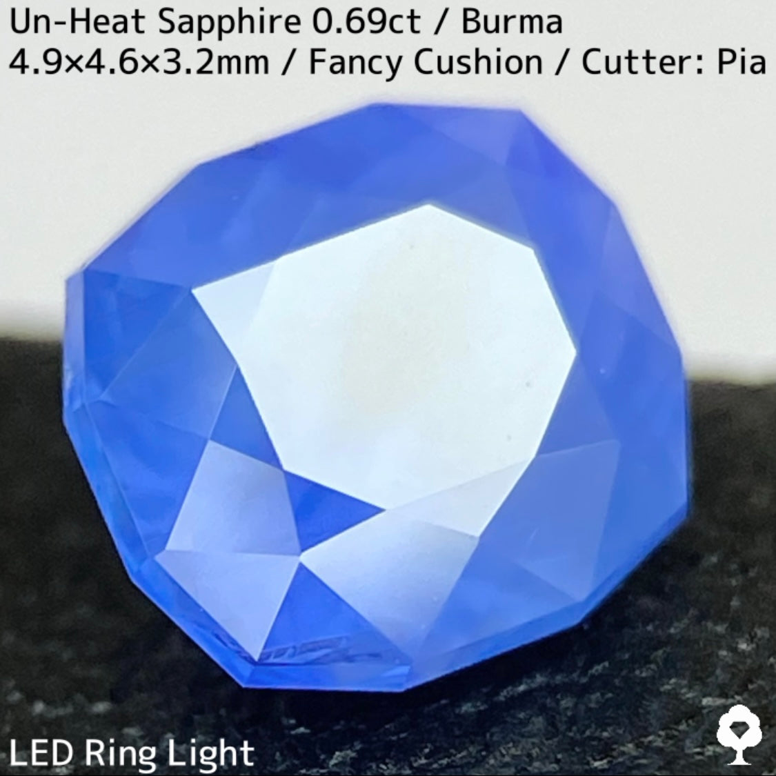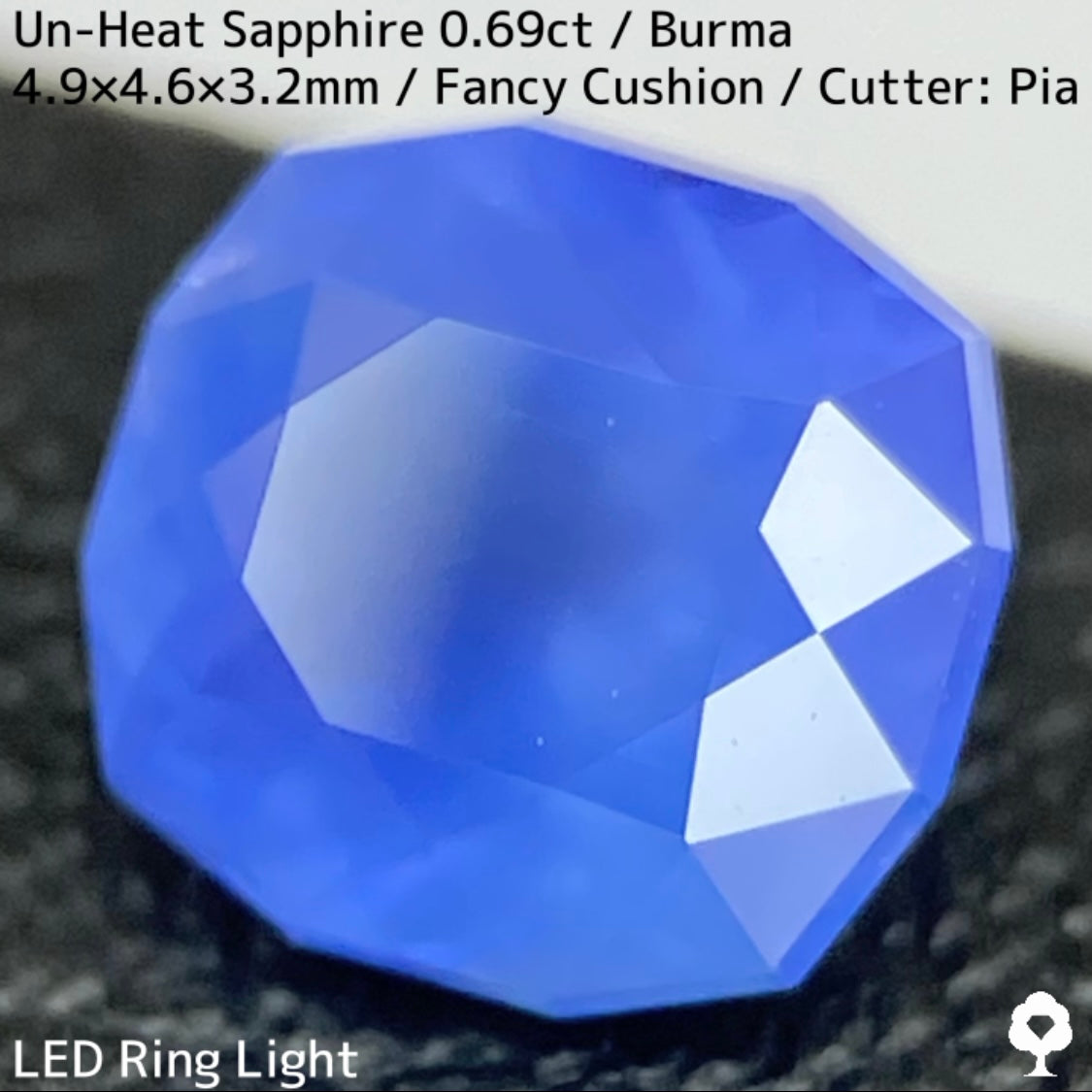 ビルマ産非加熱サファイア0.69ct★シルキーブルーが可愛い希少ビルマ産を贅沢なファンシークッション仕上げ