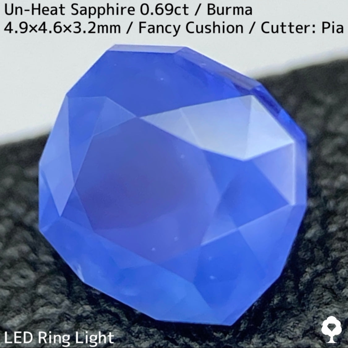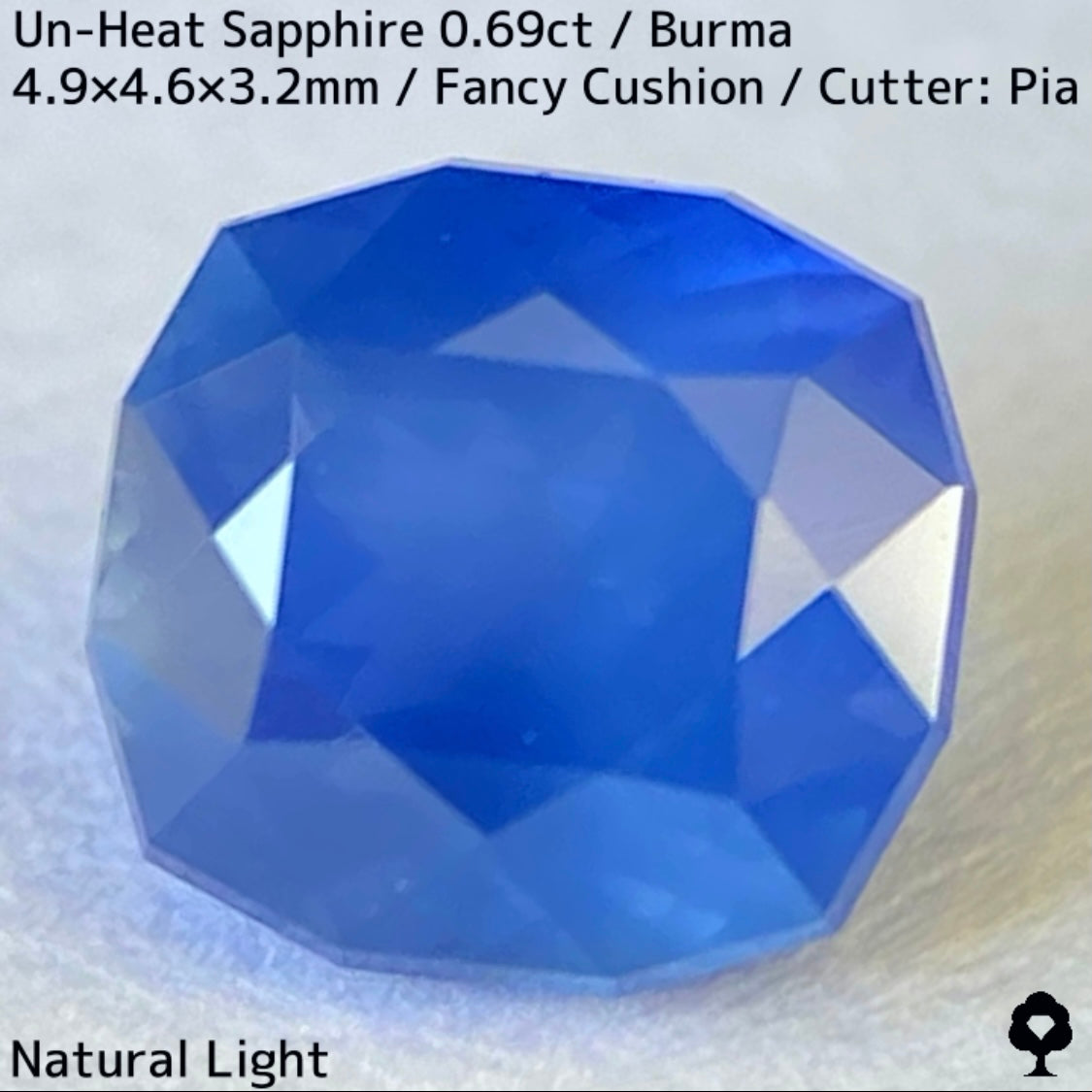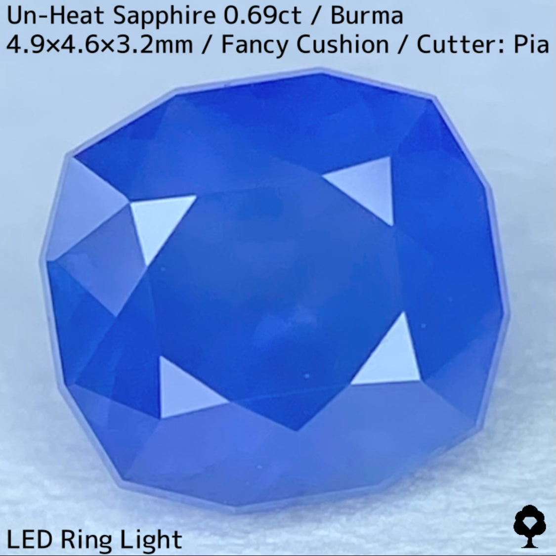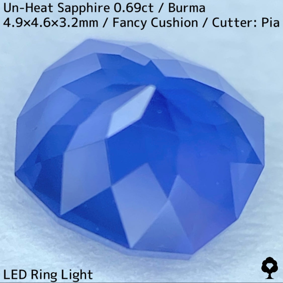 ビルマ産非加熱サファイア0.69ct★シルキーブルーが可愛い希少ビルマ産を贅沢なファンシークッション仕上げ