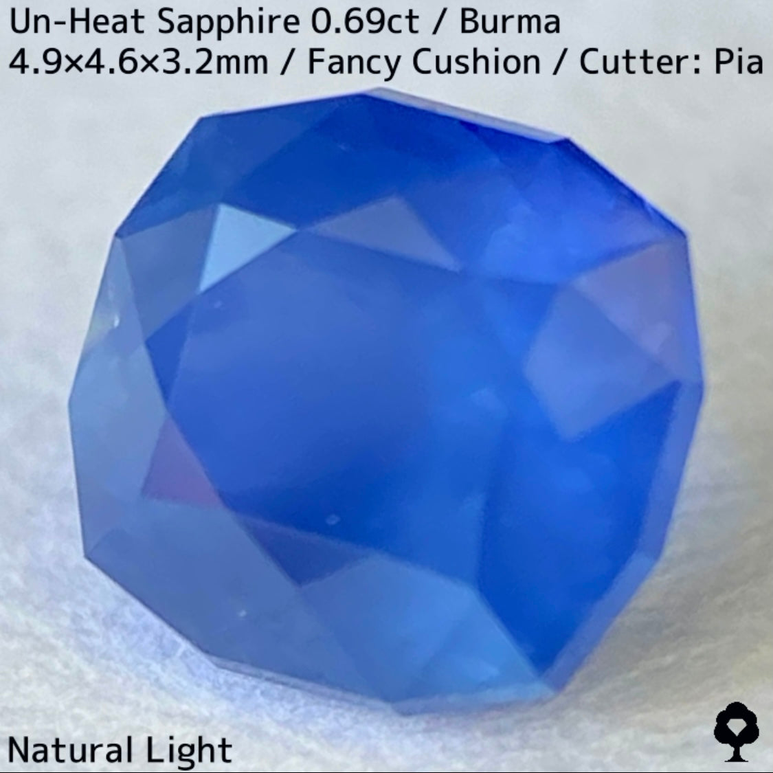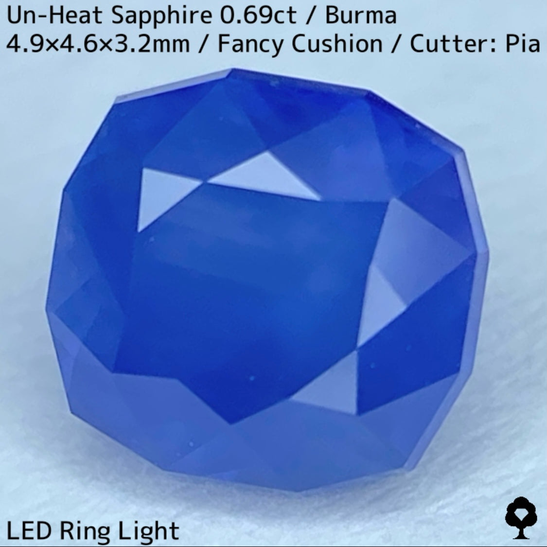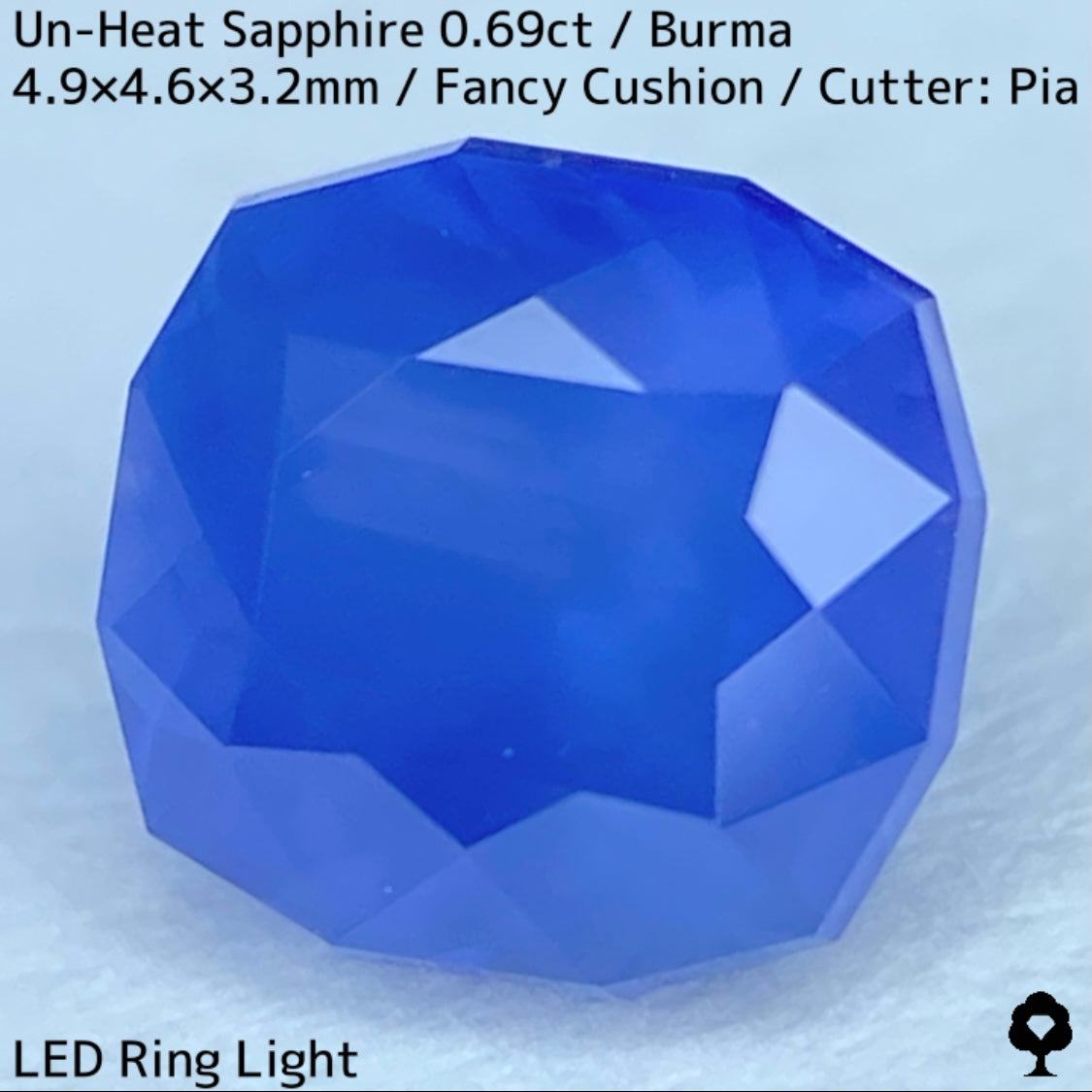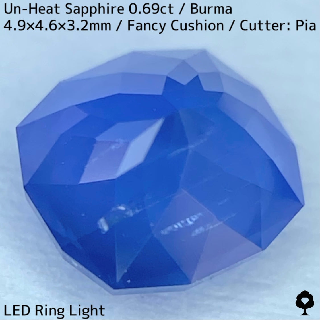 ビルマ産非加熱サファイア0.69ct★シルキーブルーが可愛い希少ビルマ産を贅沢なファンシークッション仕上げ