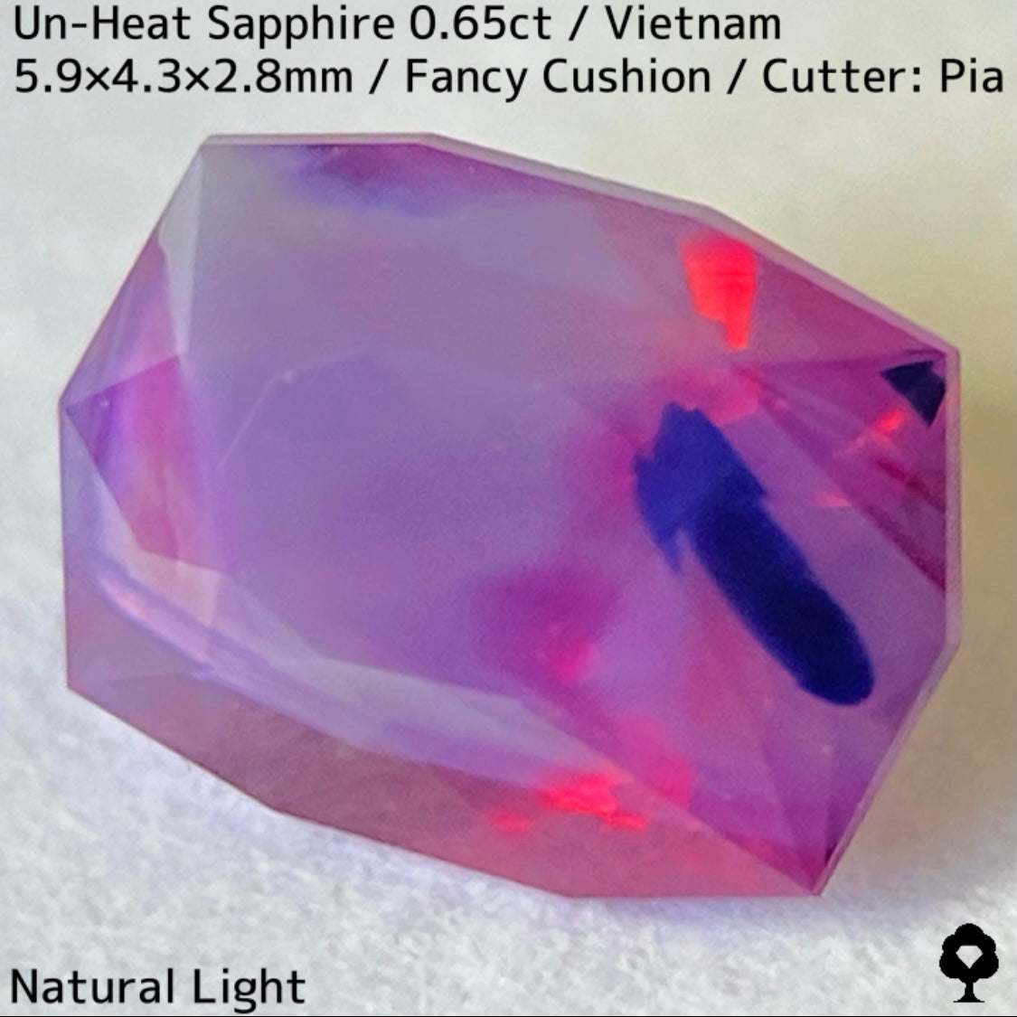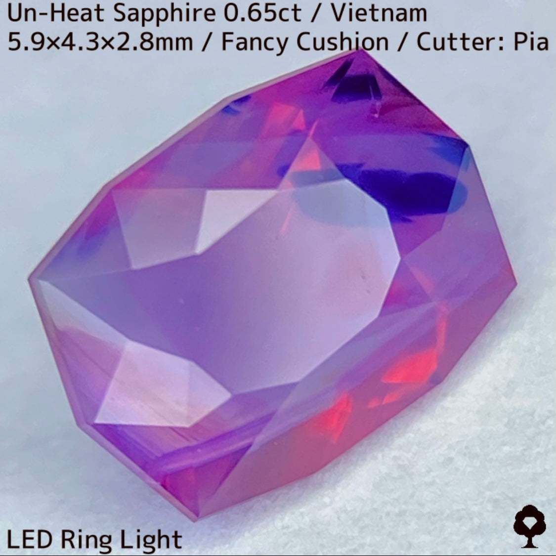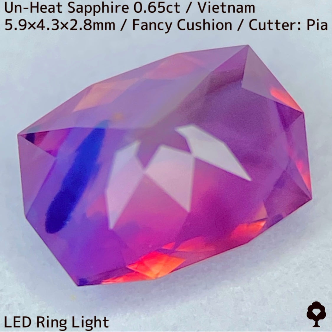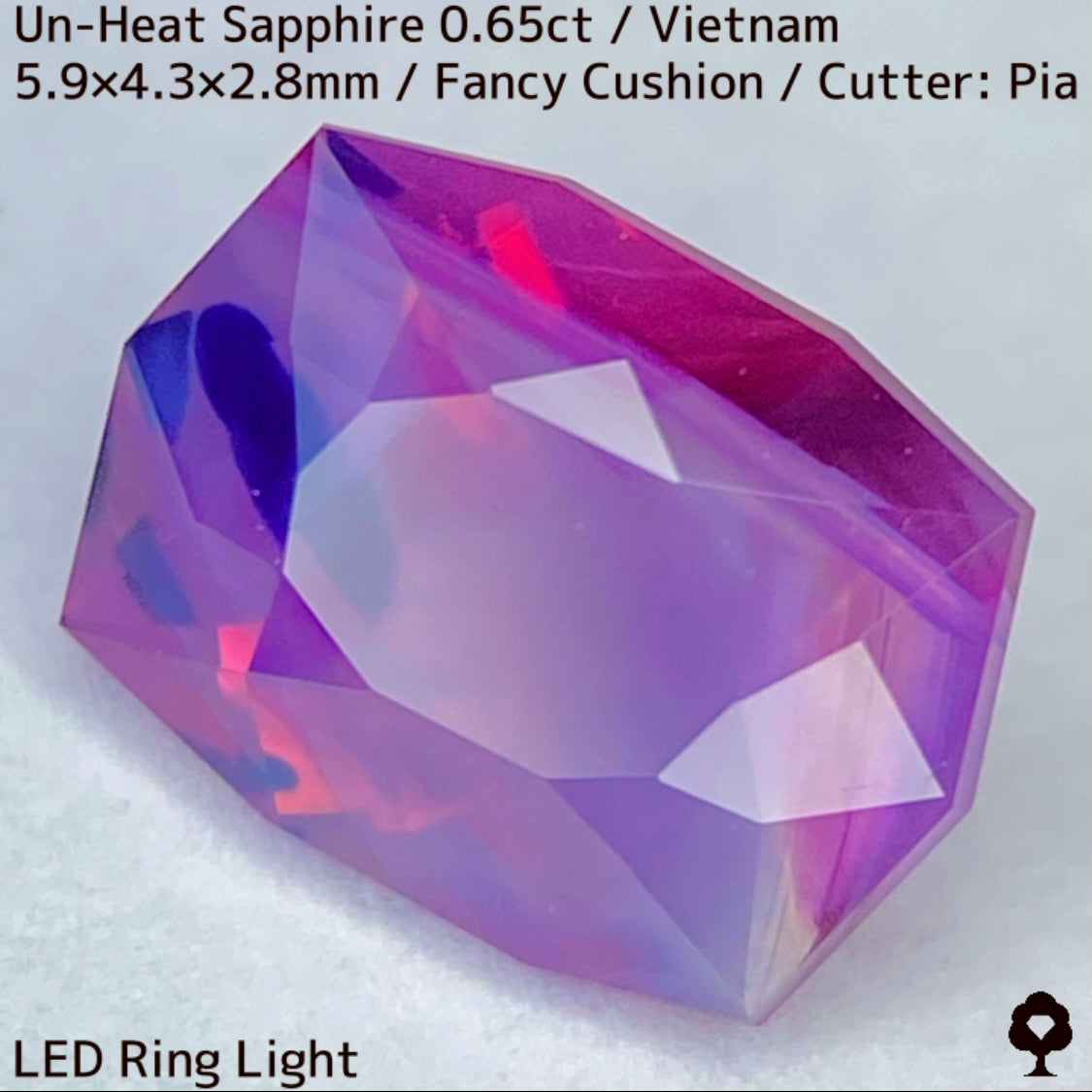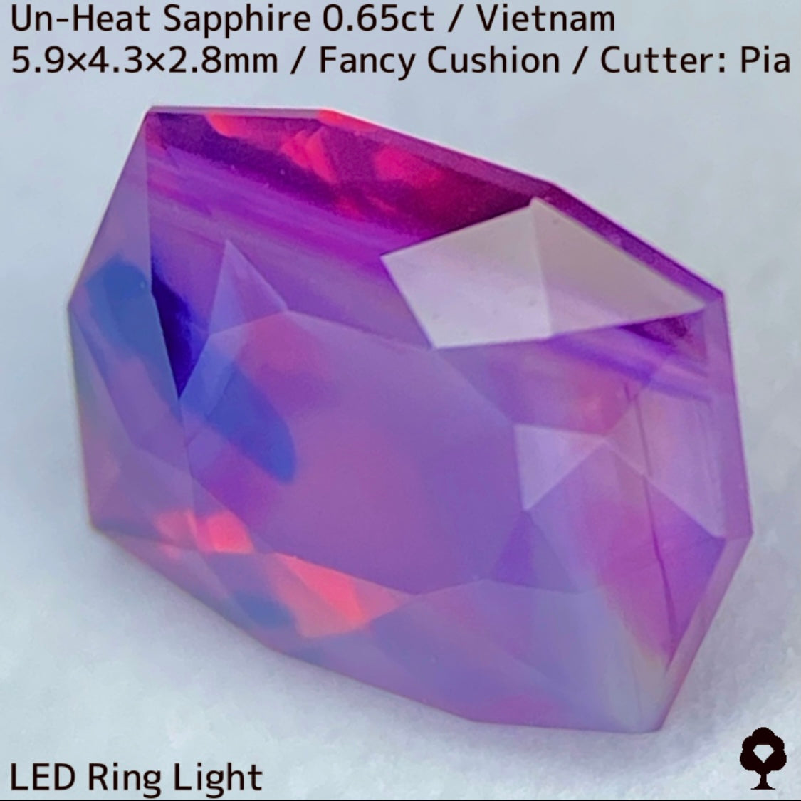 GTJ創業者の大御所が旅先のベトナムを訪れた際に仕入れた非加熱サファイアで、ベトナム北部らしいシルキーさとブルーの色だまりとネオン感のある強い煌めきが一石に凝縮された面白い一石です。