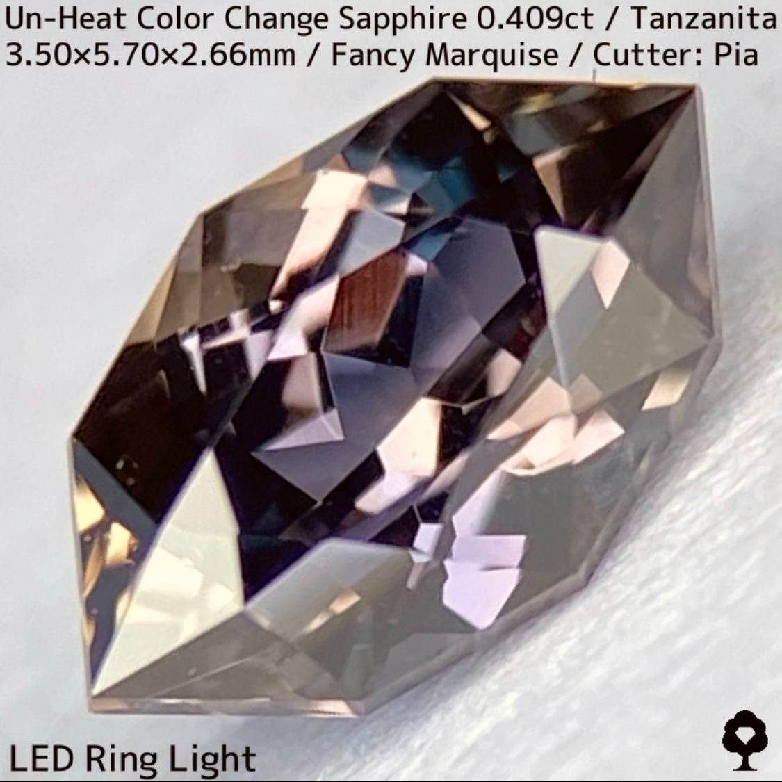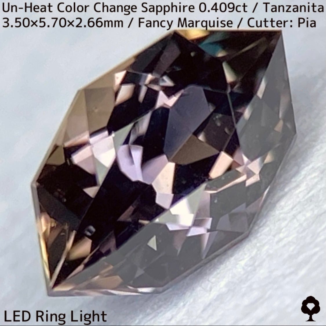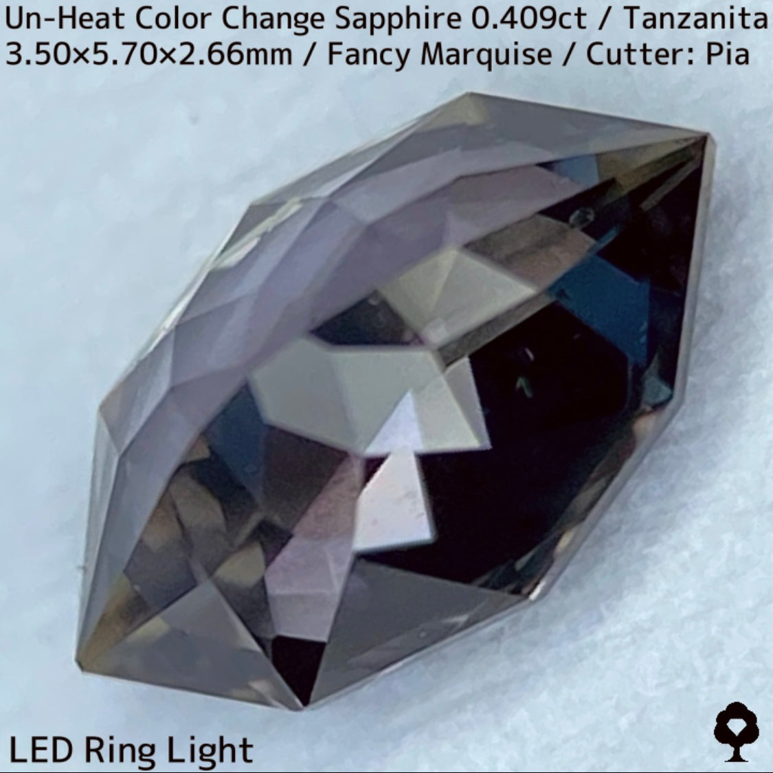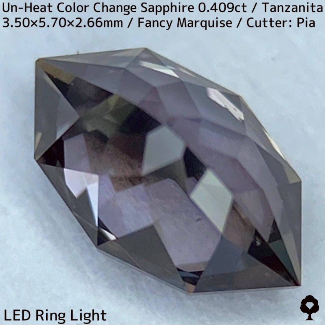 ご好評いただいているチャンタブリーで大御所が箱買いした当たりロットのタンザニア産非加熱カラーチェンジサファイアで、ファンシーオーバルを中心にご紹介を進めて来ましたが、元の石の状態でインクルージョンがあったため、思い切ってファンシーマーキスに仕上げた一石です。