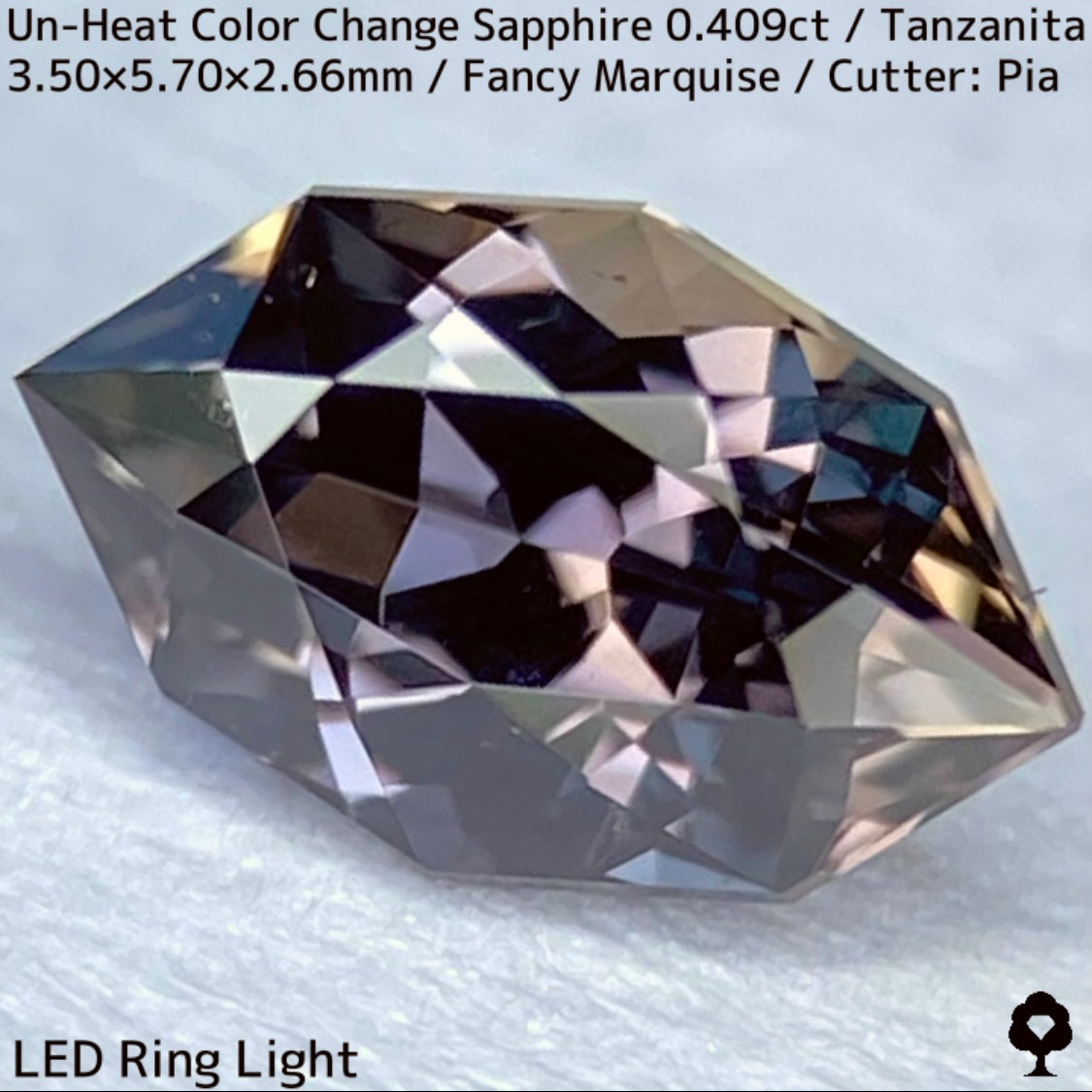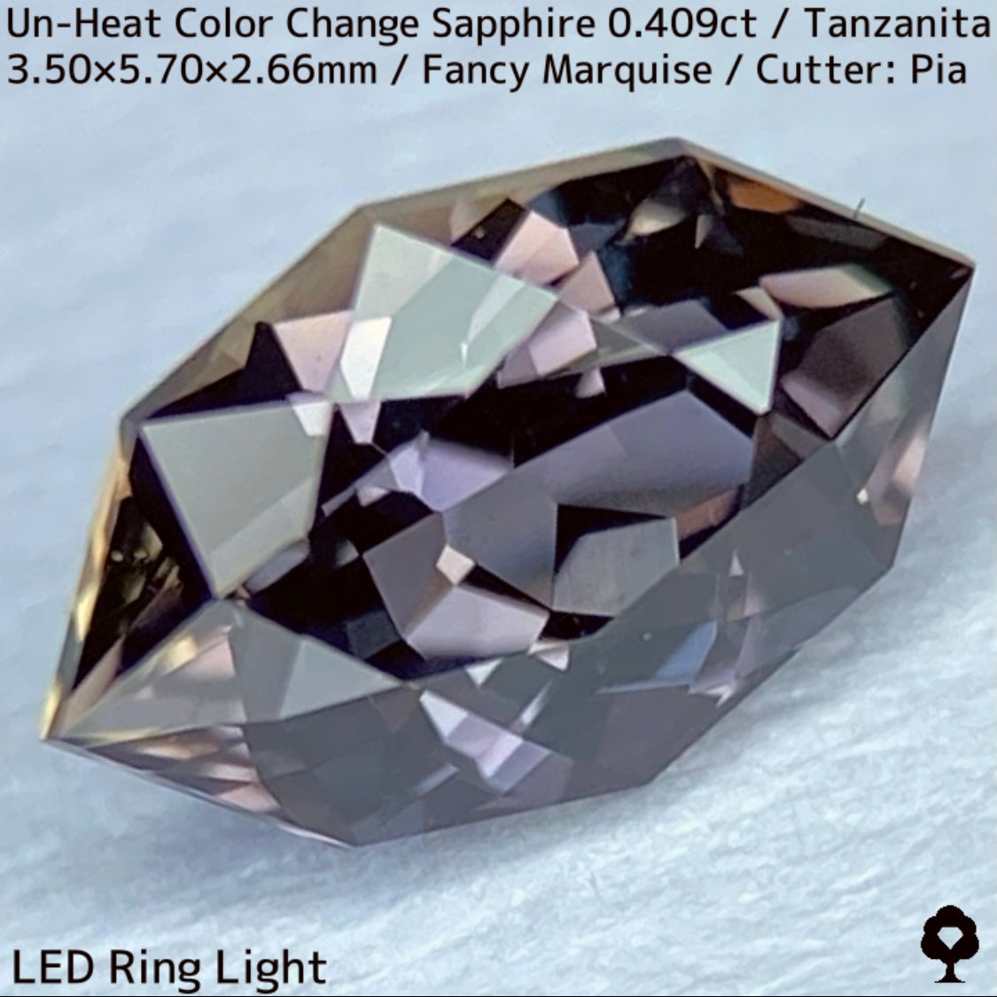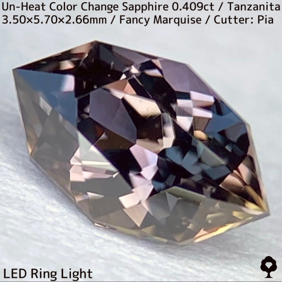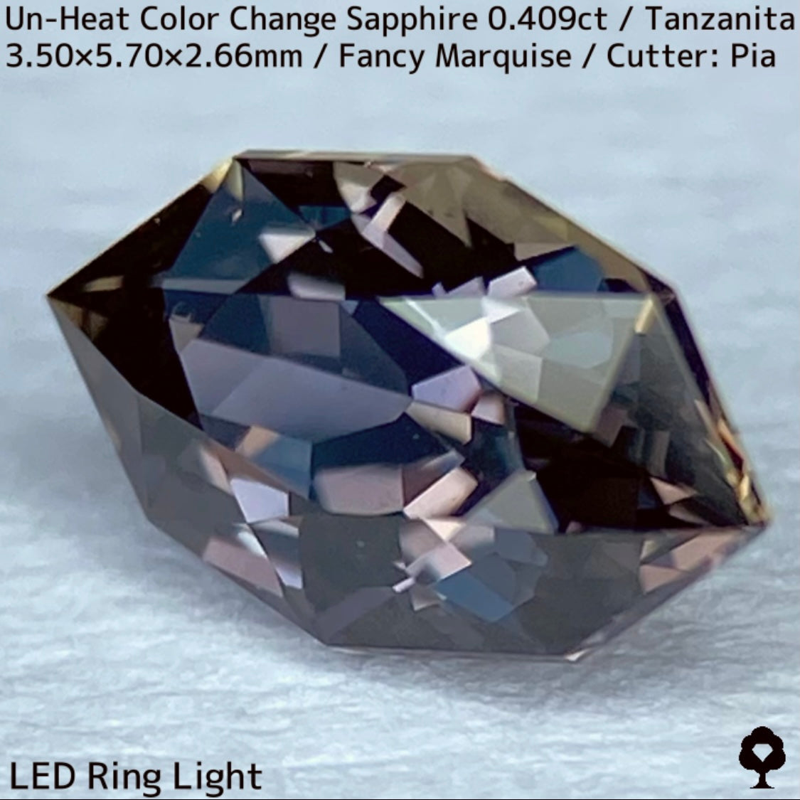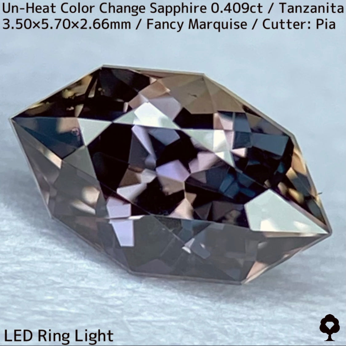 ご好評いただいているチャンタブリーで大御所が箱買いした当たりロットのタンザニア産非加熱カラーチェンジサファイアで、ファンシーオーバルを中心にご紹介を進めて来ましたが、元の石の状態でインクルージョンがあったため、思い切ってファンシーマーキスに仕上げた一石です。