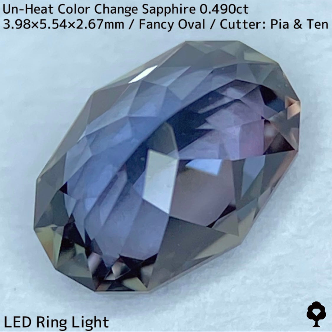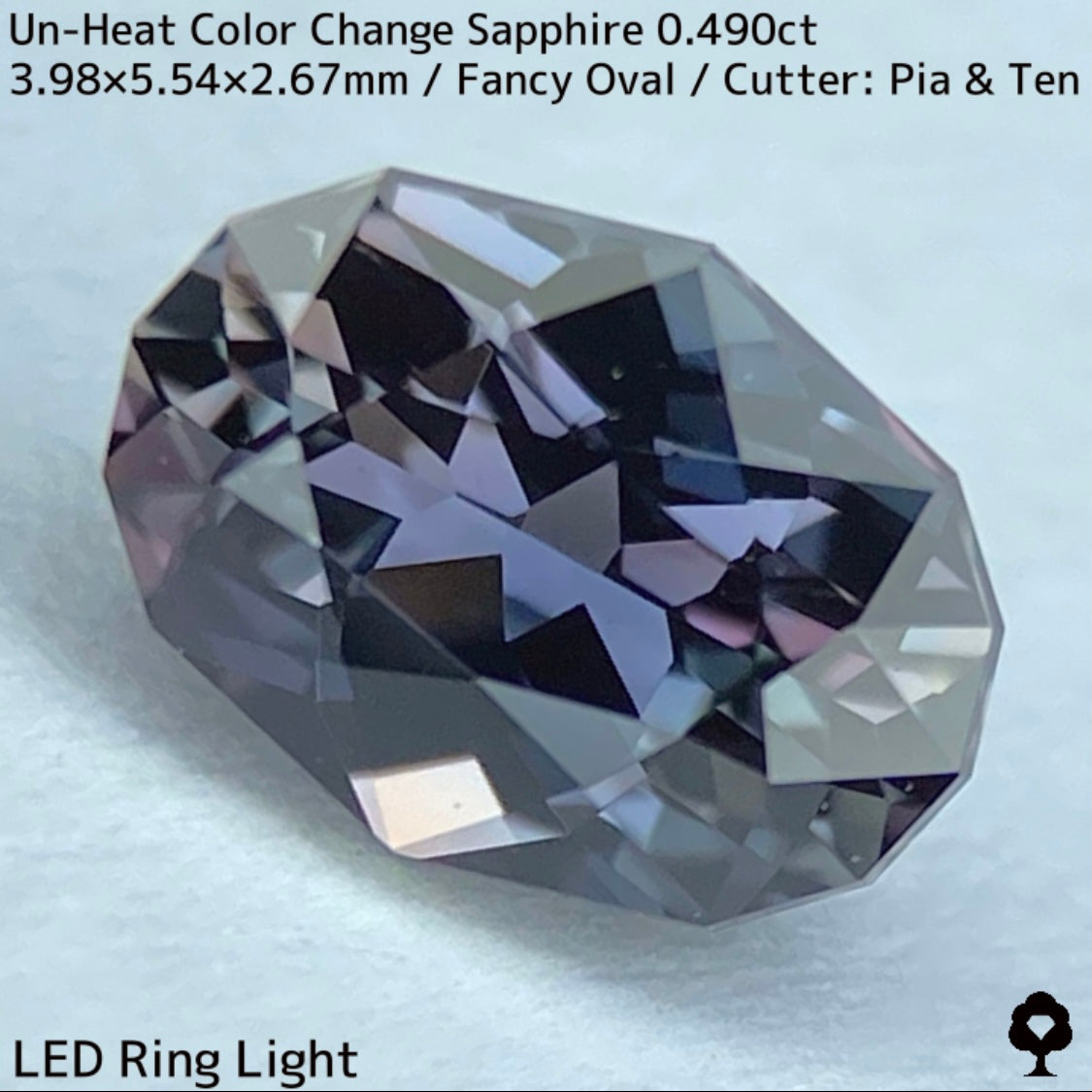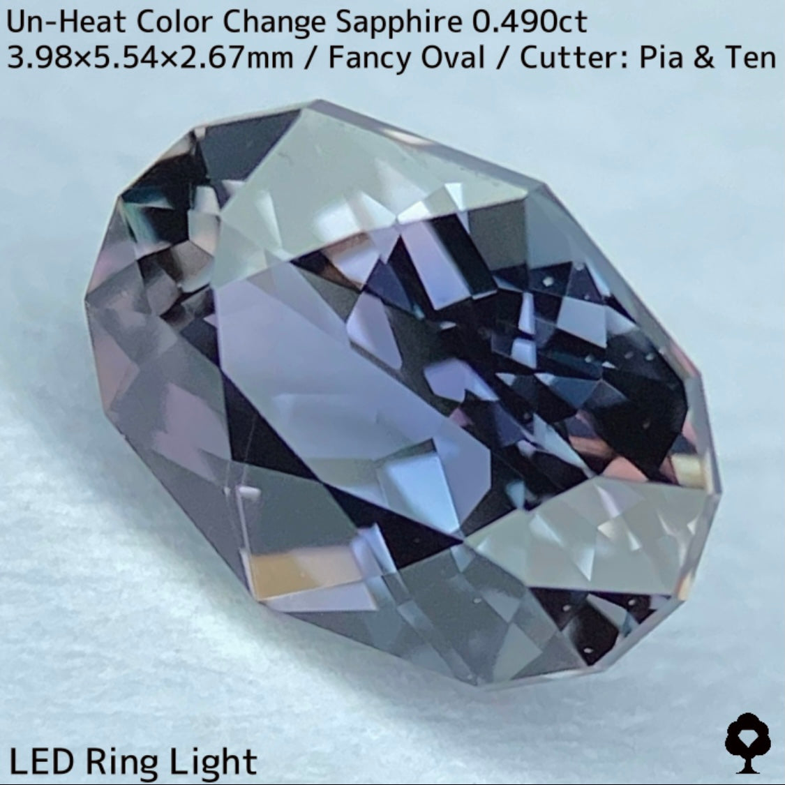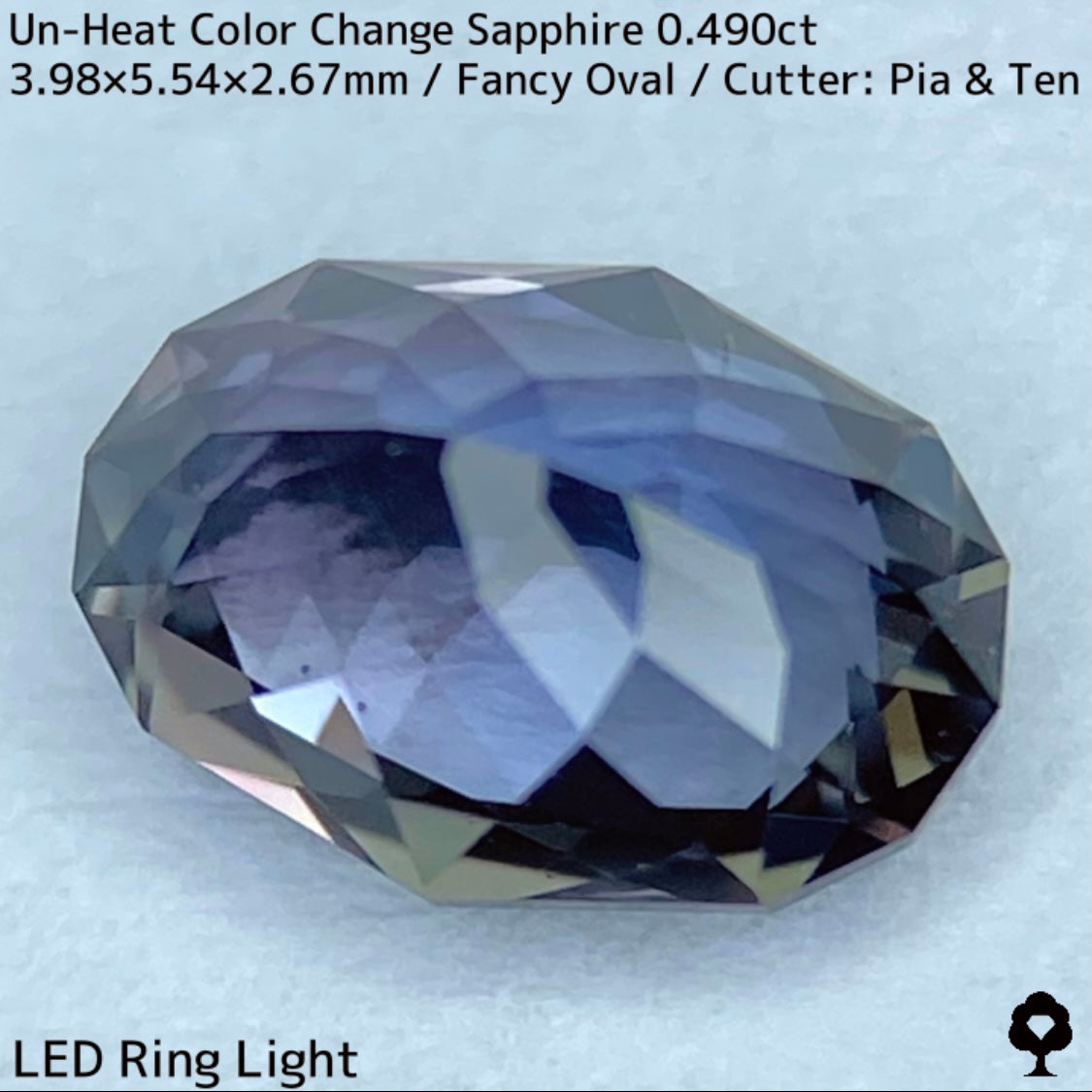【ご当選者さま専用】非加熱カラーチェンジサファイア0.490ct★混ざり合うクールなカラーが光源によって移ろう美結晶