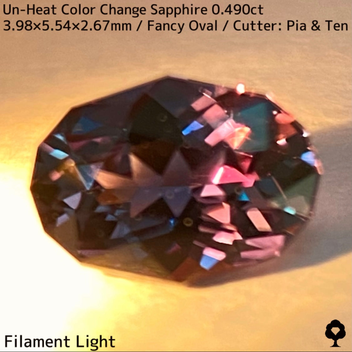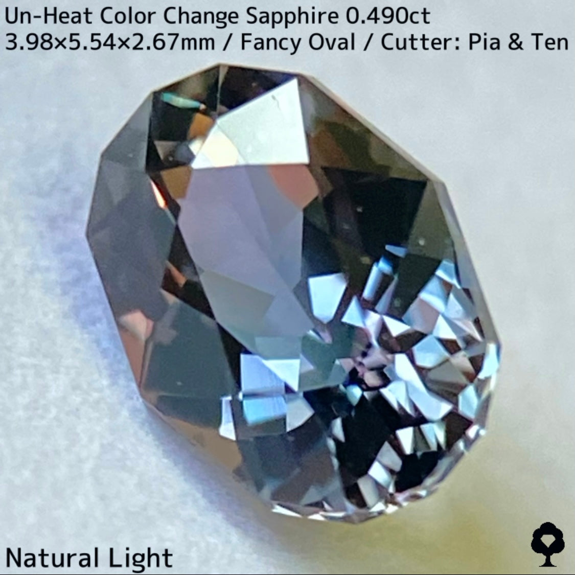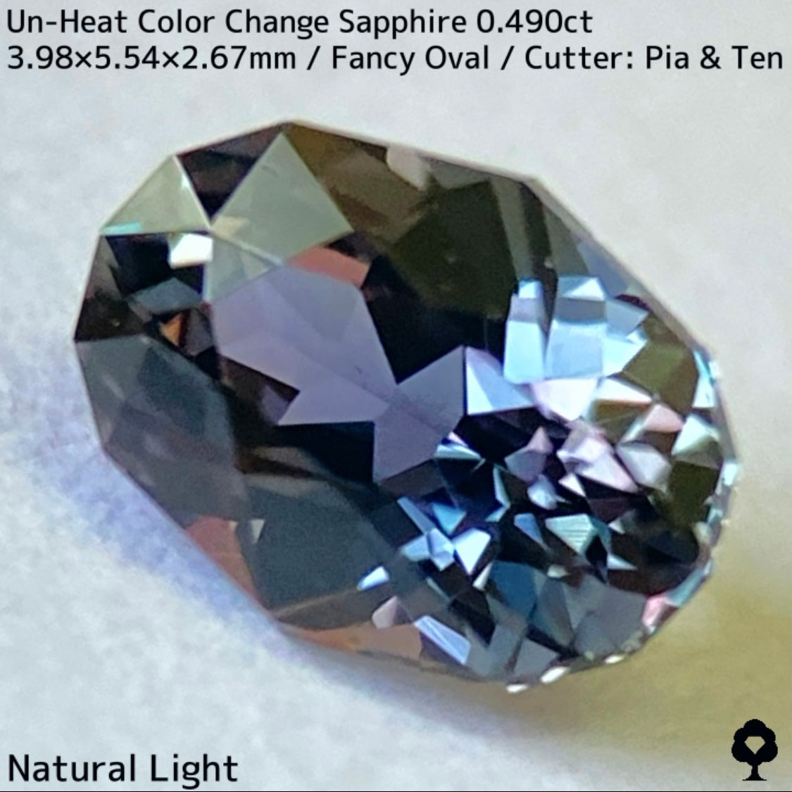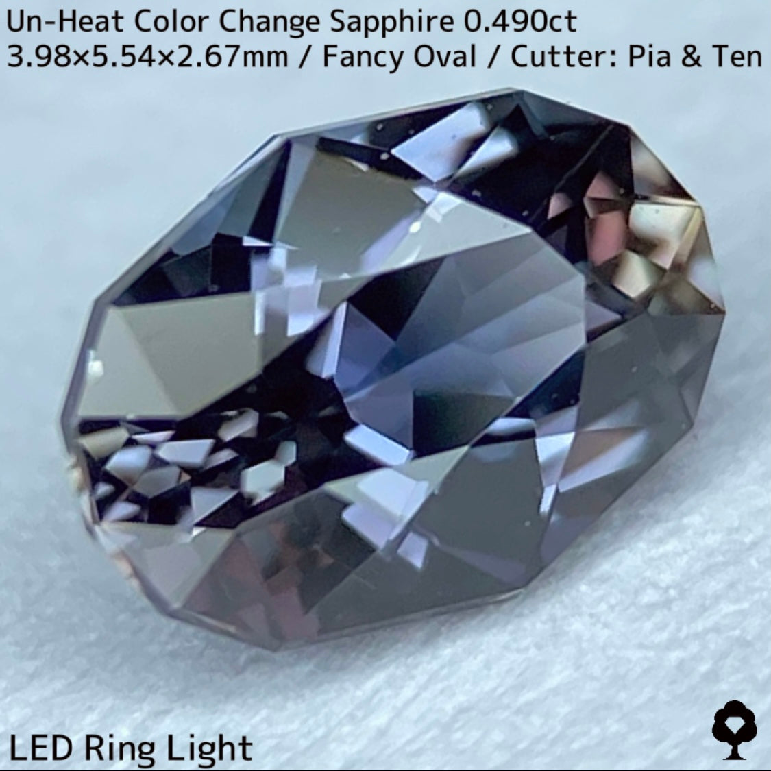 【ご当選者さま専用】非加熱カラーチェンジサファイア0.490ct★混ざり合うクールなカラーが光源によって移ろう美結晶