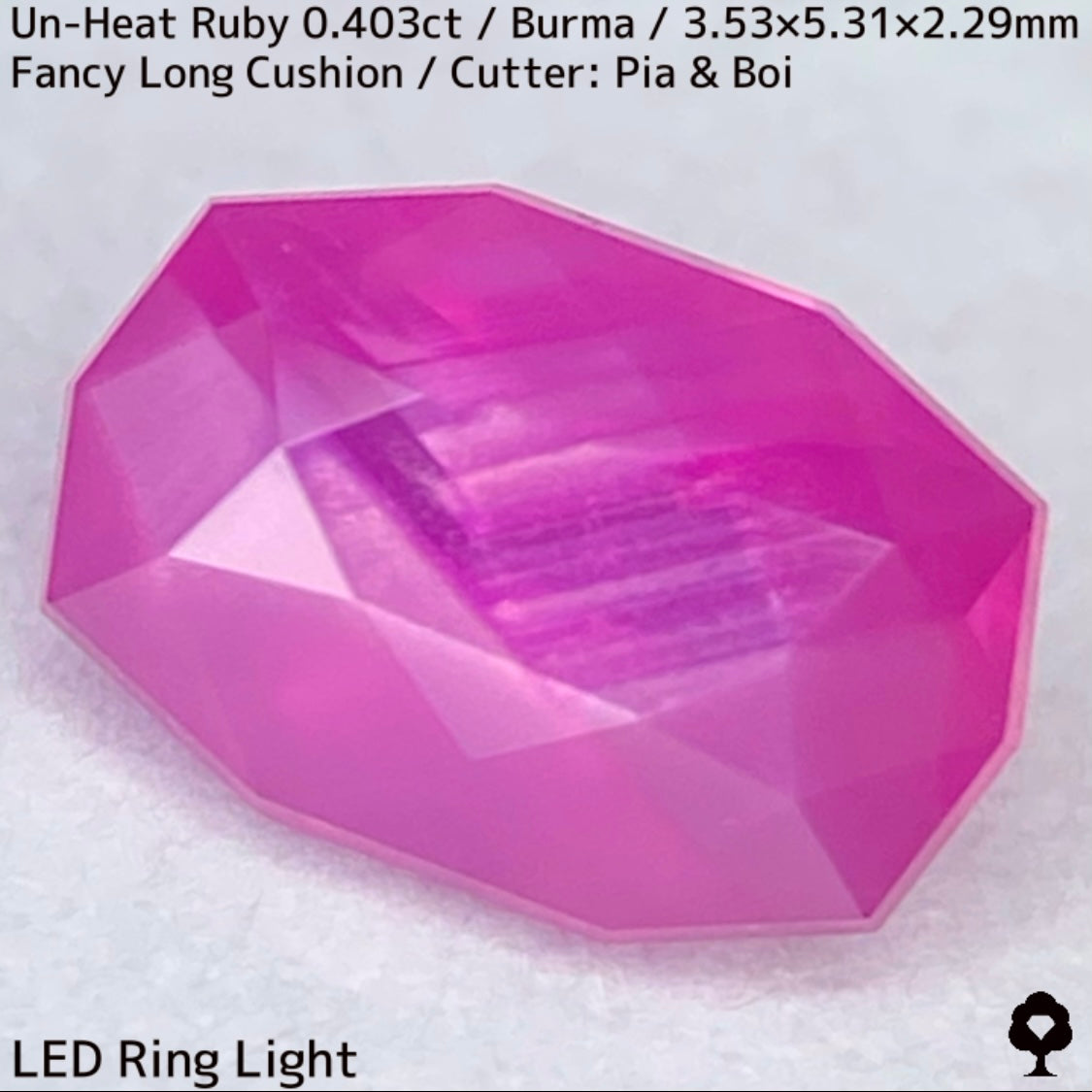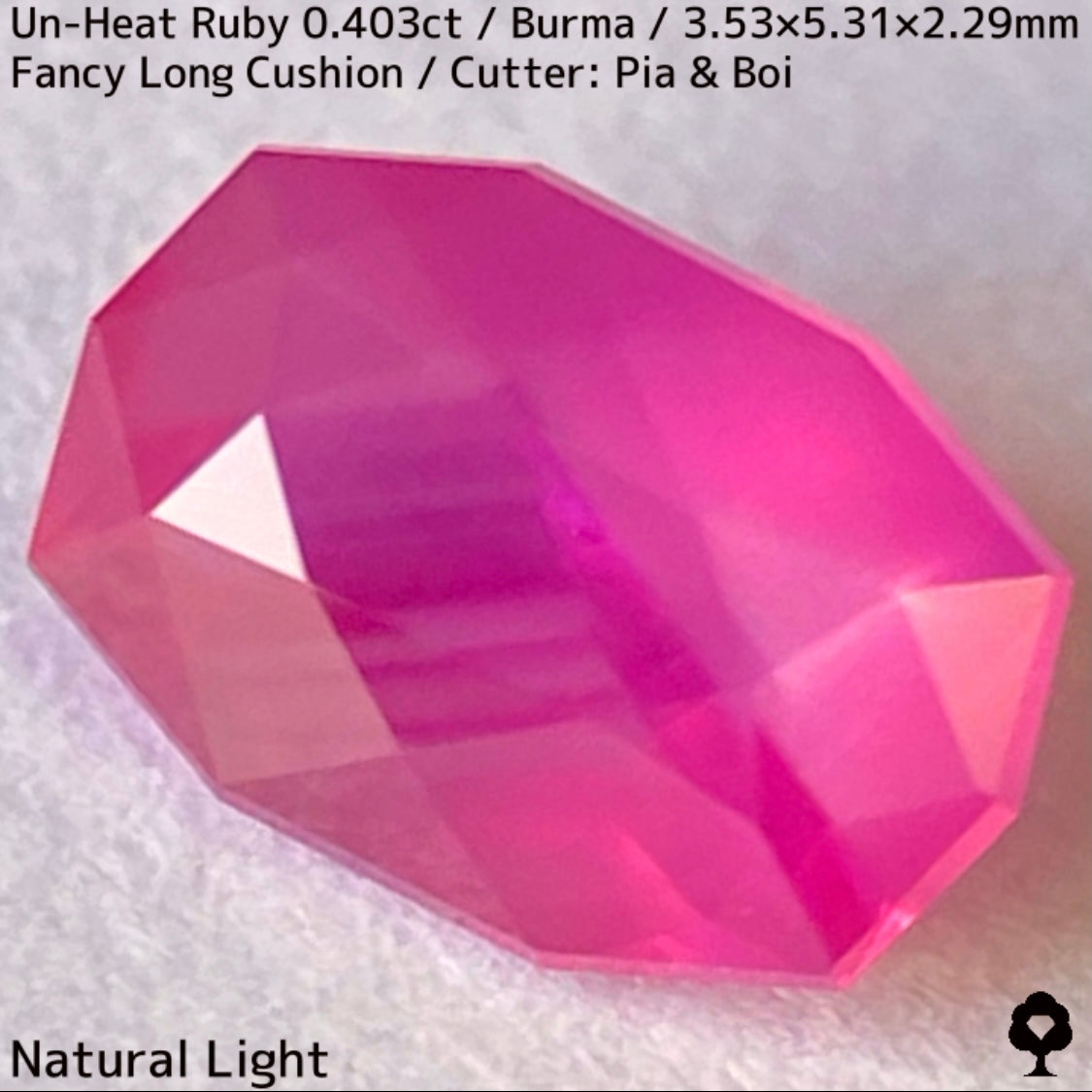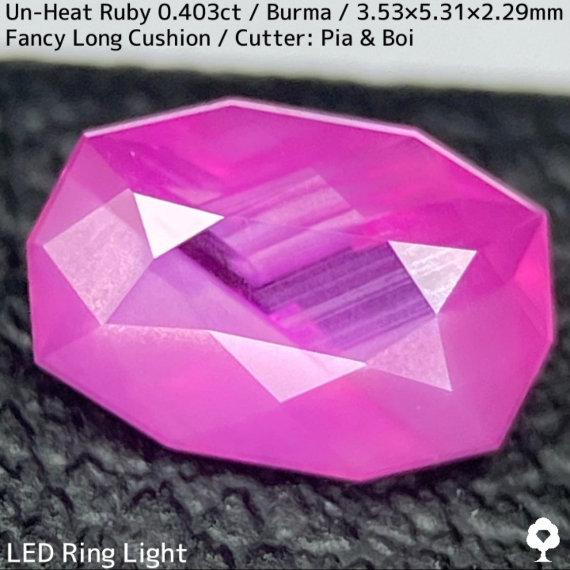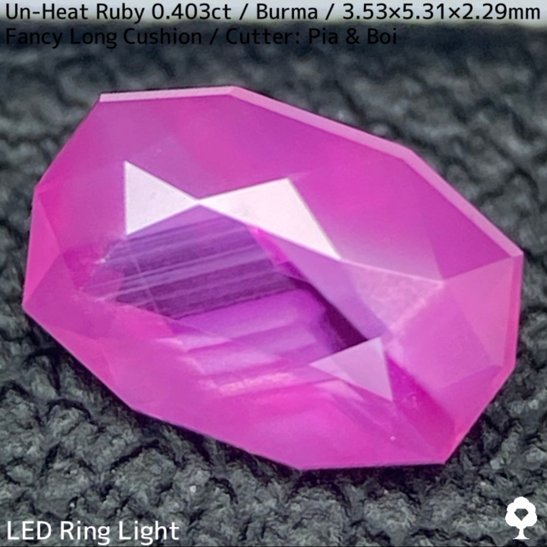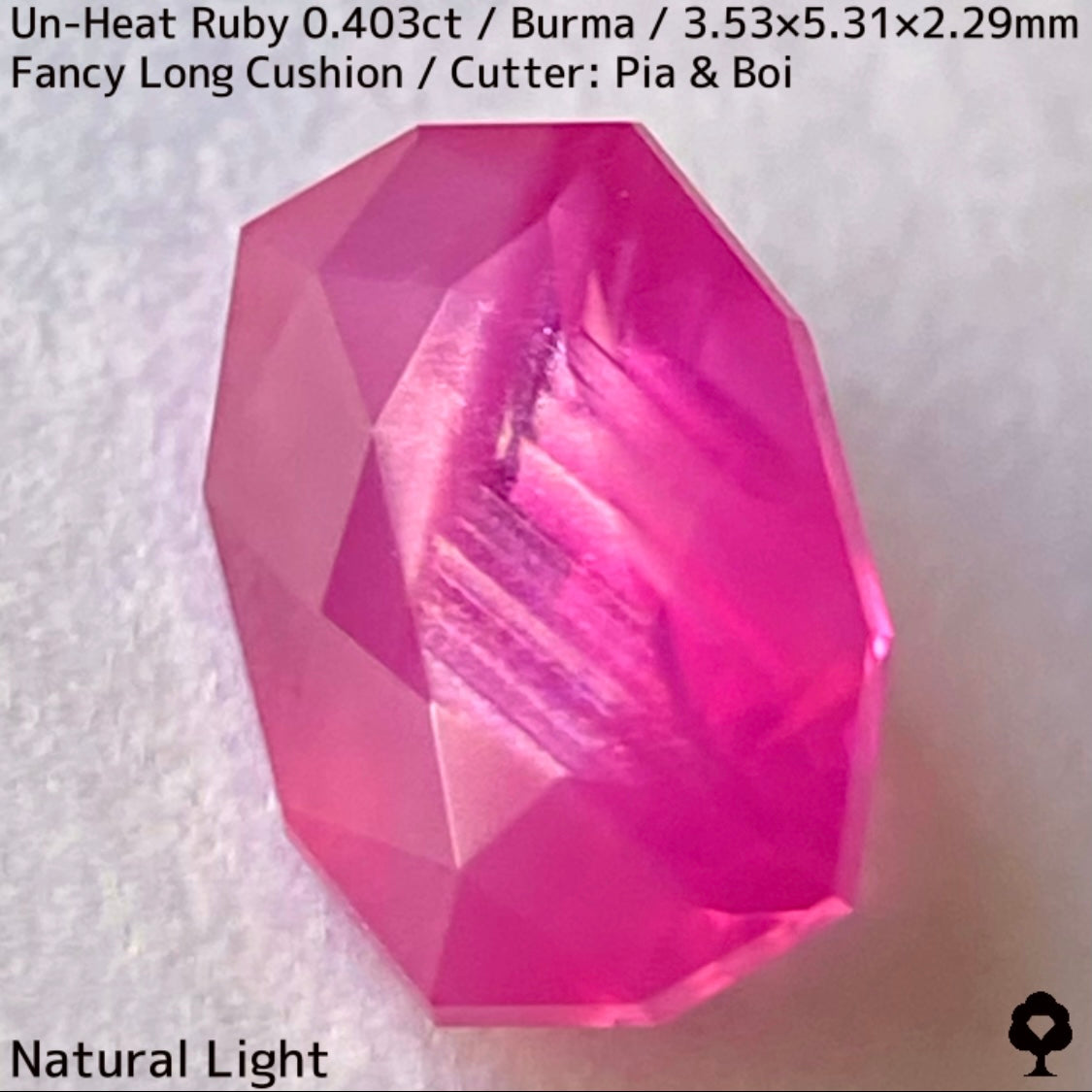ビルマ産非加熱ルビー0.403ct★シルクのラインがテーブルに浮かぶ可愛いシルキーピンクのシャープなシェイプ