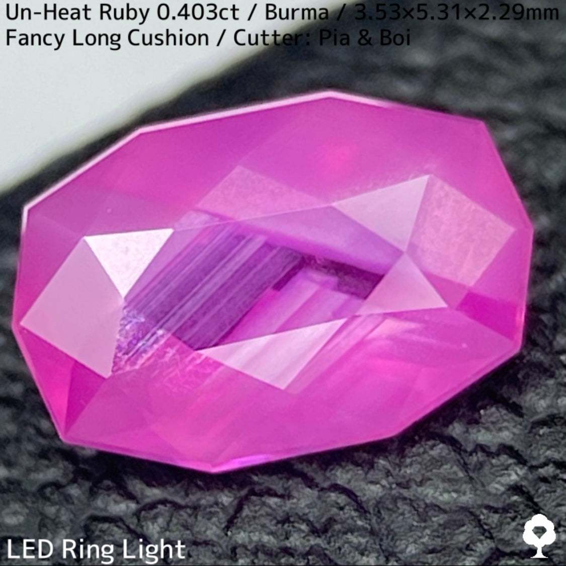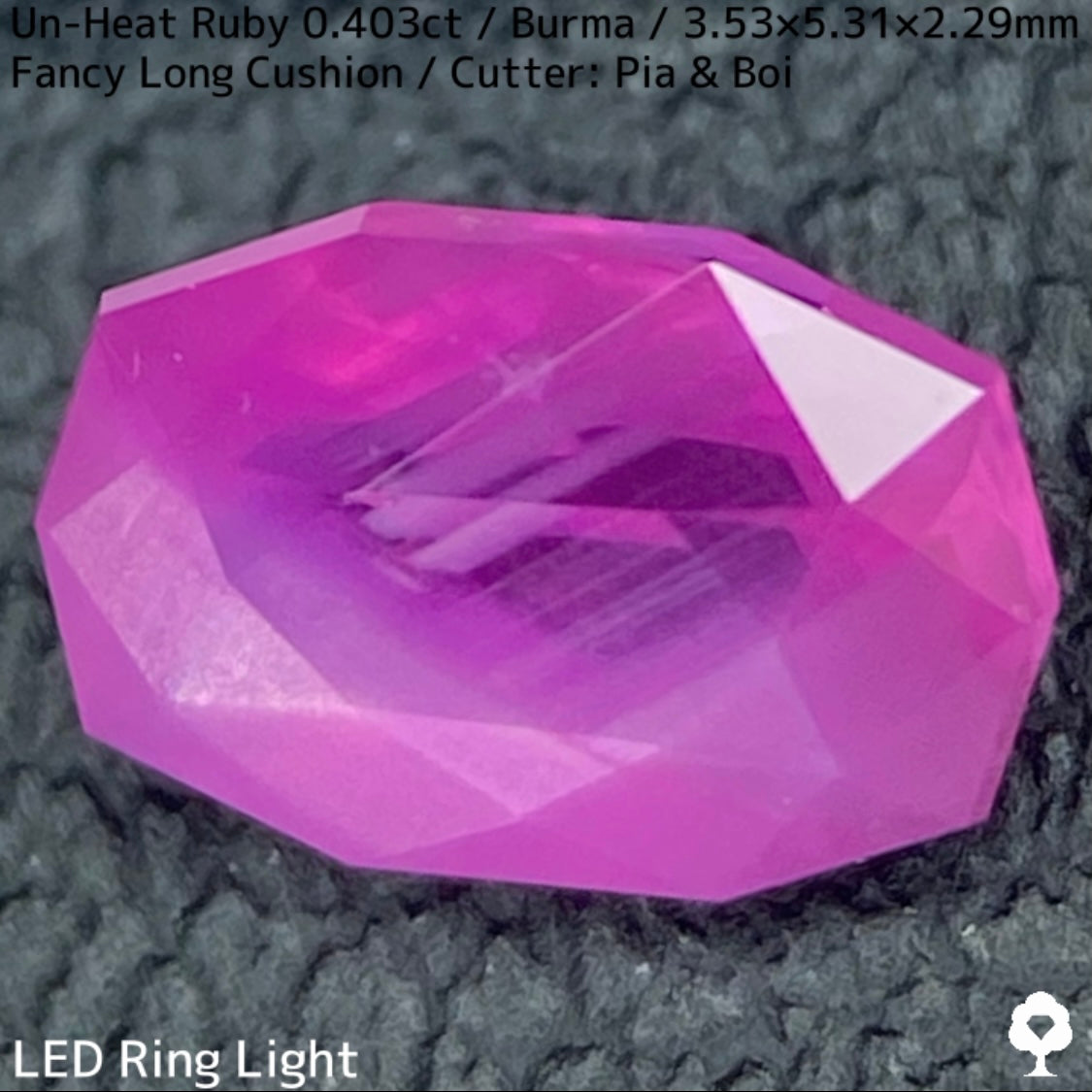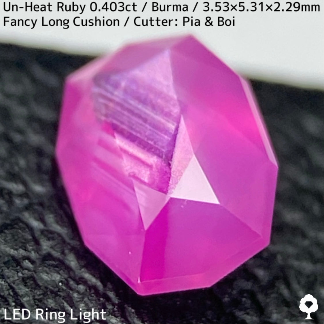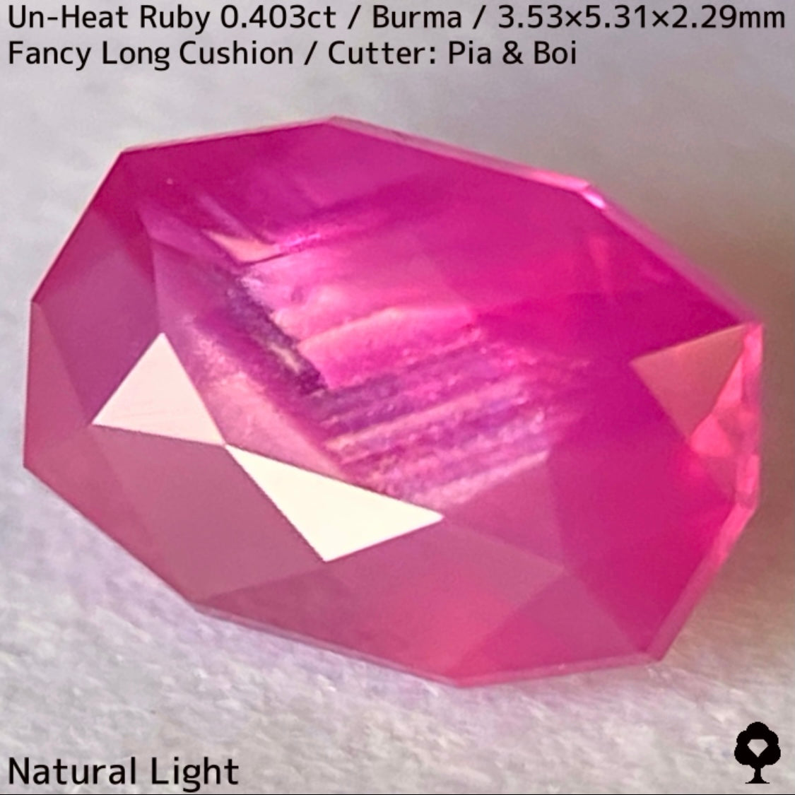 ビルマ産非加熱ルビー0.403ct★シルクのラインがテーブルに浮かぶ可愛いシルキーピンクのシャープなシェイプ
