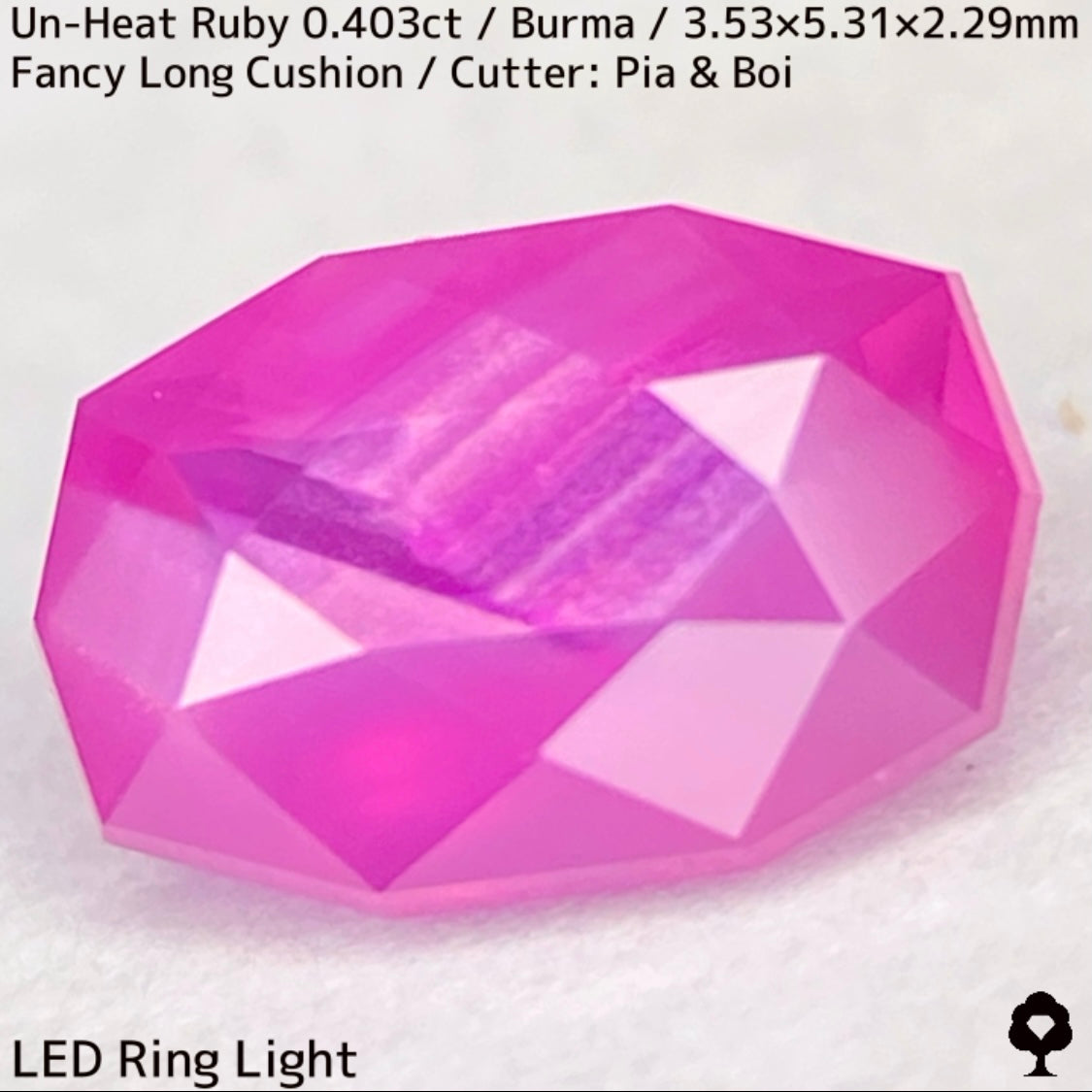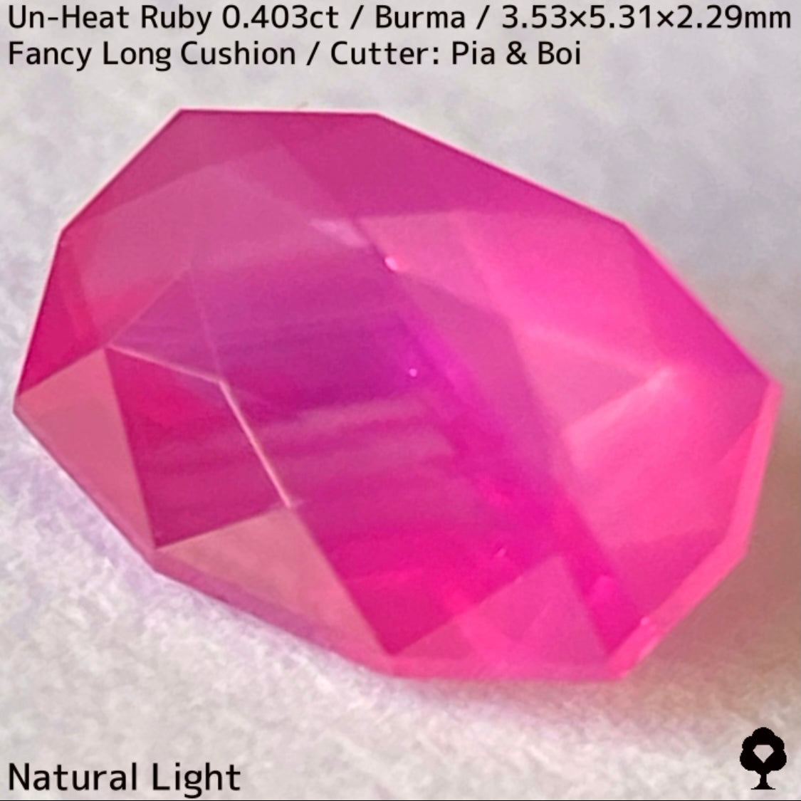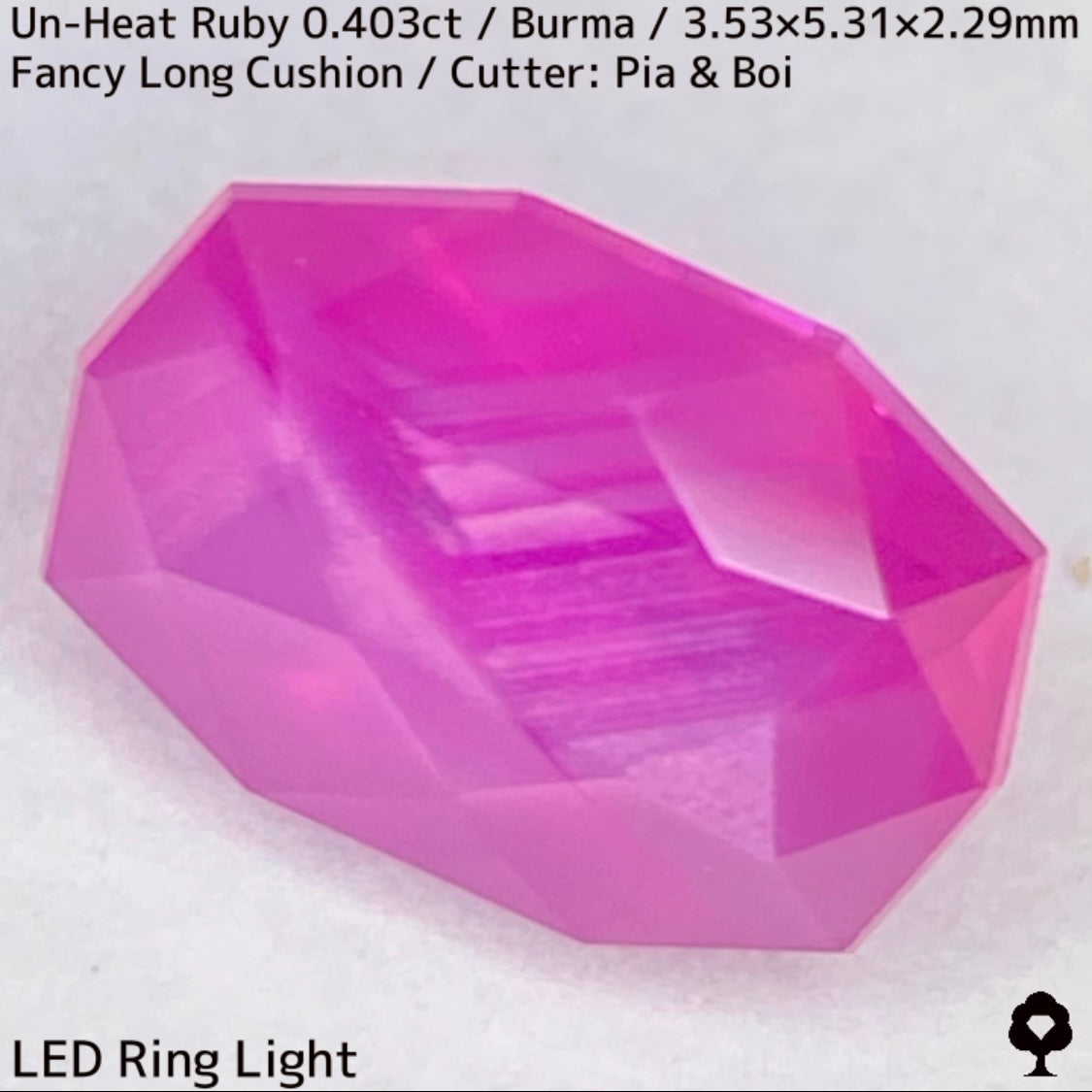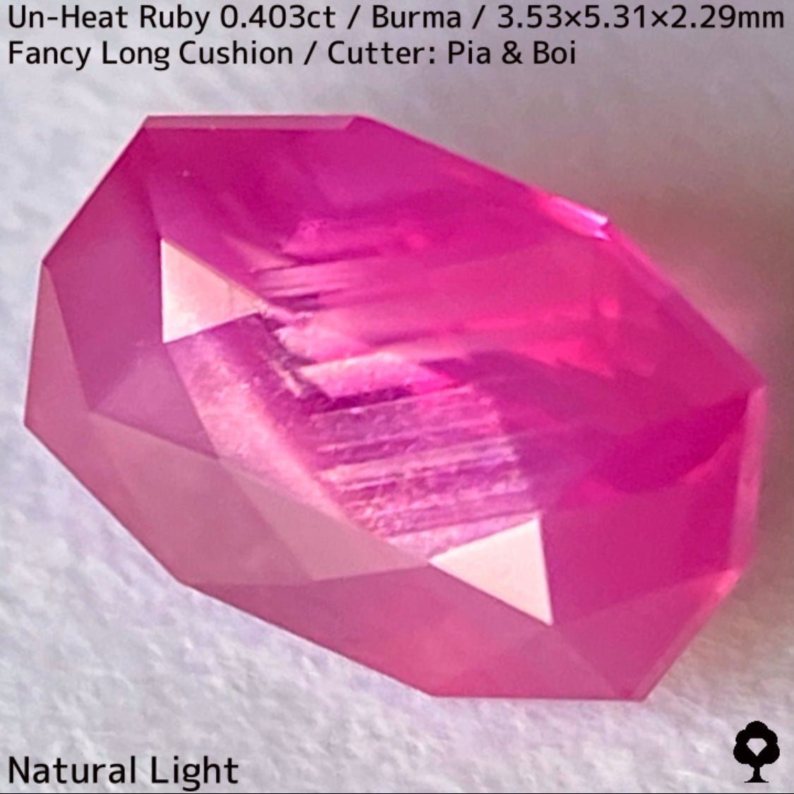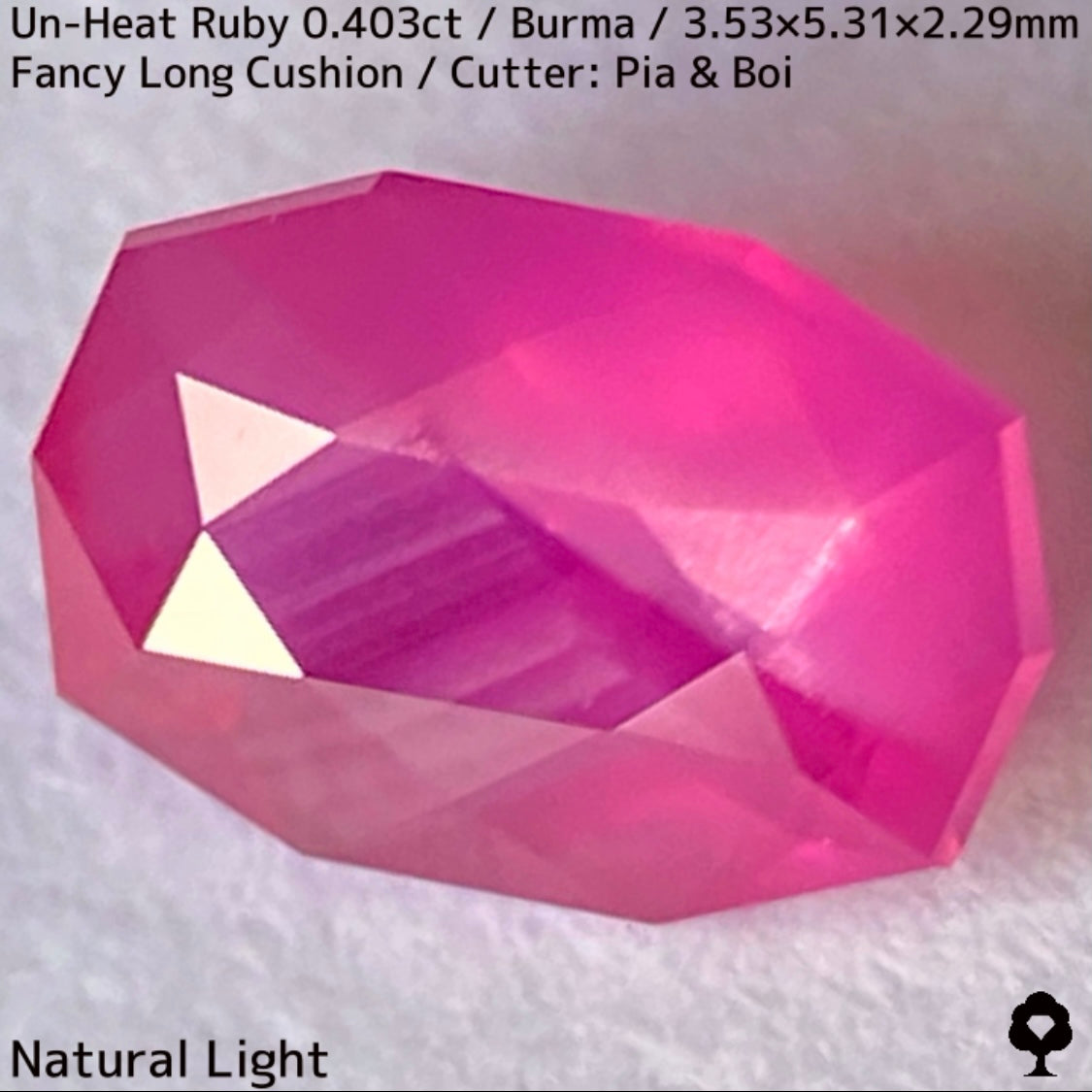 ビルマ産非加熱ルビー0.403ct★シルクのラインがテーブルに浮かぶ可愛いシルキーピンクのシャープなシェイプ