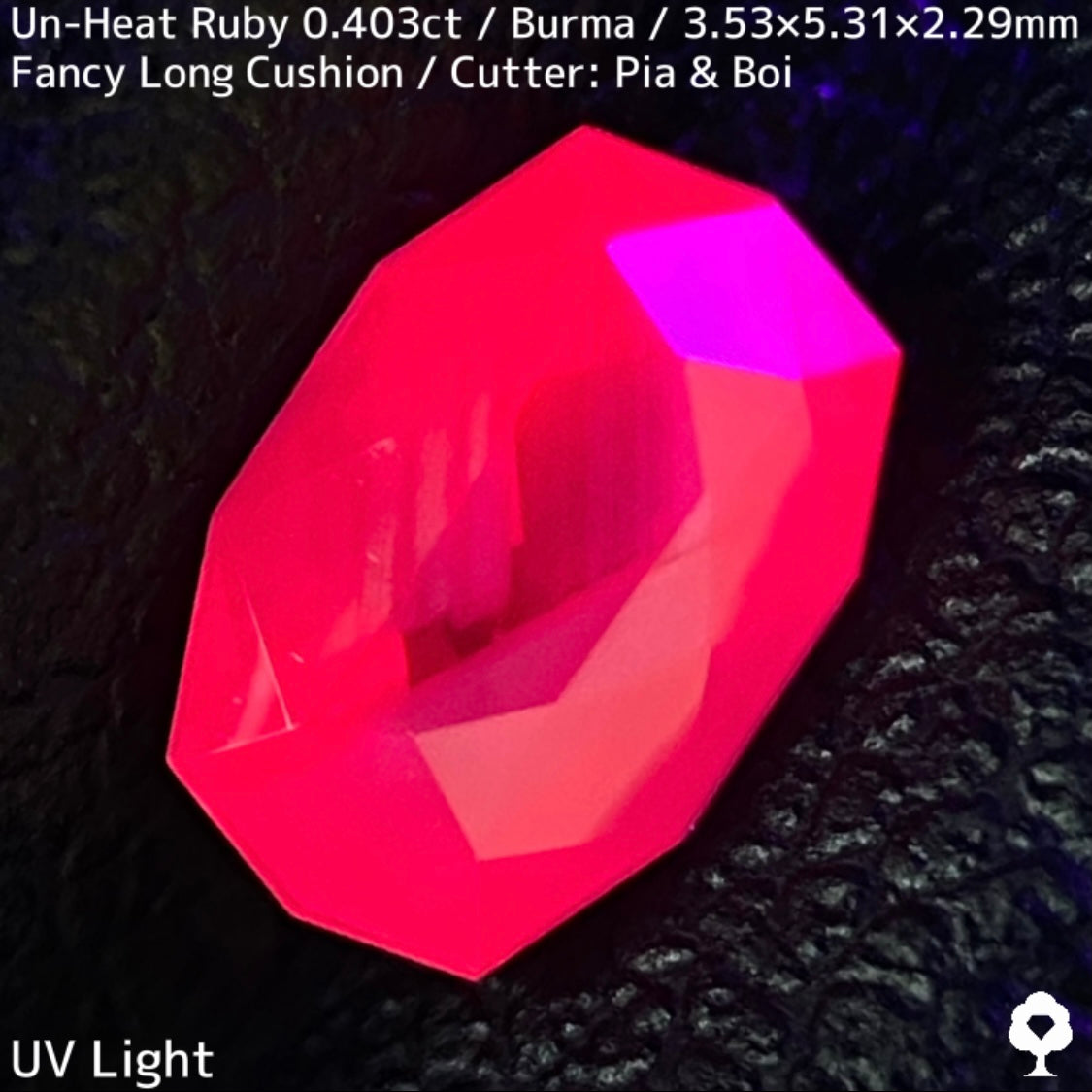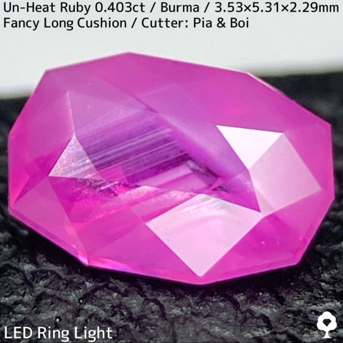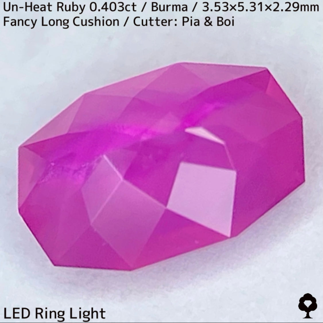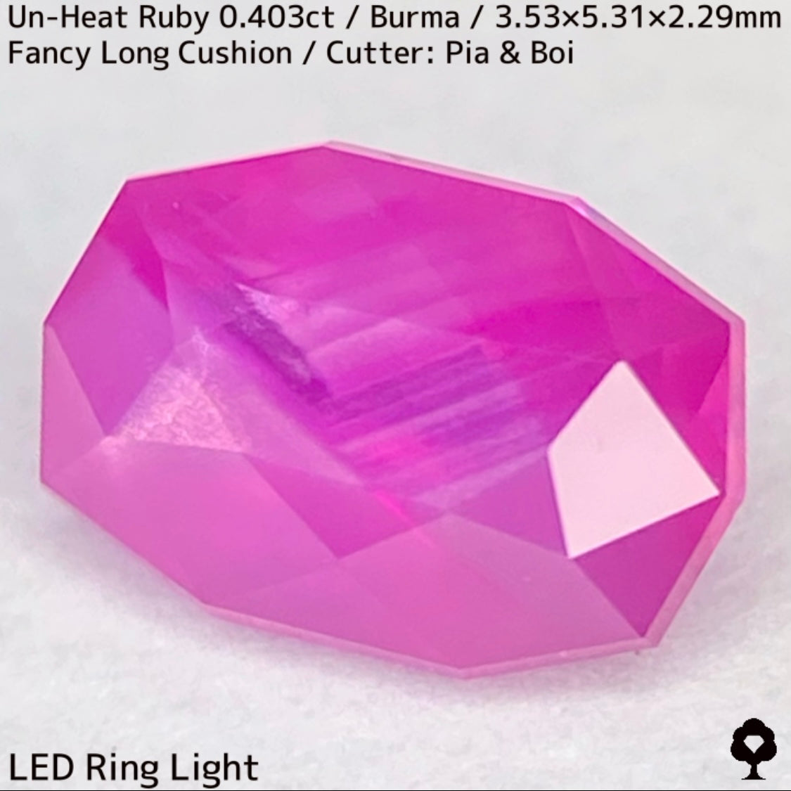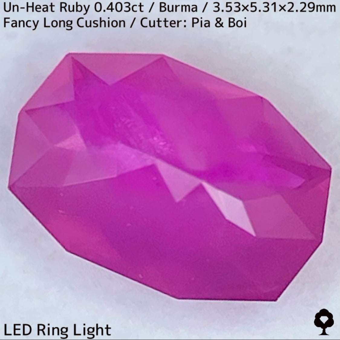 ビルマ産非加熱ルビー0.403ct★シルクのラインがテーブルに浮かぶ可愛いシルキーピンクのシャープなシェイプ