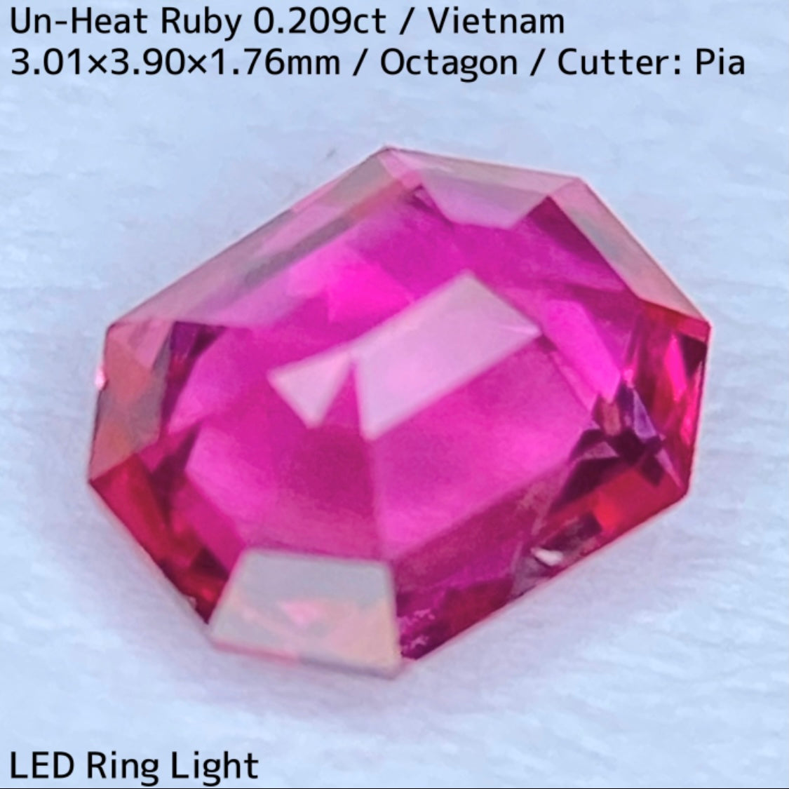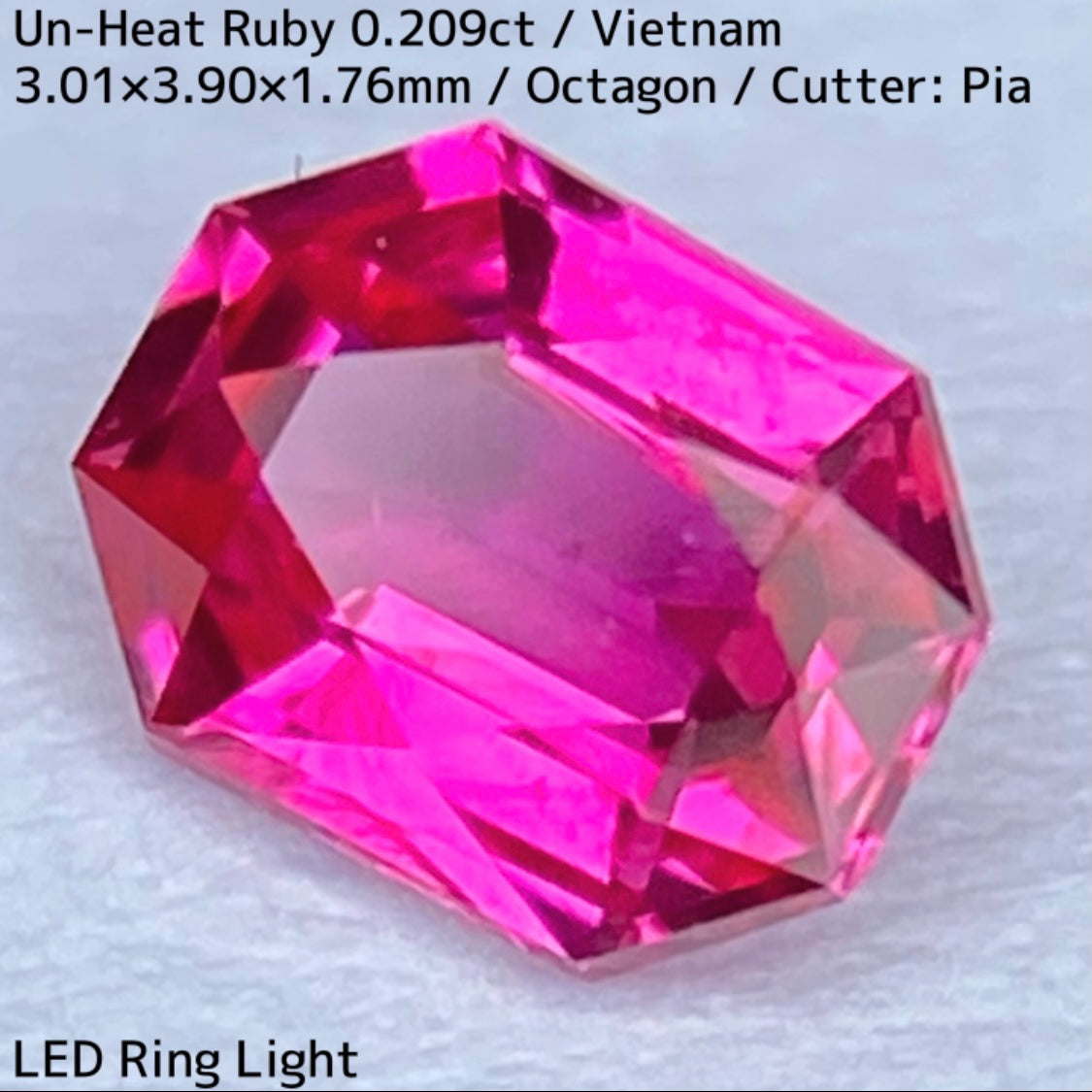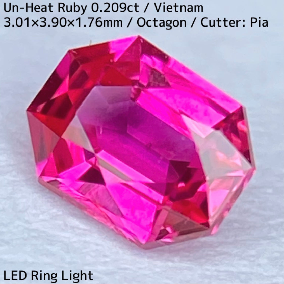 【激安鉱山仕入れ作品プラスワン】ベトナム産非加熱ルビー0.209ct★鮮やかな赤い地色から強いネオンピンクの煌めきが強すぎる