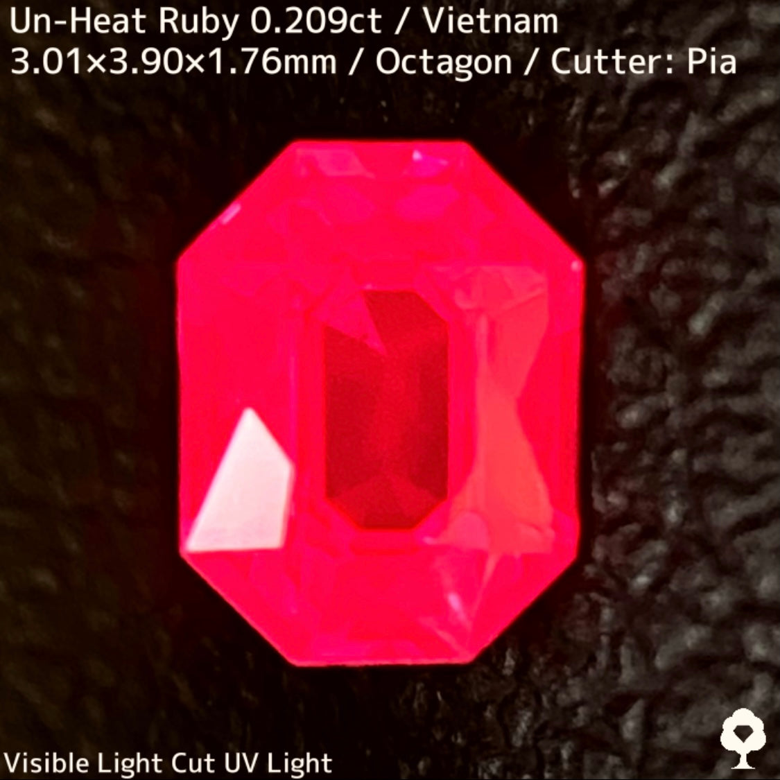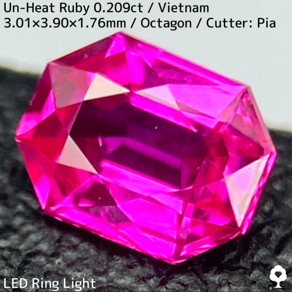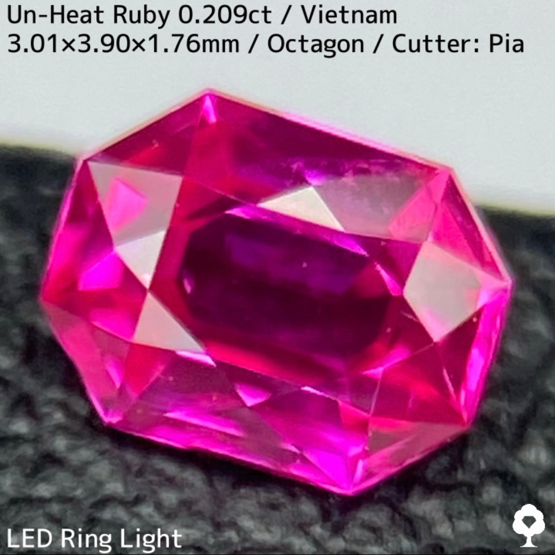 【激安鉱山仕入れ作品プラスワン】ベトナム産非加熱ルビー0.209ct★鮮やかな赤い地色から強いネオンピンクの煌めきが強すぎる