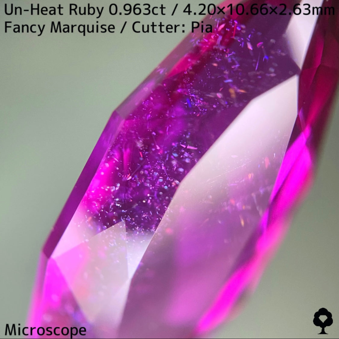 明るく華やかなピンクの煌めきが美しい地色にパープルとレッドが混ざり合う、虹色のインクルージョンがたくさん含まれたモザンビーク産の非加熱ルビーです。