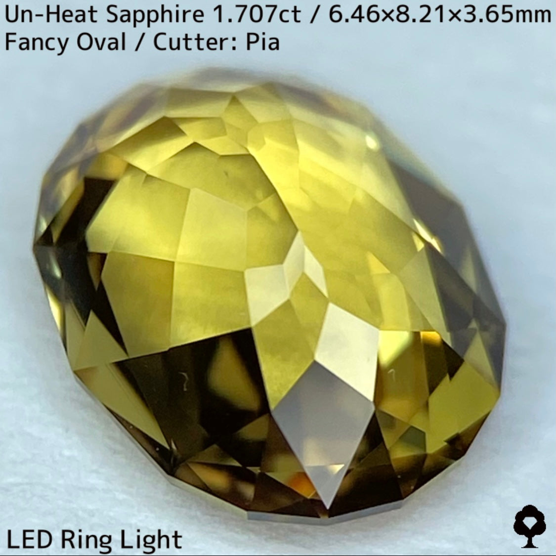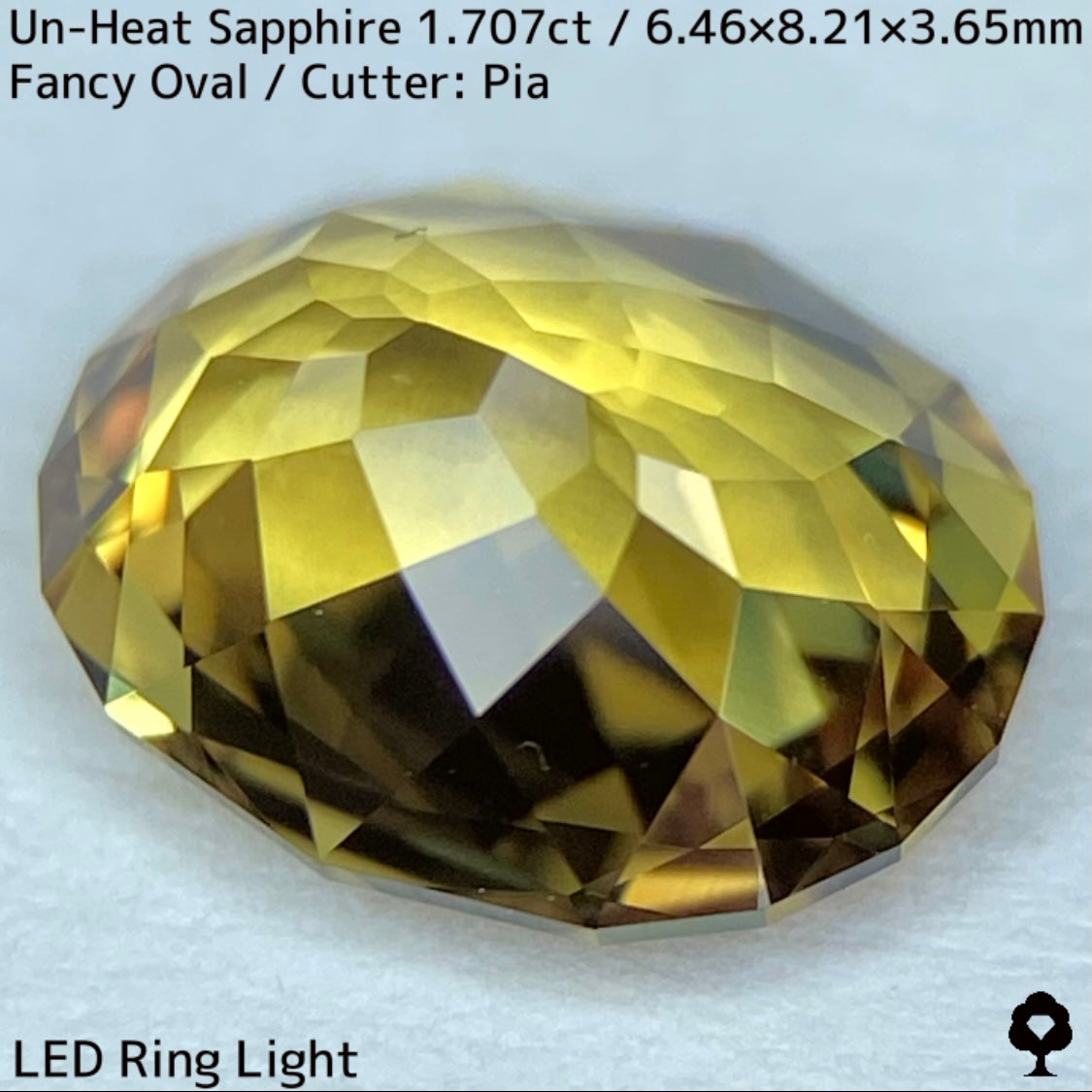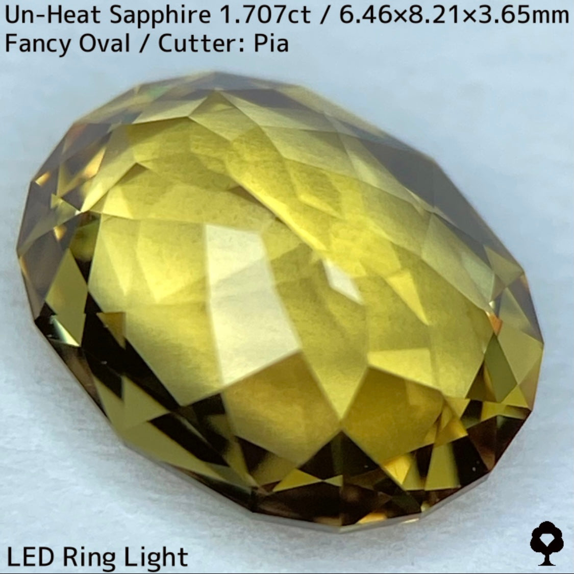抜群のカットとツヤによってカラフルなファイアーもチラつき、深みのあるゴールドに彩りを添えています。
