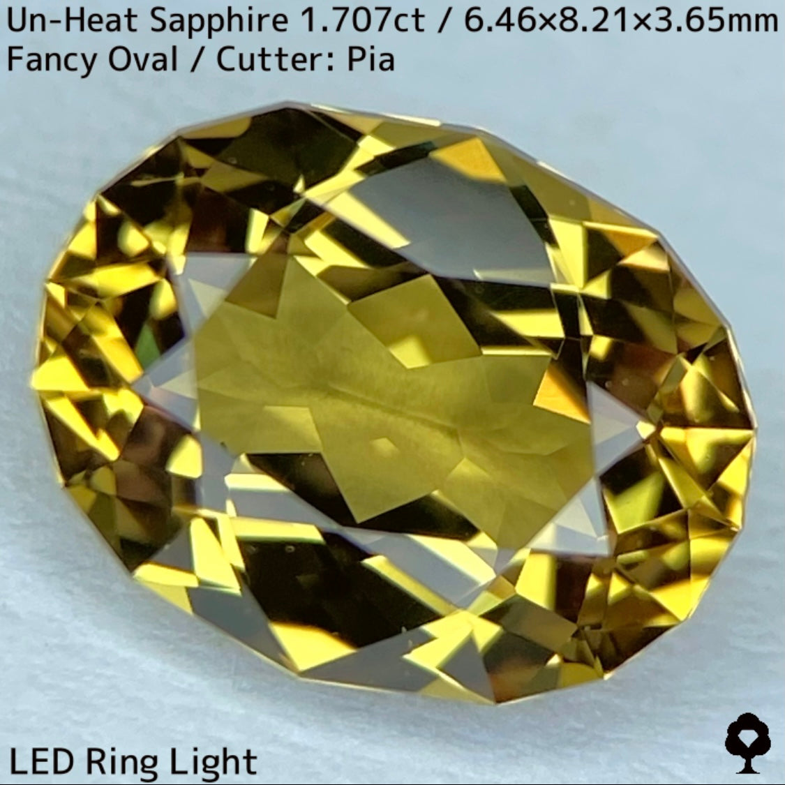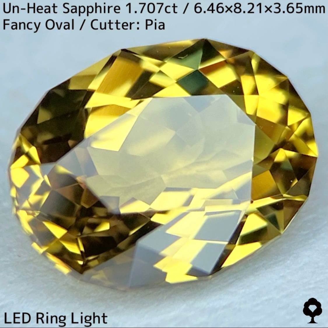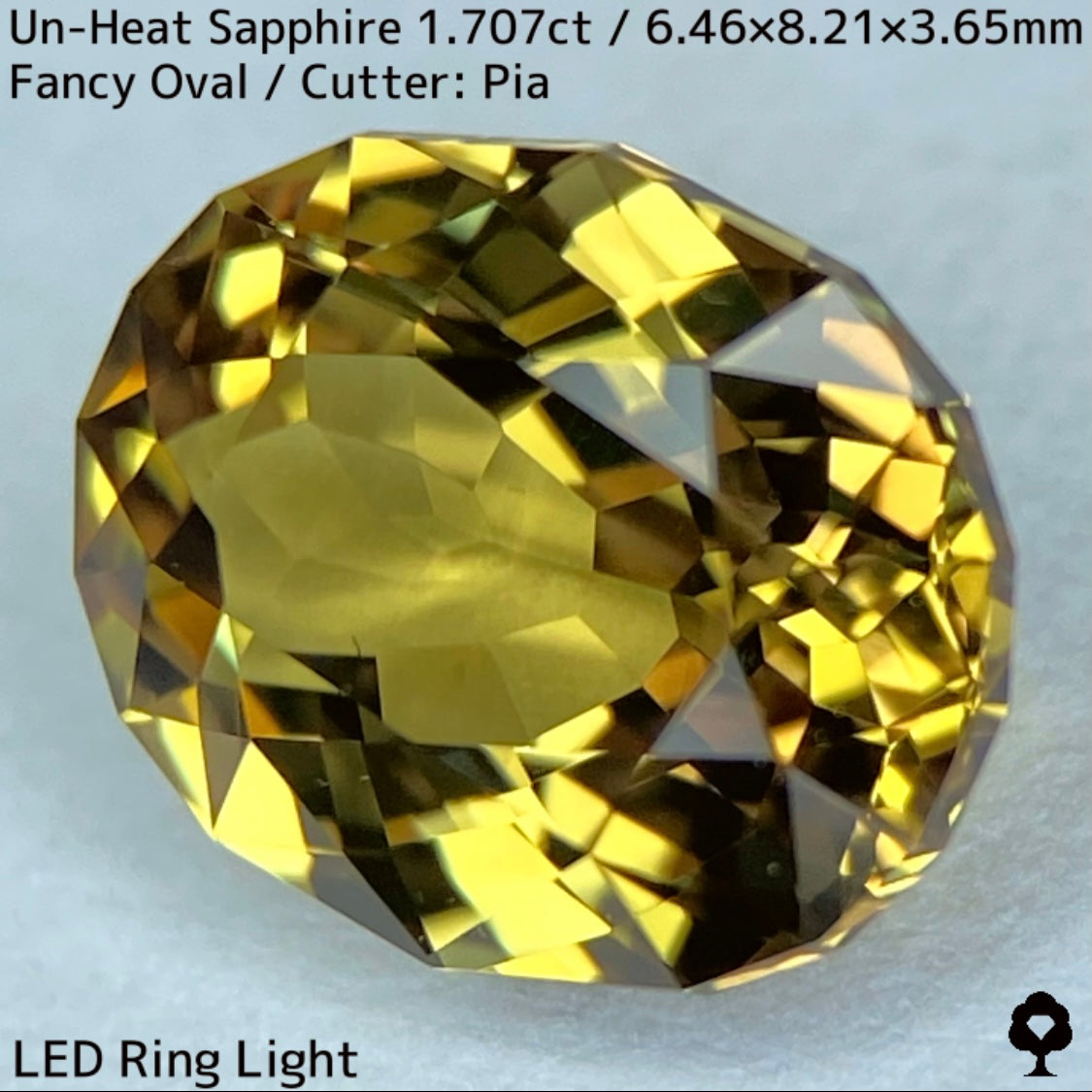 抜群のカットとツヤによってカラフルなファイアーもチラつき、深みのあるゴールドに彩りを添えています。