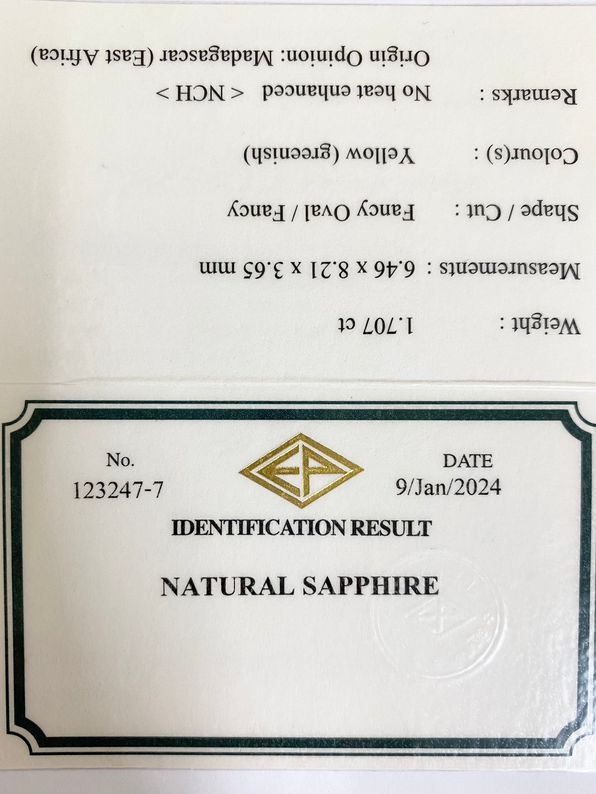 マダガスカル産非加熱サファイア1.707ct★ほんのりグリニッシュなゴールドはシックでゴージャスな煌めき