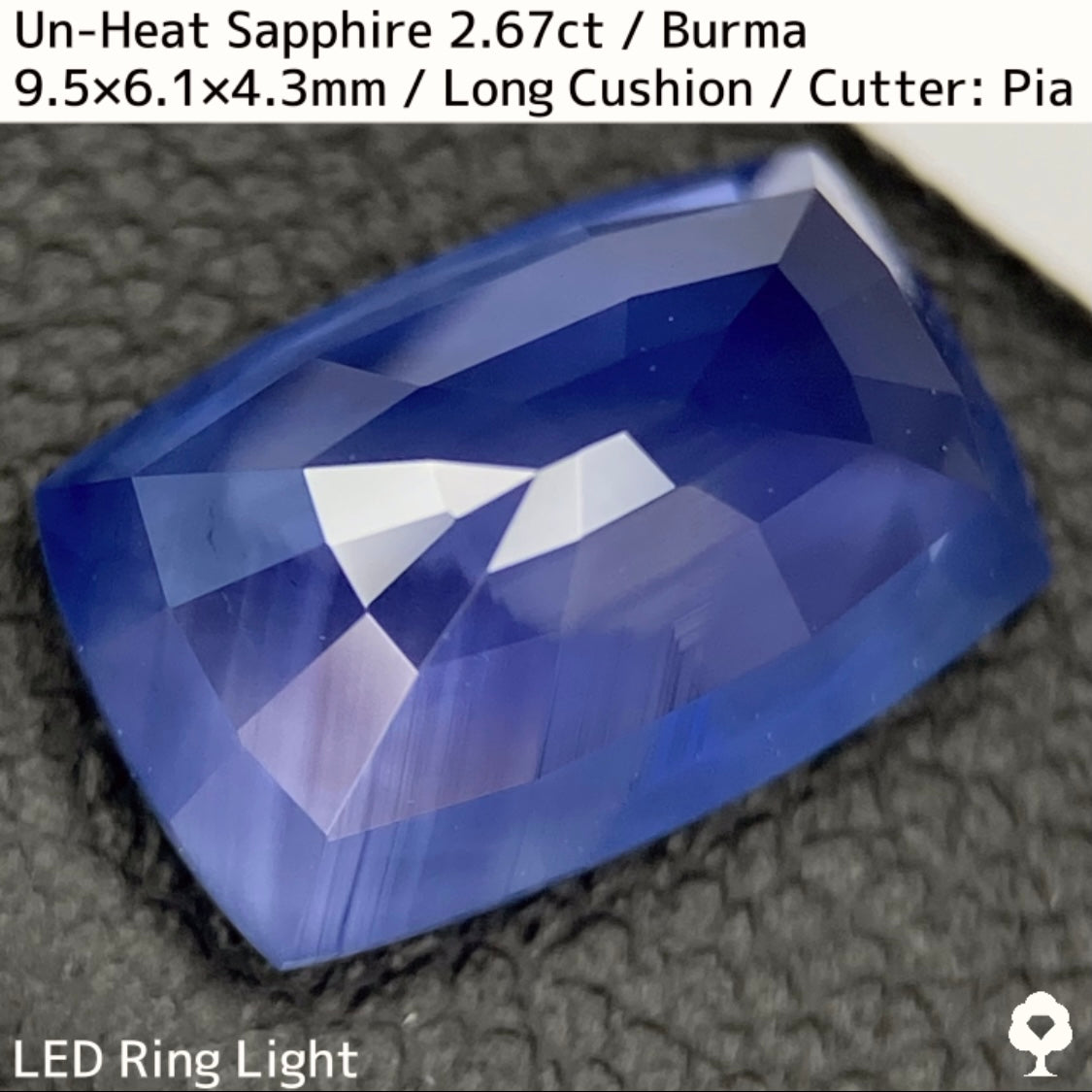 ビルマ産非加熱サファイア2.675ct★シルクの層がたっぷりと入った非加熱ならではの面白さと美しさを持った一石