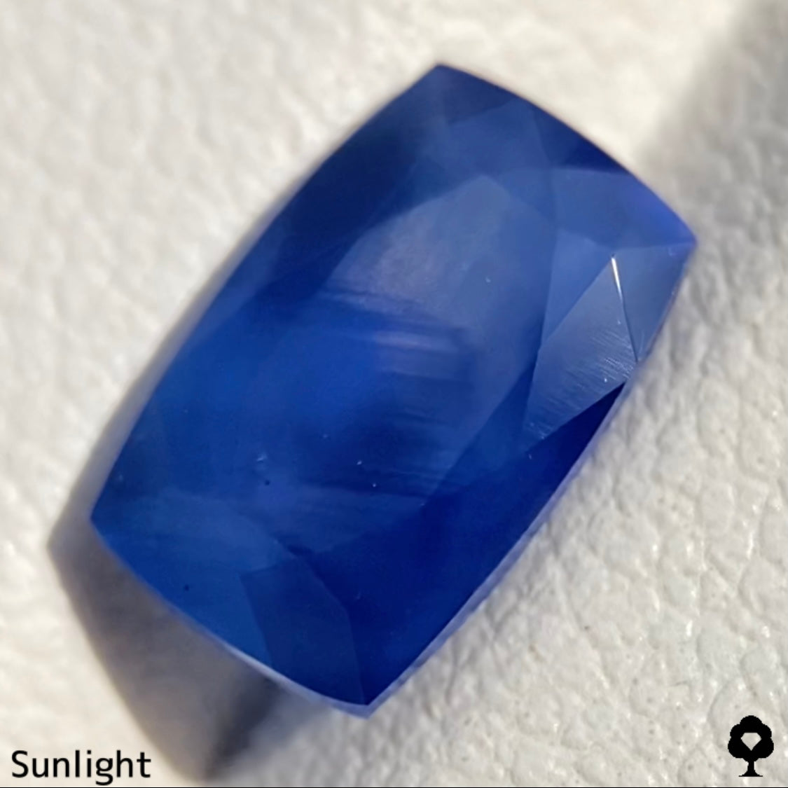 プリフォーム原石から仕上げたビルマ産の非加熱サファイアで、コーンフラワー系統のパープルを含んだブルーの結晶に、シルクインクルージョンの層がふんだんに入った一石です。
