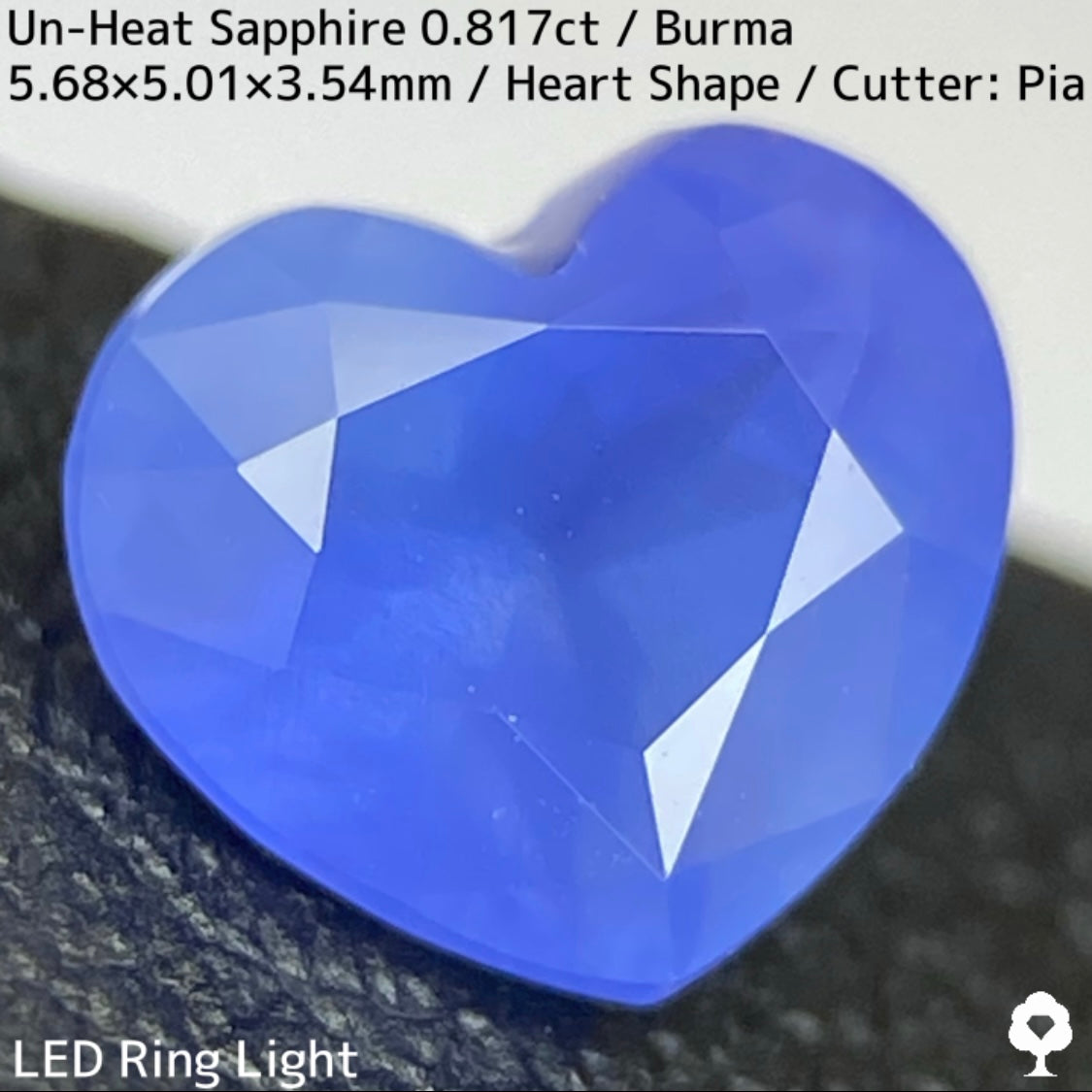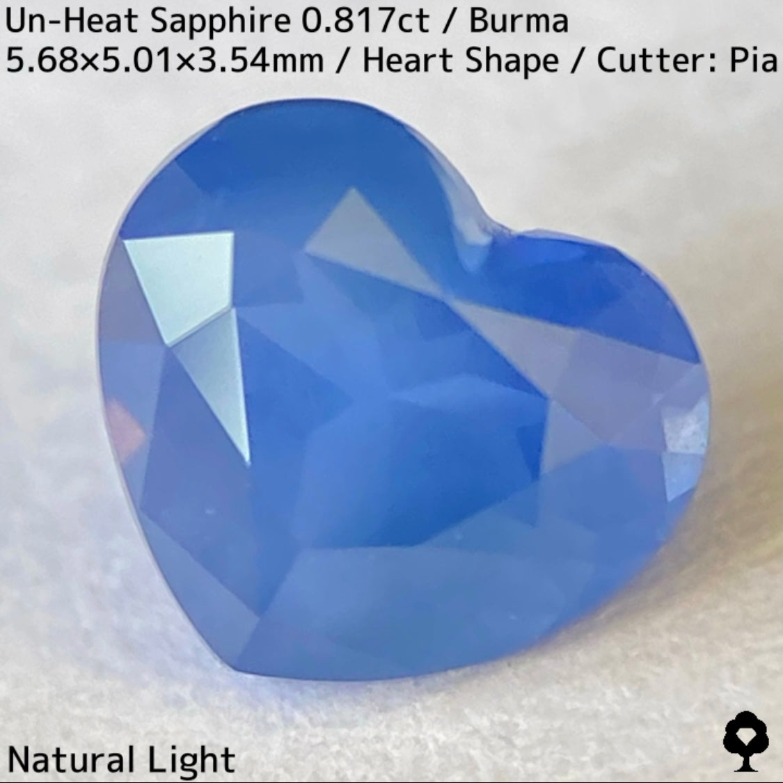 ビルマ産非加熱サファイア0.817ct★可愛すぎるシルキーブルーハートシェイプ