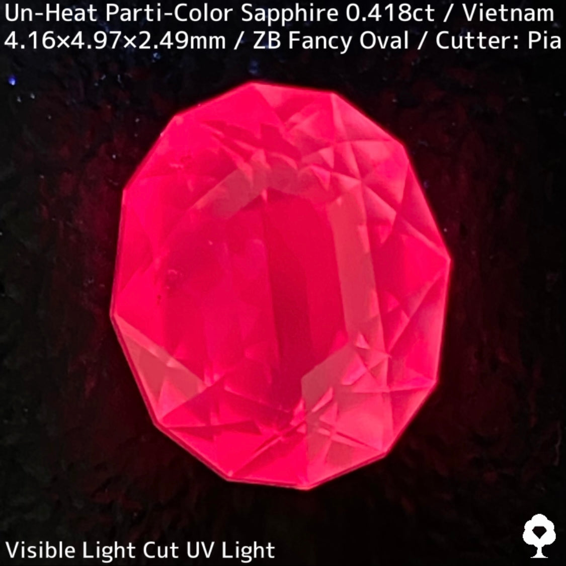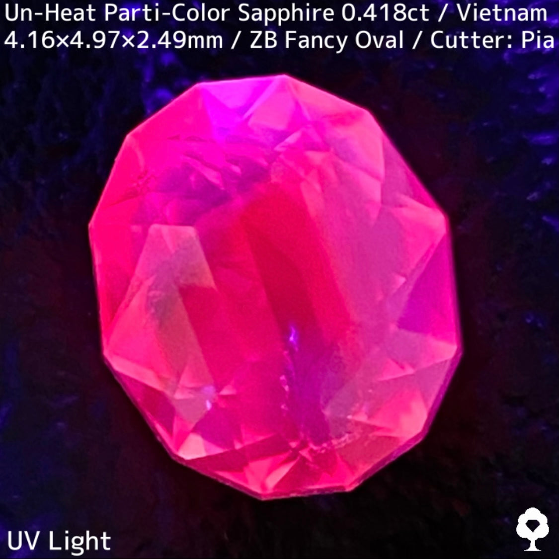 【3/6(水)21:20オークション終了★半額スタート】ベトナム産非加熱パーティカラーサファイア0.418ct★桜ピンクに染みるシルキーブルーが面白くて可愛い