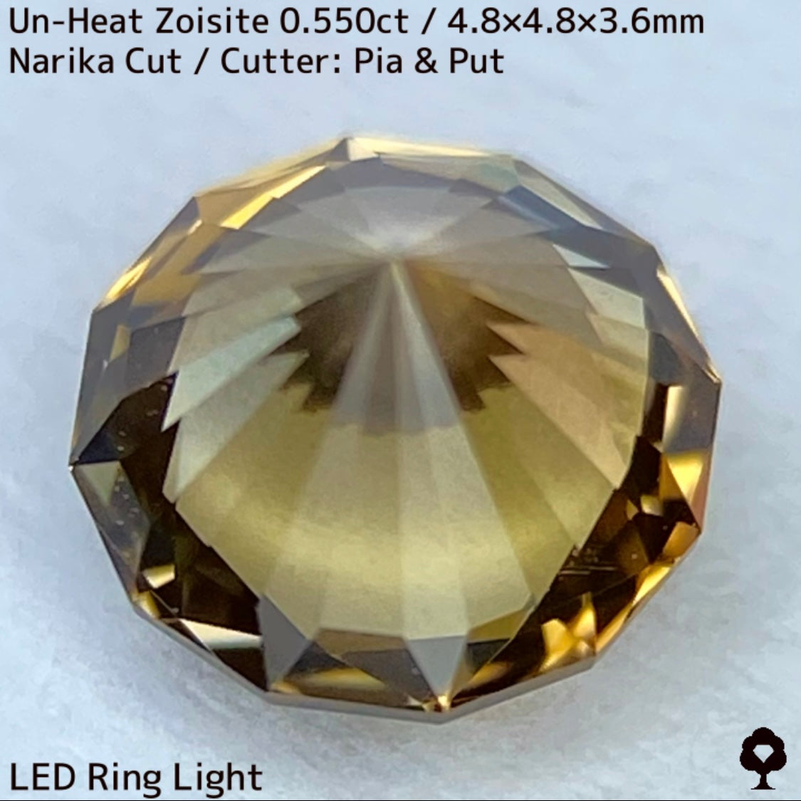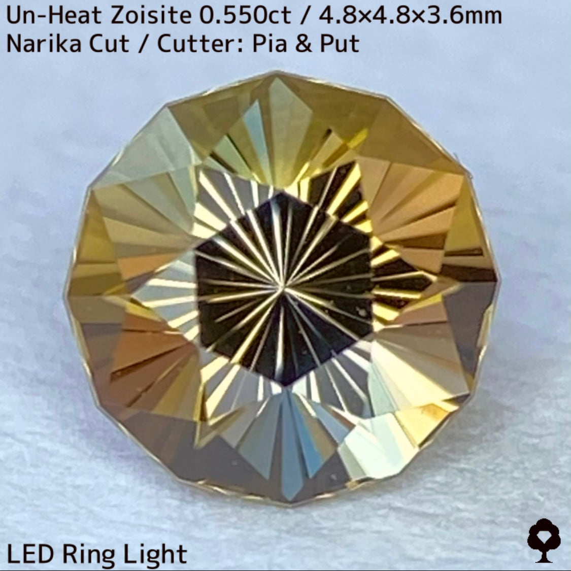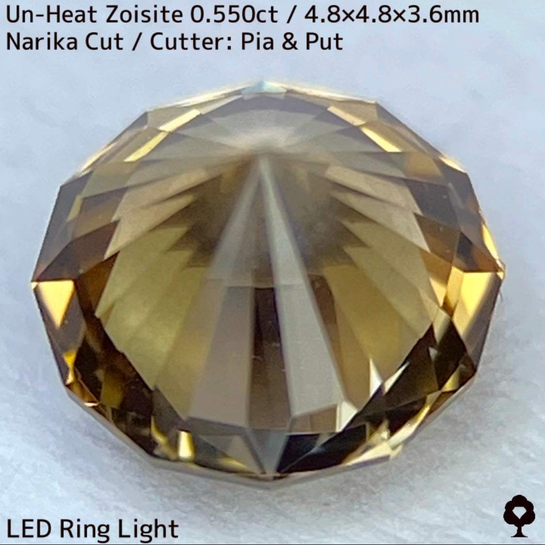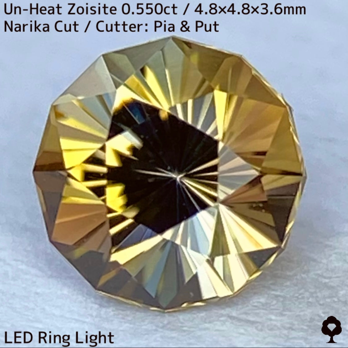 【ご当選者さま専用】非加熱ゾイサイト0.550ct★レアカラーゴールドに感じる多色性がナリカーカットによって鋭く際立つ逸品