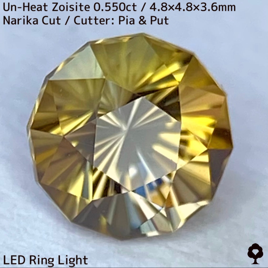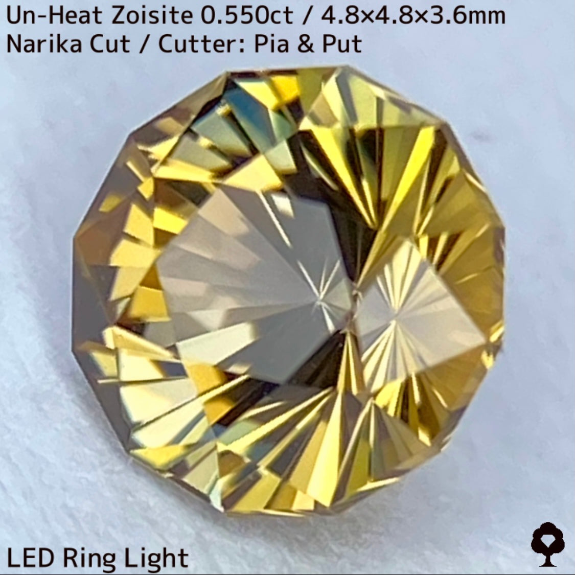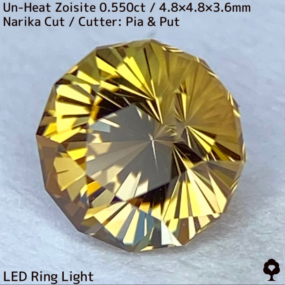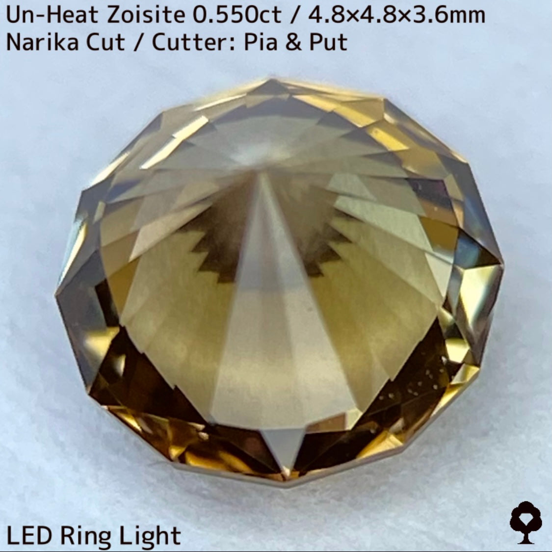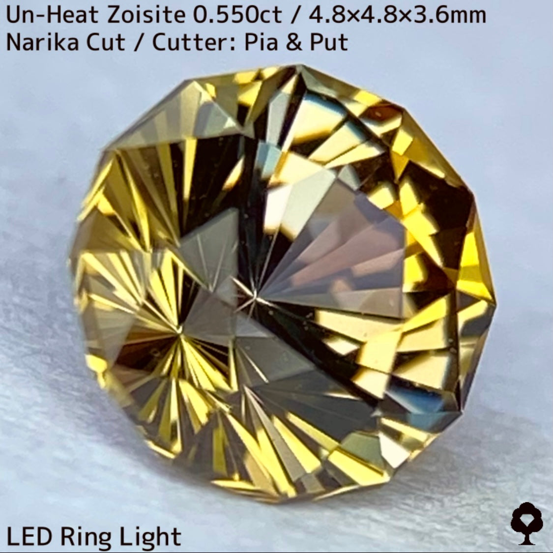 【ご当選者さま専用】非加熱ゾイサイト0.550ct★レアカラーゴールドに感じる多色性がナリカーカットによって鋭く際立つ逸品