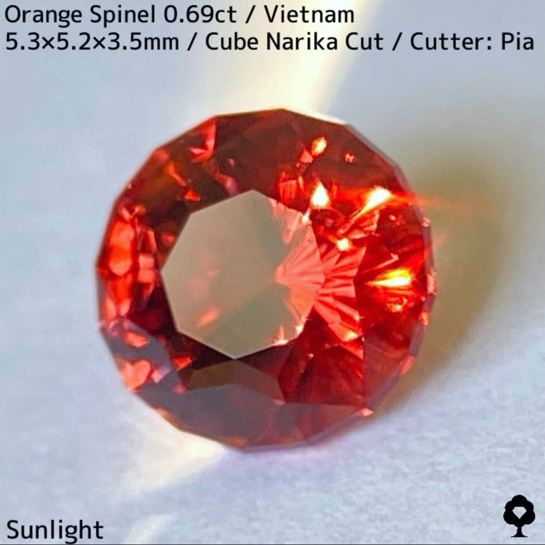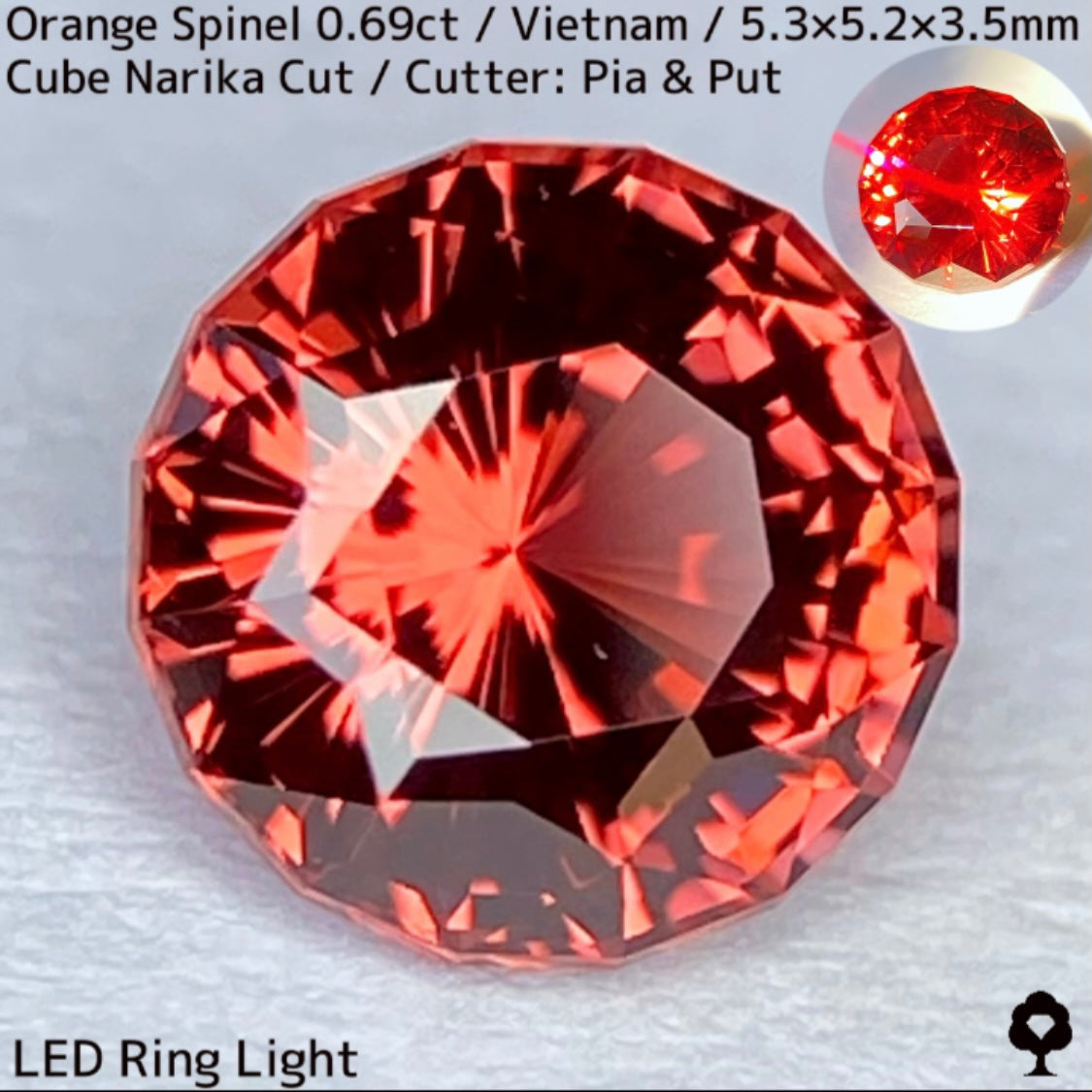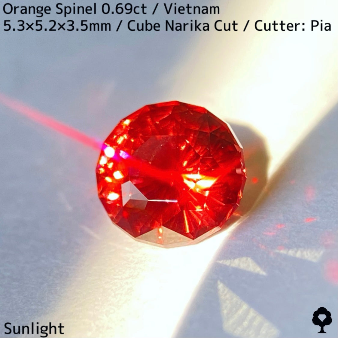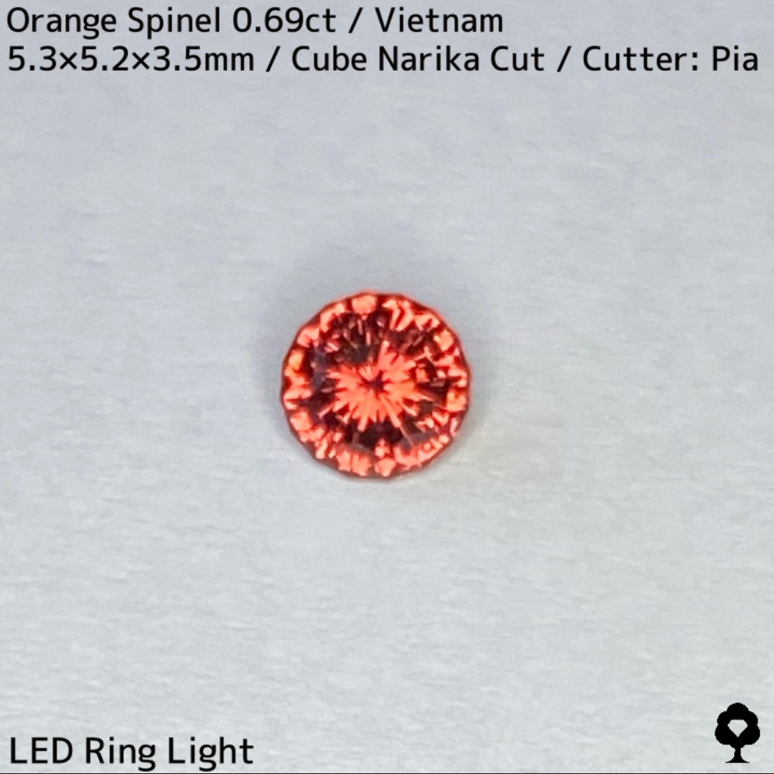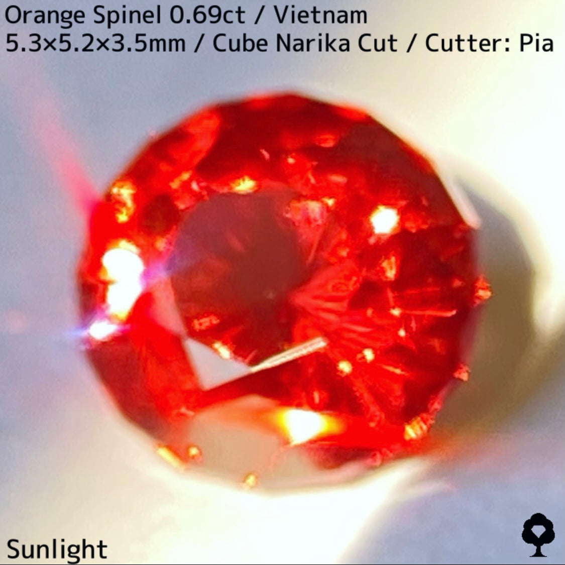 タイ語で時計を意味するナリカーカットに仕上げ、ベトナムでの産出はあるものの世界的に見るとレアカラーでオレンジの美しく鋭い煌めきが楽しめます。