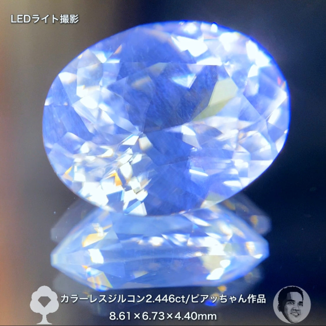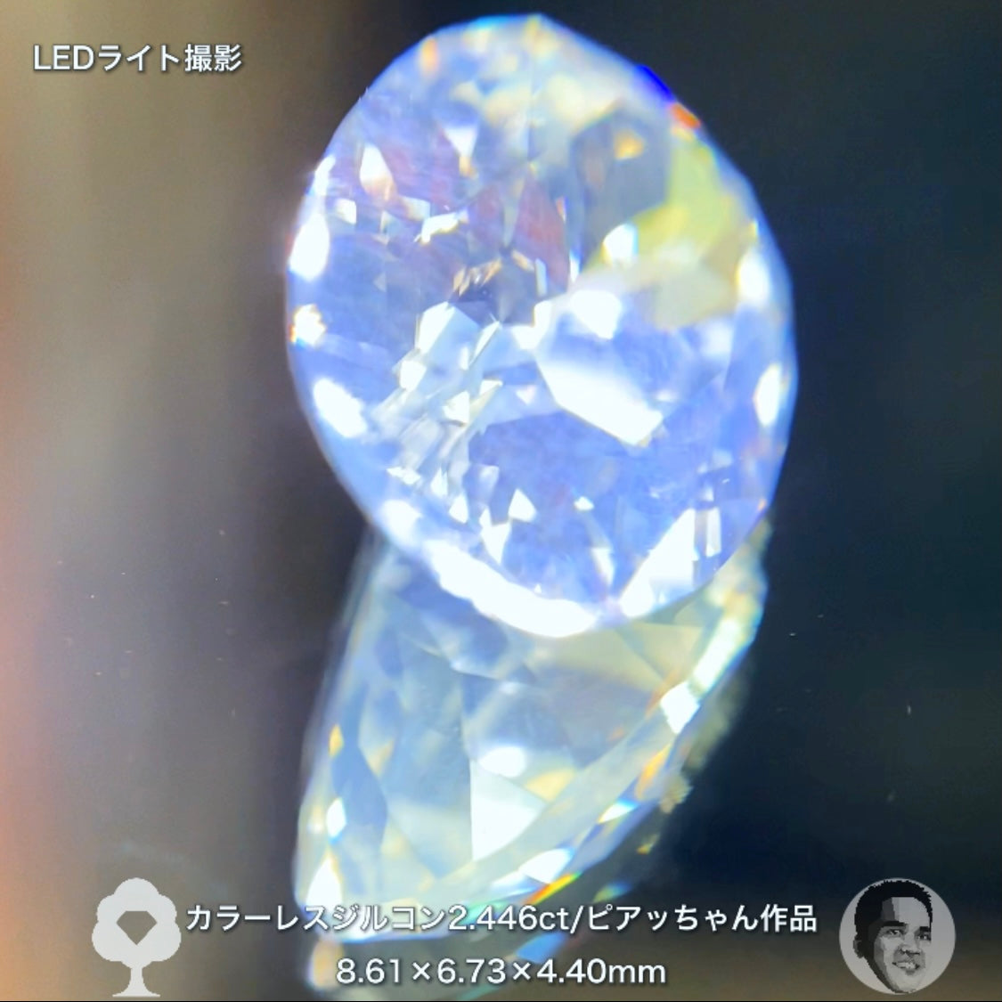 こちらのジルコンは2.446ct、GTJメインカッターのひとり”ピアッちゃん”の作品です。