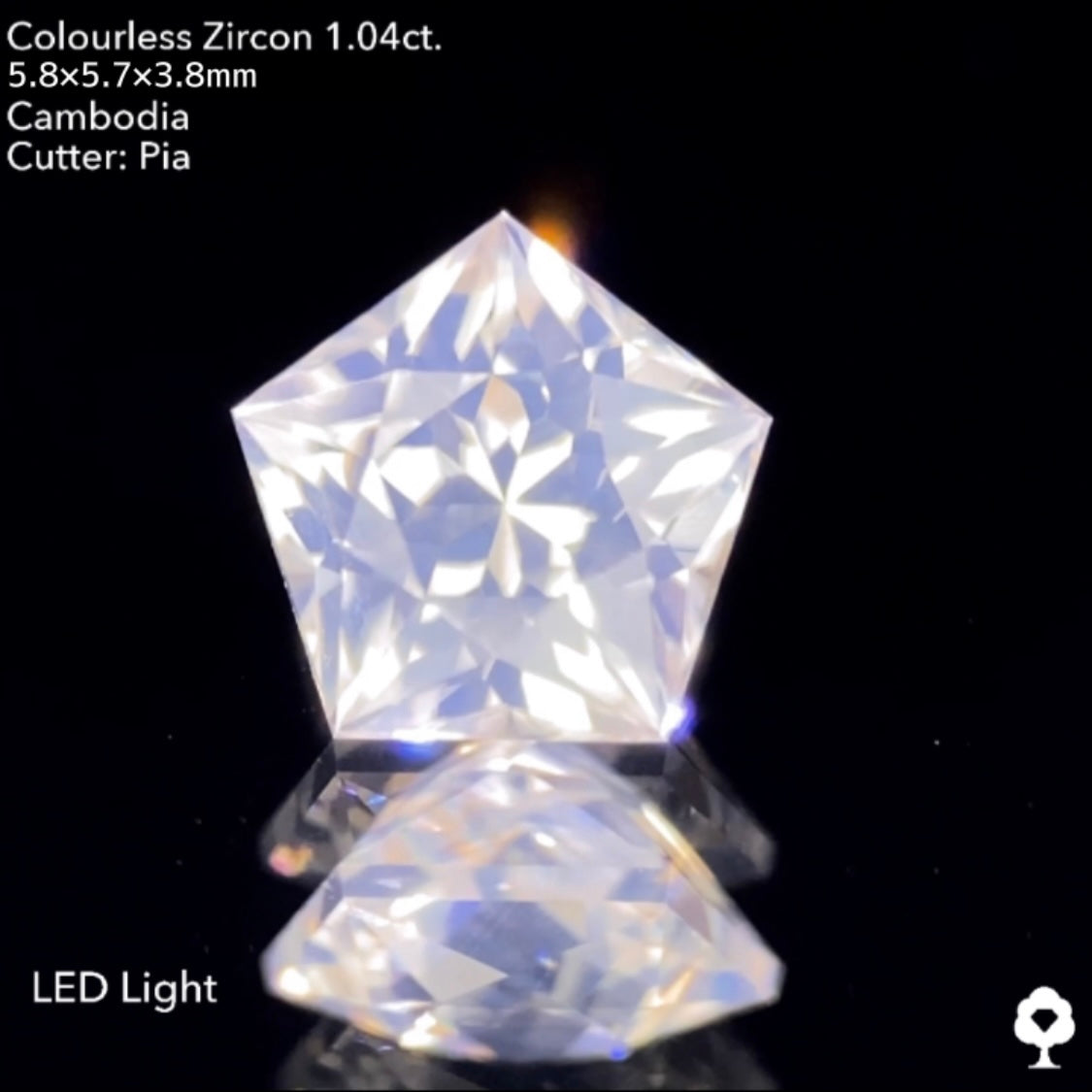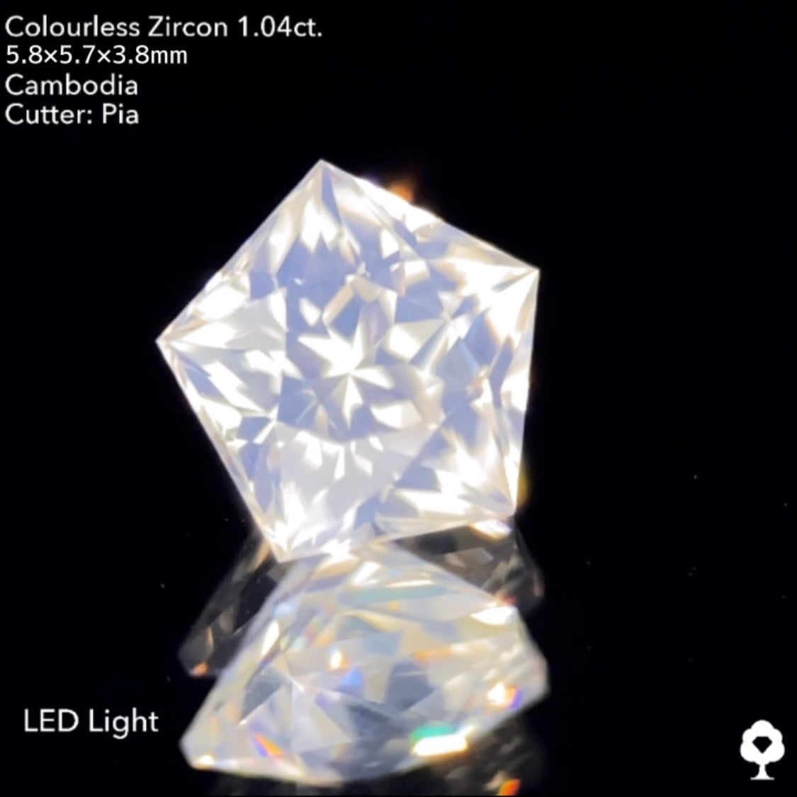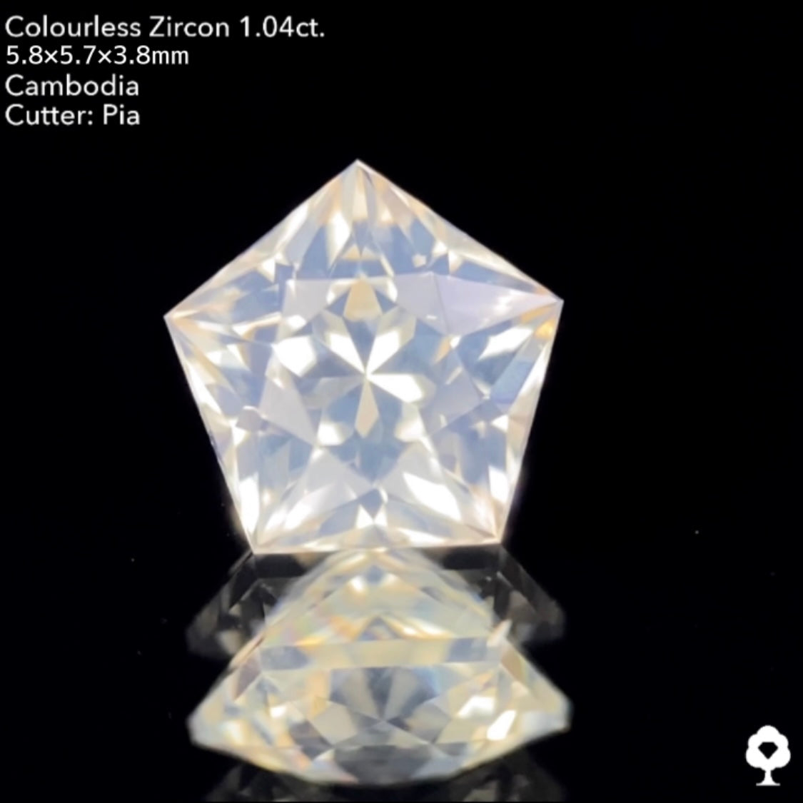 【チャットオクご落札作品☆】幻想的だが輝き抜群のシルキースターペンタゴン★カラーレスジルコン 1.04ct. ピアッちゃん作品